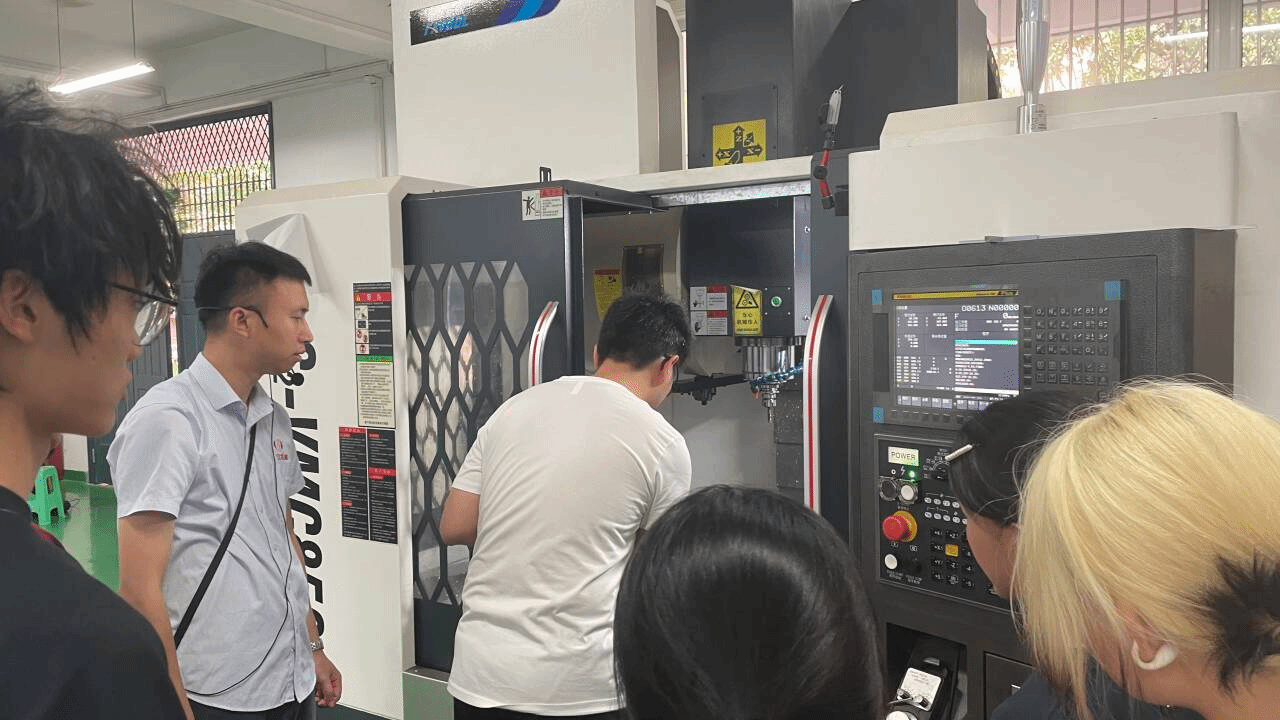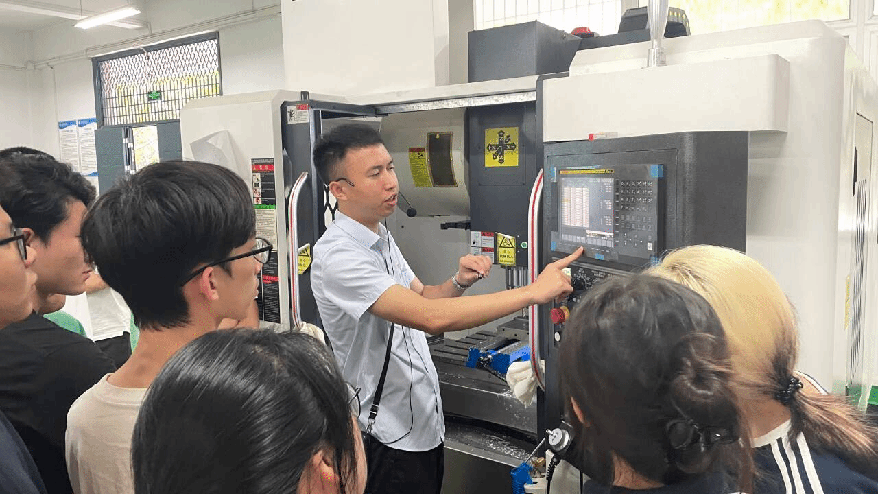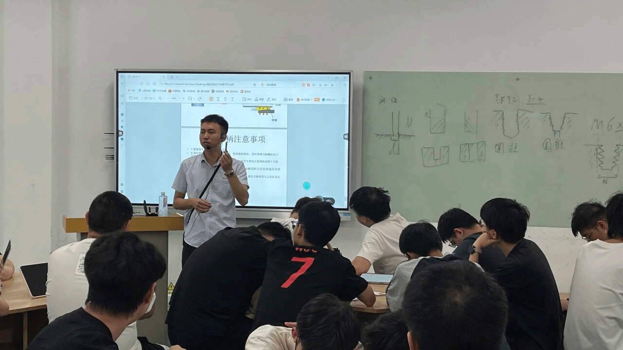 6月8日,在《智能制造项目实践》课程中,重庆红亿机械有限公司工程师刘俊结合企业FANUC系统应用实践,深入讲解加工中心对刀、程序优化与高精度加工技巧。在UG自动编程与仿真加工环节,刘工程师通过对比手动与自动编程的实际效果,引导学生理解不同编程方式在企业场景下的优劣差异。学生需完成从建模、程序编写到仿真验证和实际加工的全流程任务,提升对复杂工艺的综合掌控能力。校内教师胡云川与彭真协同承担理论教学、安全管理与教学组织等任务,持续保障课程实施的系统性与规范性。