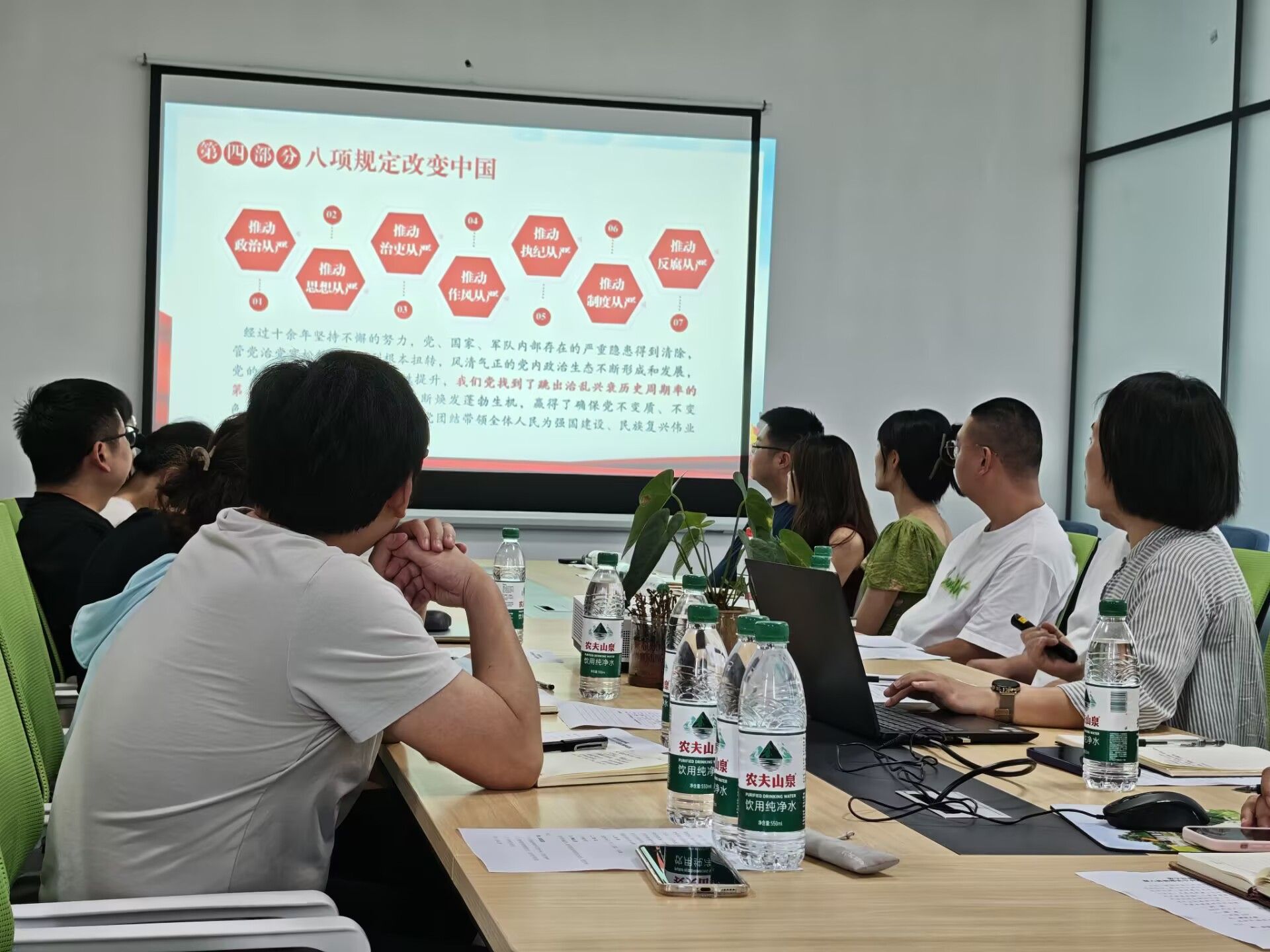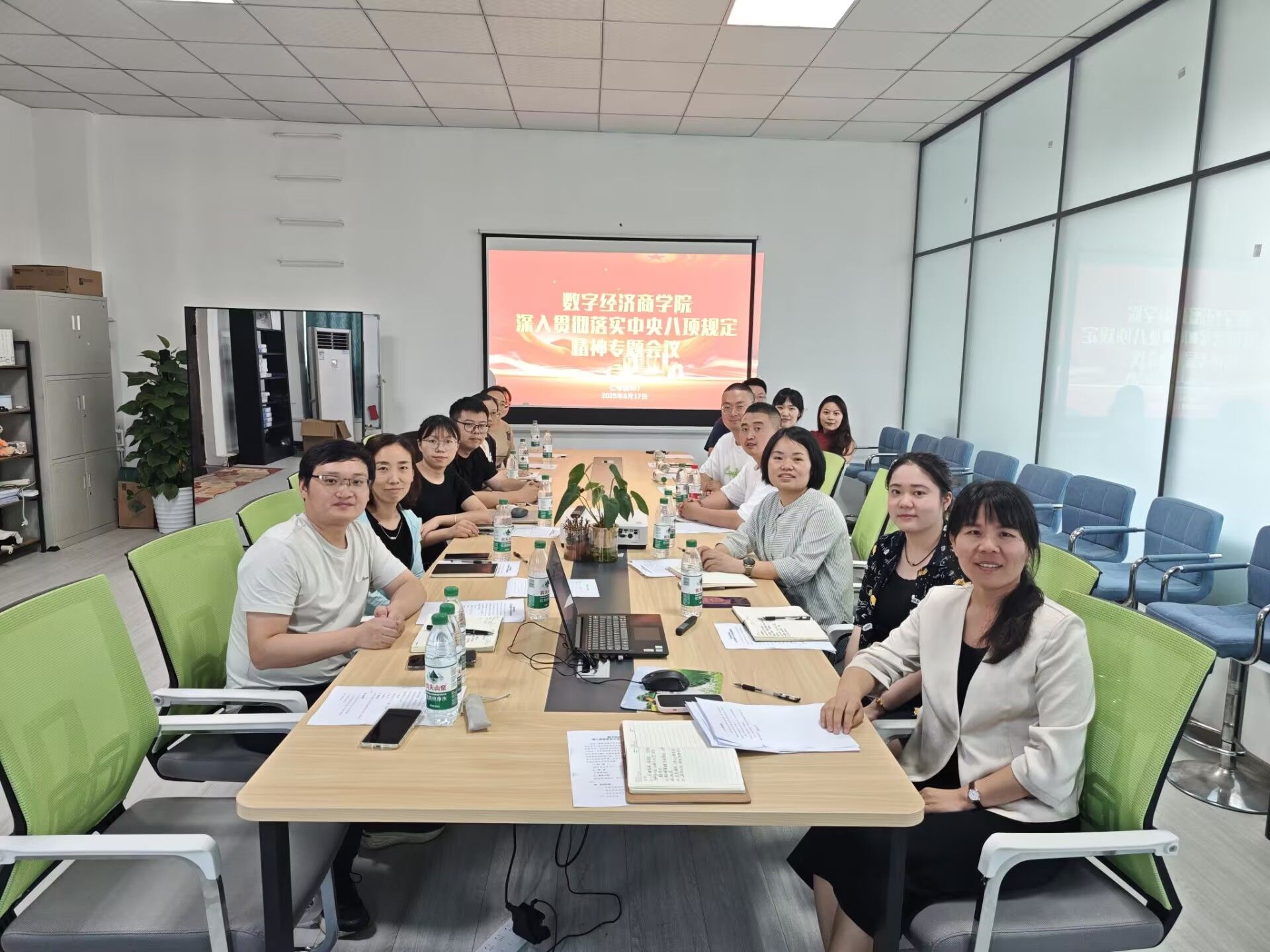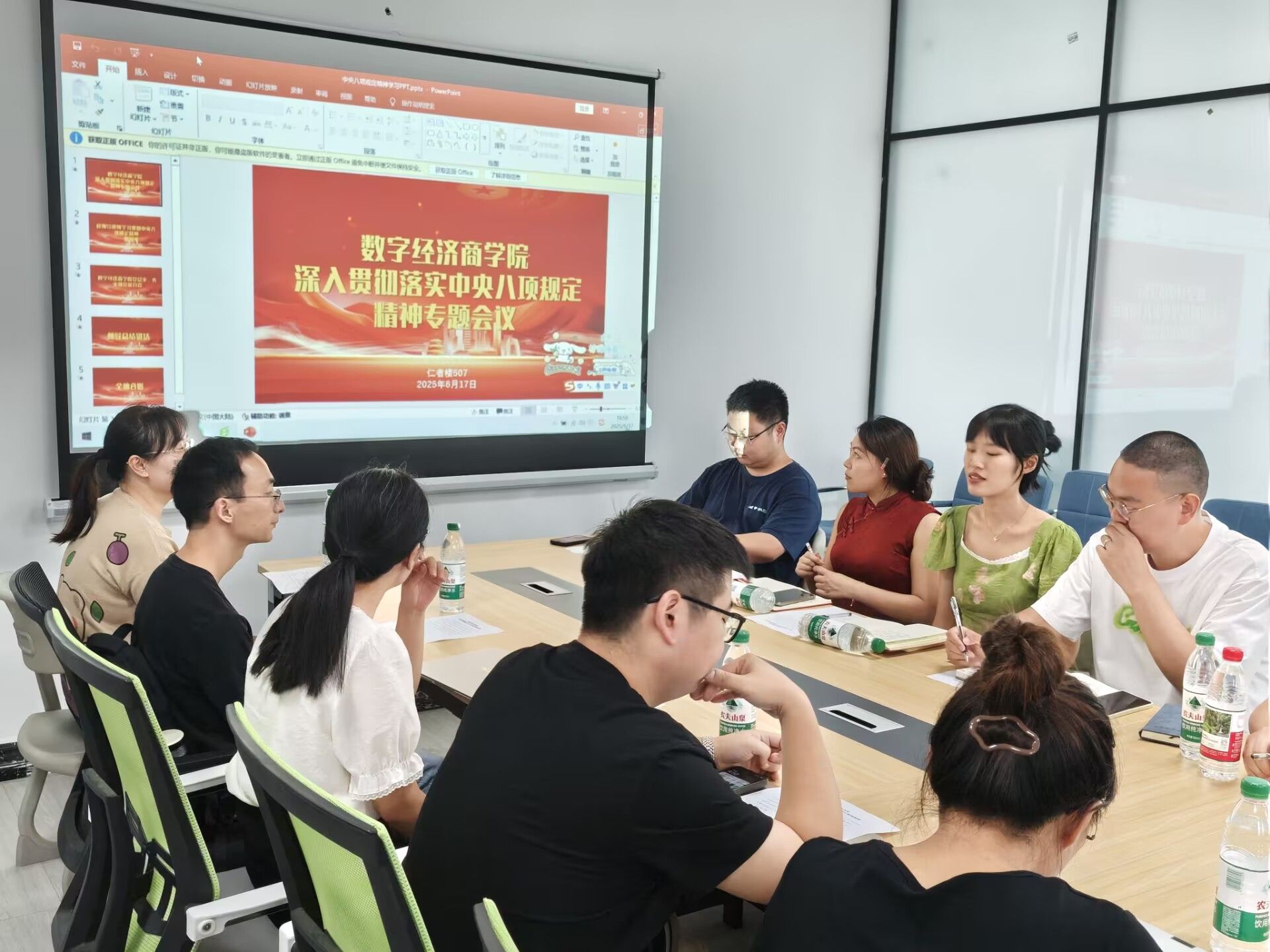 2025年6月17日,数字经济商学院在校党委部署下开展中央八项规定精神专题学习。校长助理谢银平、数字经济商学院党总支委员、教研室主任及辅导员代表参会,通过专题领学、自查检视、总结等环节,强化纪律意识,筑牢作风保障。