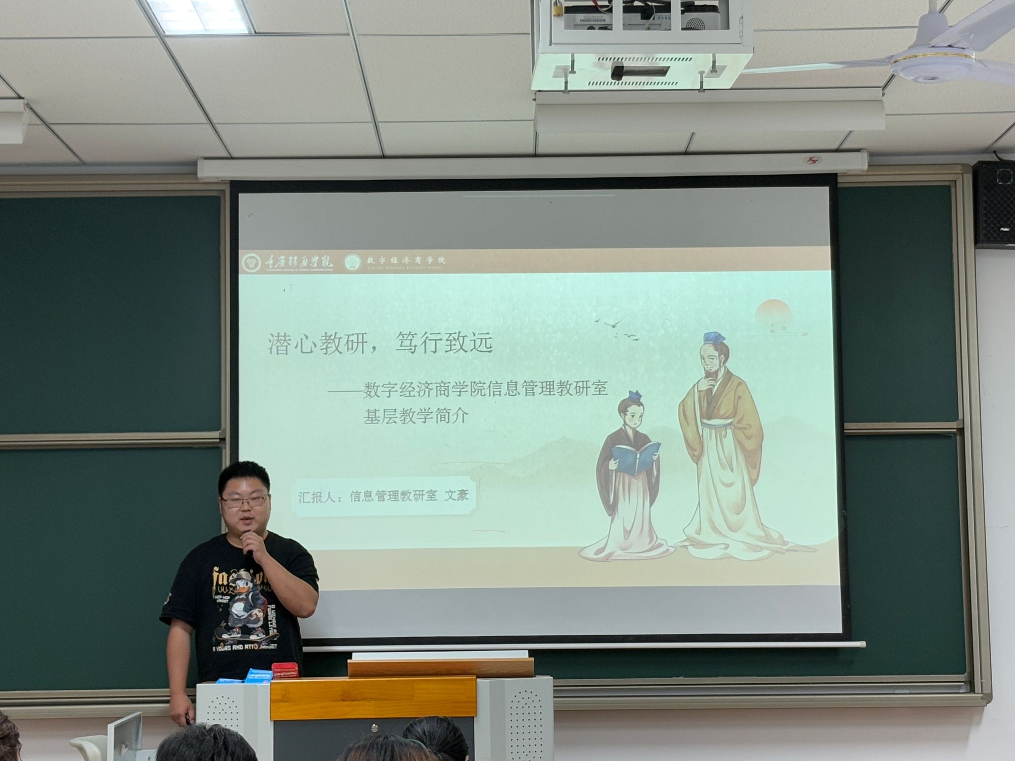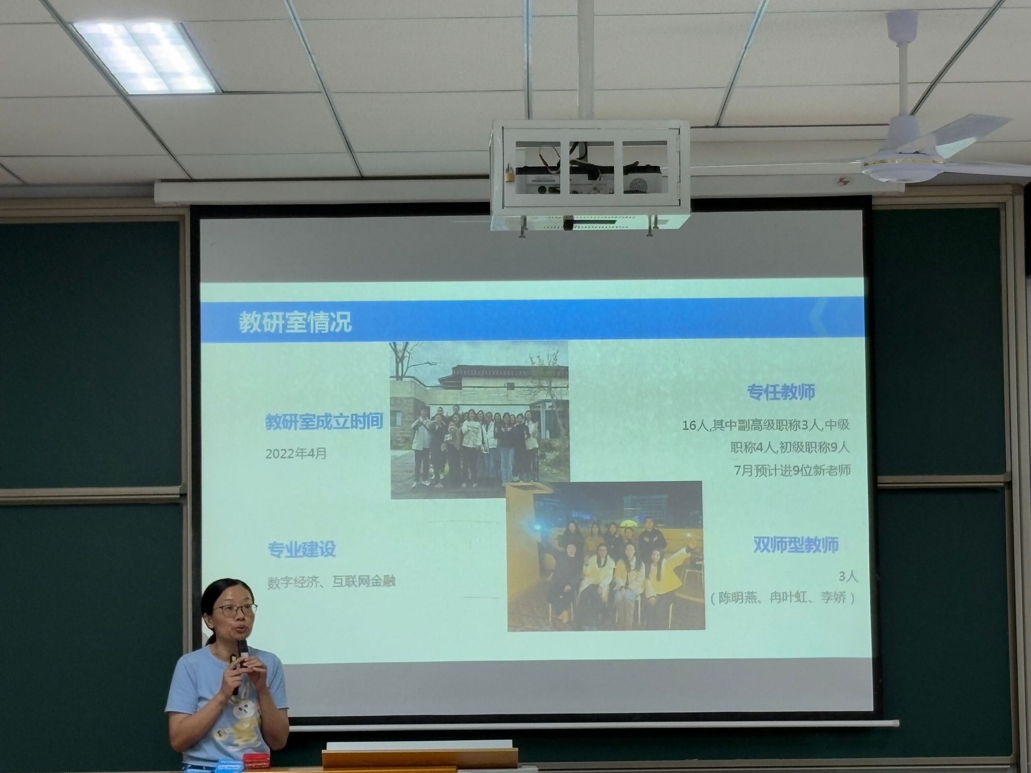 会议第二环节,各教研室主任围绕基层教学展开精彩分享。首先由供应链管理专业教研室李竺奕主任介绍:供应链管理专业契合智慧供应链的新变革,对接以互联网+、智能制造为特征的现代产业发展对商科人才的重大需求,在教学实践方面依托学校“四位一体”的人才培养模式,根据岗位特色和人才需求,制定并不断优化培养方案和教学计划,加强理论教学与实验、实践、实训教学,注重培养学生的实践能力和创新意识,形成科学、规范的培养方案。