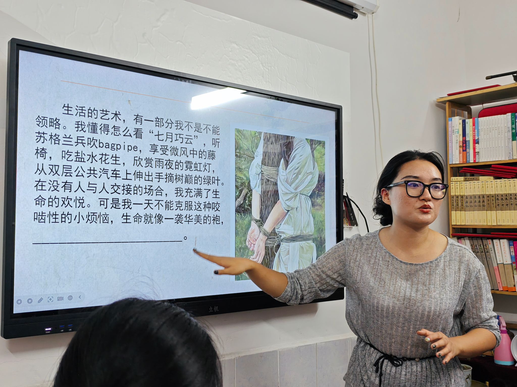 更大的挑战接踵而至。张爱玲那句“生命是一袭华美的袍”被隐去后半句,要求学生续写。“不过是金玉其外”“虚张声势的空壳”……答案在陈词中打转。直到有人怯生生说:“爬满了虱子?”全场静默三秒,继而爆发出掌声——华美与瘙痒的诡异组合,瞬间刺穿了生活的真相。“精准的反常比漂亮的平庸珍贵百倍。”殷老师总结道。