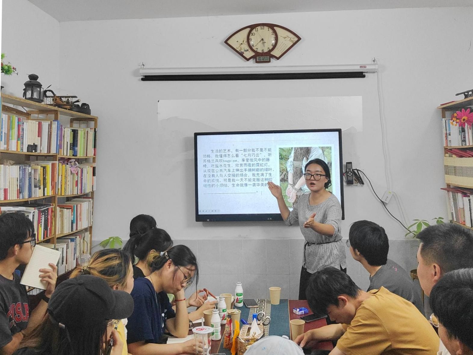 “盛开的生命就这样枯萎了”——当这句平庸的话投在屏幕上,工坊瞬间变成文字手术室。学生们的笔尖开始躁动。
