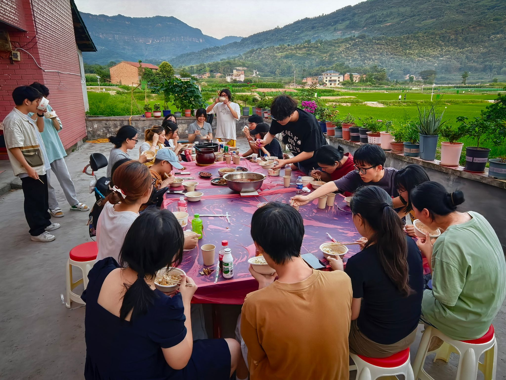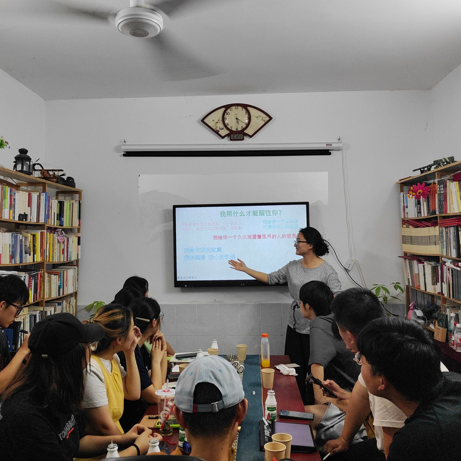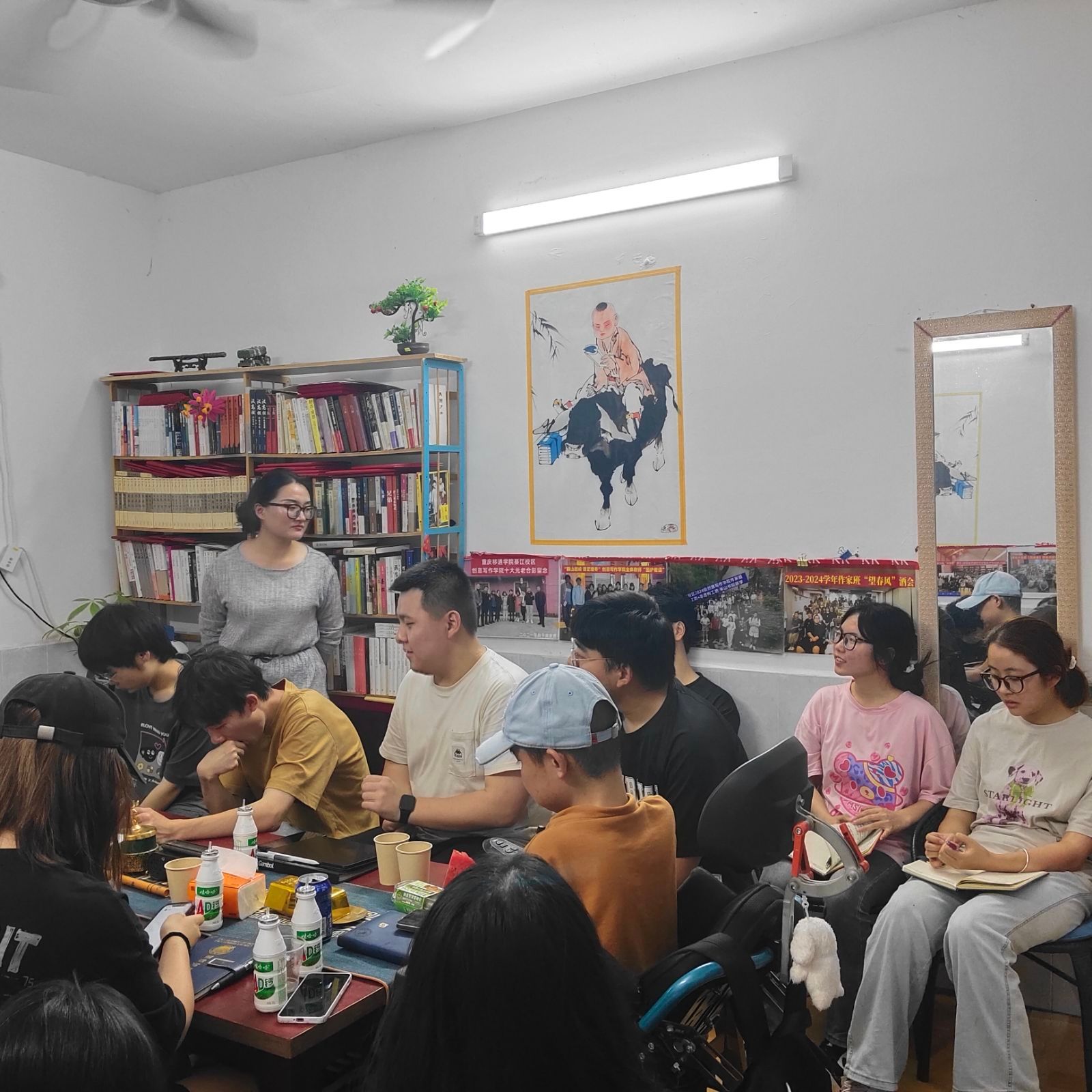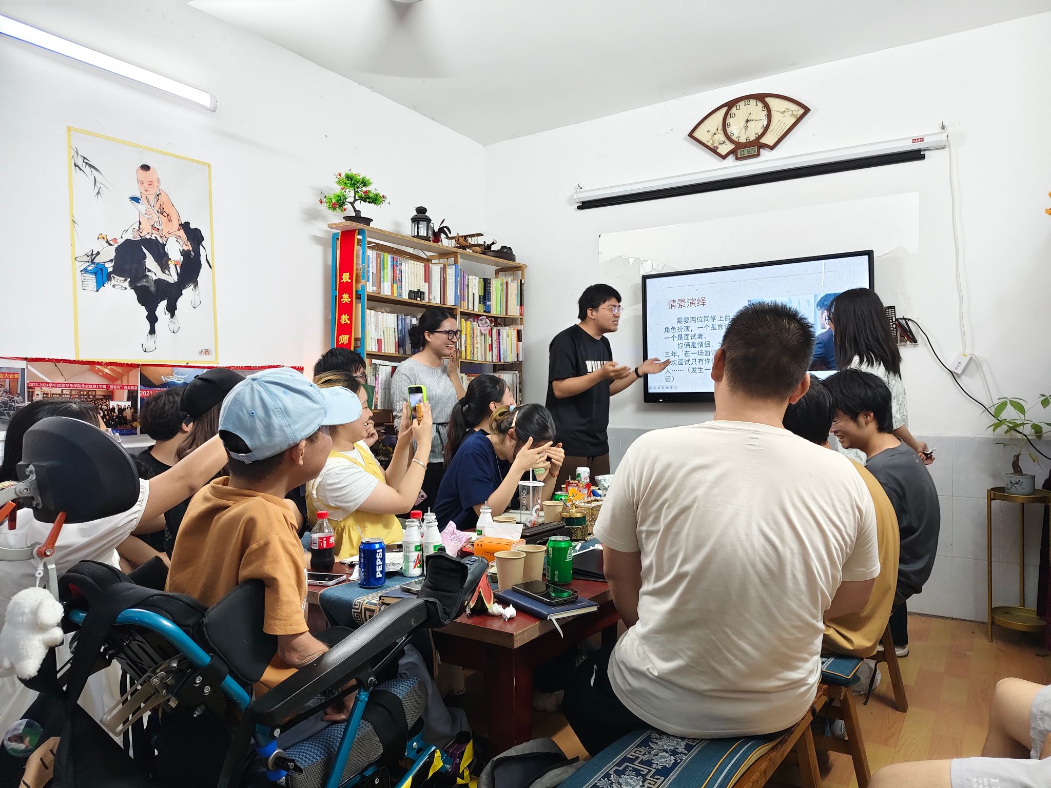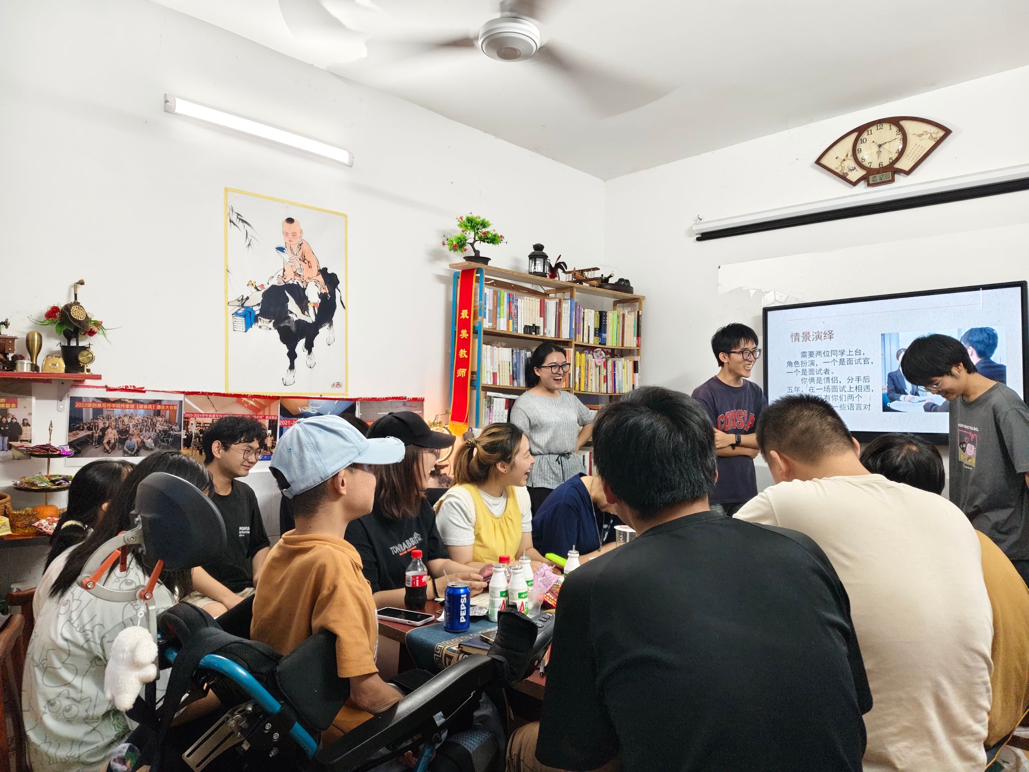 夜里八点半了,晚风穿堂吹过,把绕口令的混战声揉得细碎。长桌上的空碗还有余温,有人拿起笔在叶子背面涂写,有人托腮看向窗外——原来文字的温度,从来不在云端,而在沾满饭粒的桌角、在绕口令的磕绊里,在二十余人共享一顿红烧肉的烟火气中,悄悄酿成了最鲜活的诗。