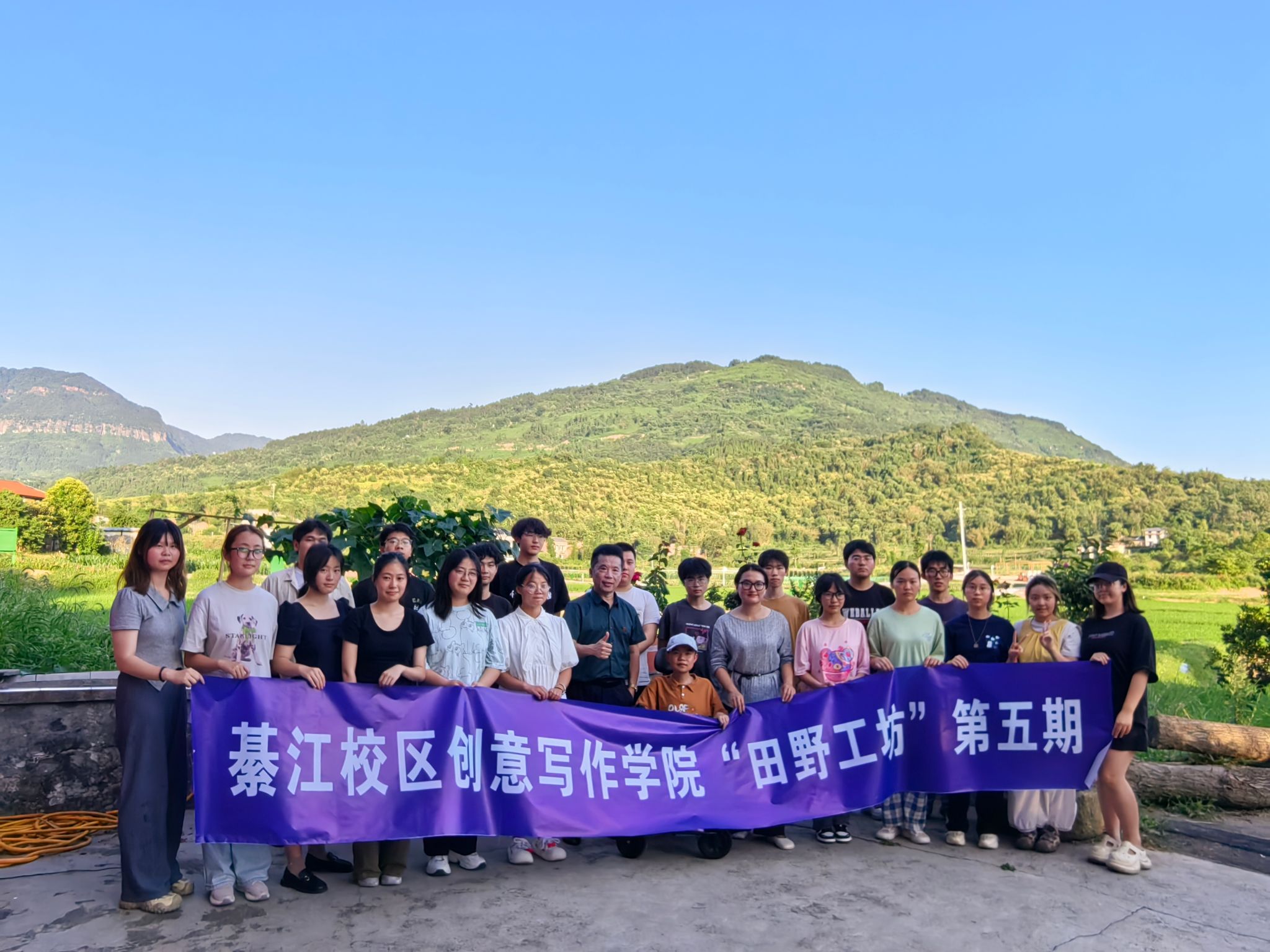 为贯彻落实重庆移通学院“教育教学三提三创”主题年活动方案,6月13日下午,綦江校区创意写作学院2024级作家班非虚构工坊21名学生和4名助教,前往田野工坊基地开展第五期特色课程。这次是非虚构工坊导师王恒绩和《故事写作》的殷文佳老师共同担纲主讲。二位老师带着学生们,一头扎进了农田,这里没有投影仪,只有稻穗上的露水作讲台;没有 PPT,田埂边蹲坐的老农便是活教材,非虚构写作的“真实性”正在泥土里生根。赵博凯同学说,田野里上课,是文学的返璞归真。