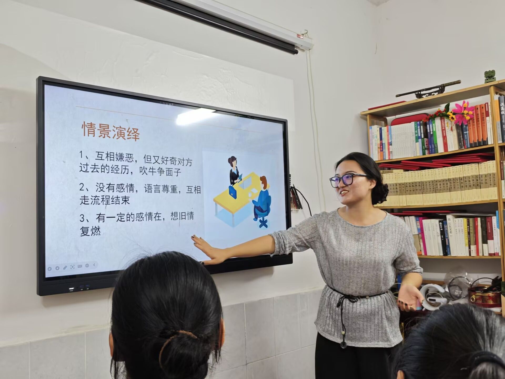 更大的挑战是面试情景剧。当设定“前任面试现场”抛出来时,教室秒变修罗场。谢欣扶了眼镜:“贵公司岗位需要情绪稳定的人才。”对面的陈小娇冷笑:“我多优秀你不清楚?当年没我,你作业能过关?”最绝的是王智熙与白梦生一组——面试官王智熙甩出保安职位,求职者反呛:“凭我学历至少当主管!”却被一句“我们只招大专生”噎得满脸通红。这些即兴碰撞出的对话,鲜活印证着殷实老师的箴言:“什么样的人,在什么情境下,说什么样的话——写对话就是做人设考古。”