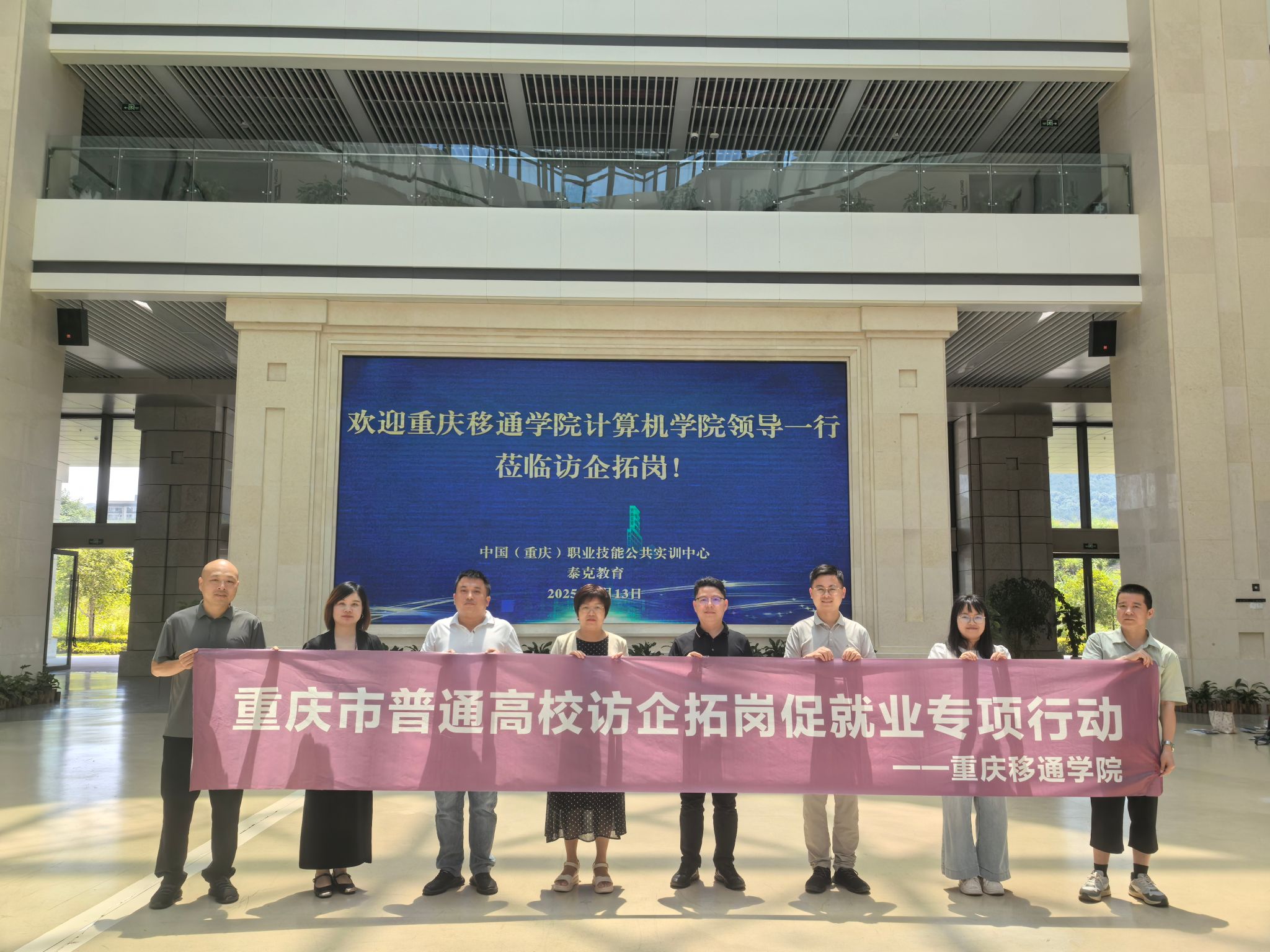 为积极响应国家促进校企合作的就业政策,提升人才培养质量并精准对接企业需求,6 月 13 日上午,重庆移通学院计算机学院副院长向碧群、学工副院长周俊率队,赴中国(重庆)职业技能公共实训中心开展访企拓岗专项行动。智能科学教研室主任徐多礼、辅导员张脐方等参与活动,与实训中心运营单位泰克教育的陈世杰副总裁、泰克教育重庆区域总经理陈述、泰克教育重庆区域院校合作经理陈才英与张玉辉等,通过企业参观、校企座谈等环节,探索职业技能培训领域的产教融合新模式。