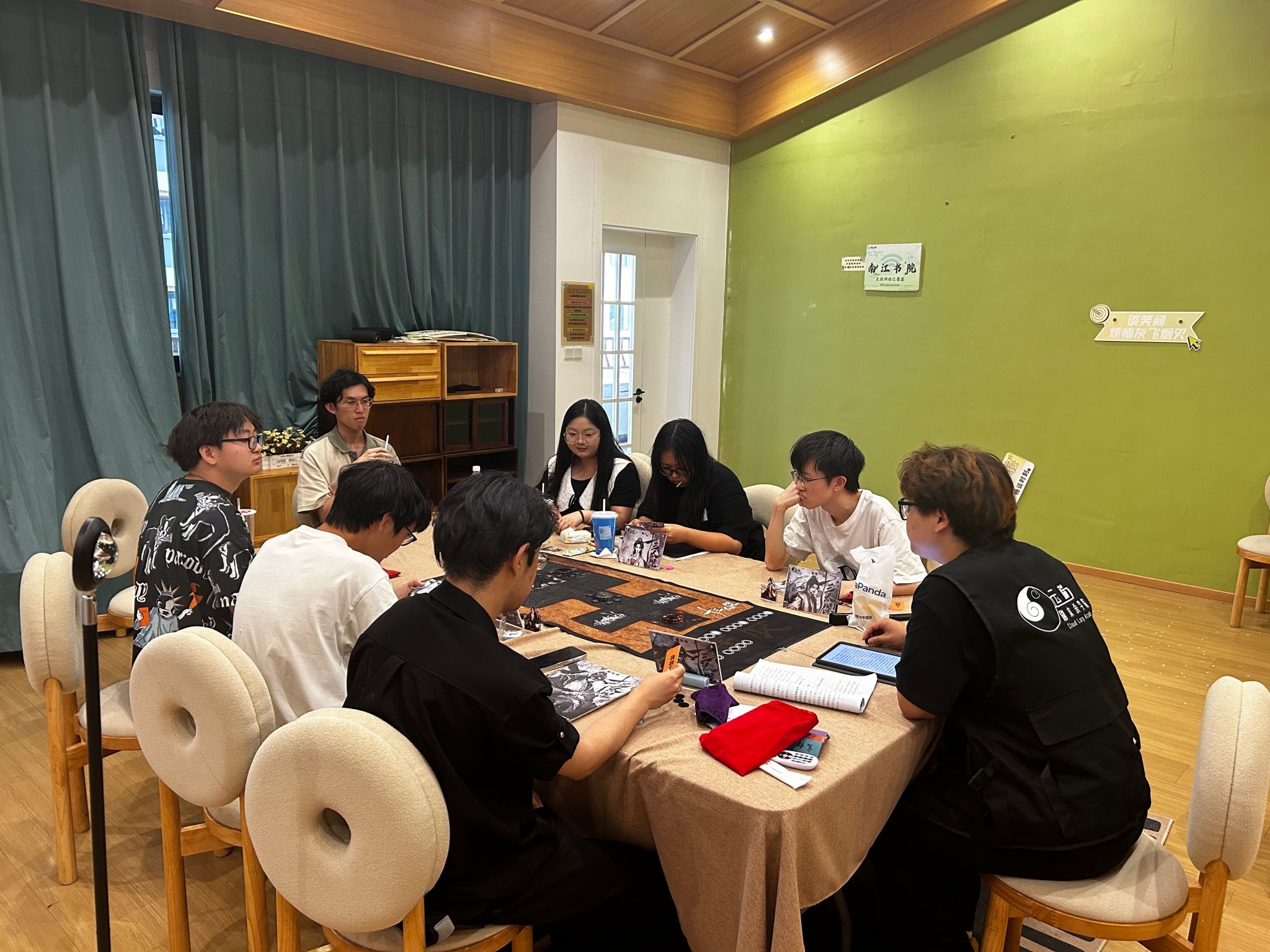 6月14日下午,云端剧本杀学院剧本杀DM在南江书院进行开本活动。李元锋老师到场进行专业指导,提升DM开本技能,并在活动结束后对学院育人成果表示高度肯定:“今天看到学生DM主持剧本杀,我看到他们在带本过程中展现出了专业的技术水平和出色的临场应变力。学院提供的实践平台确实显著地让学生们能够在活动中得到真正锻炼。”