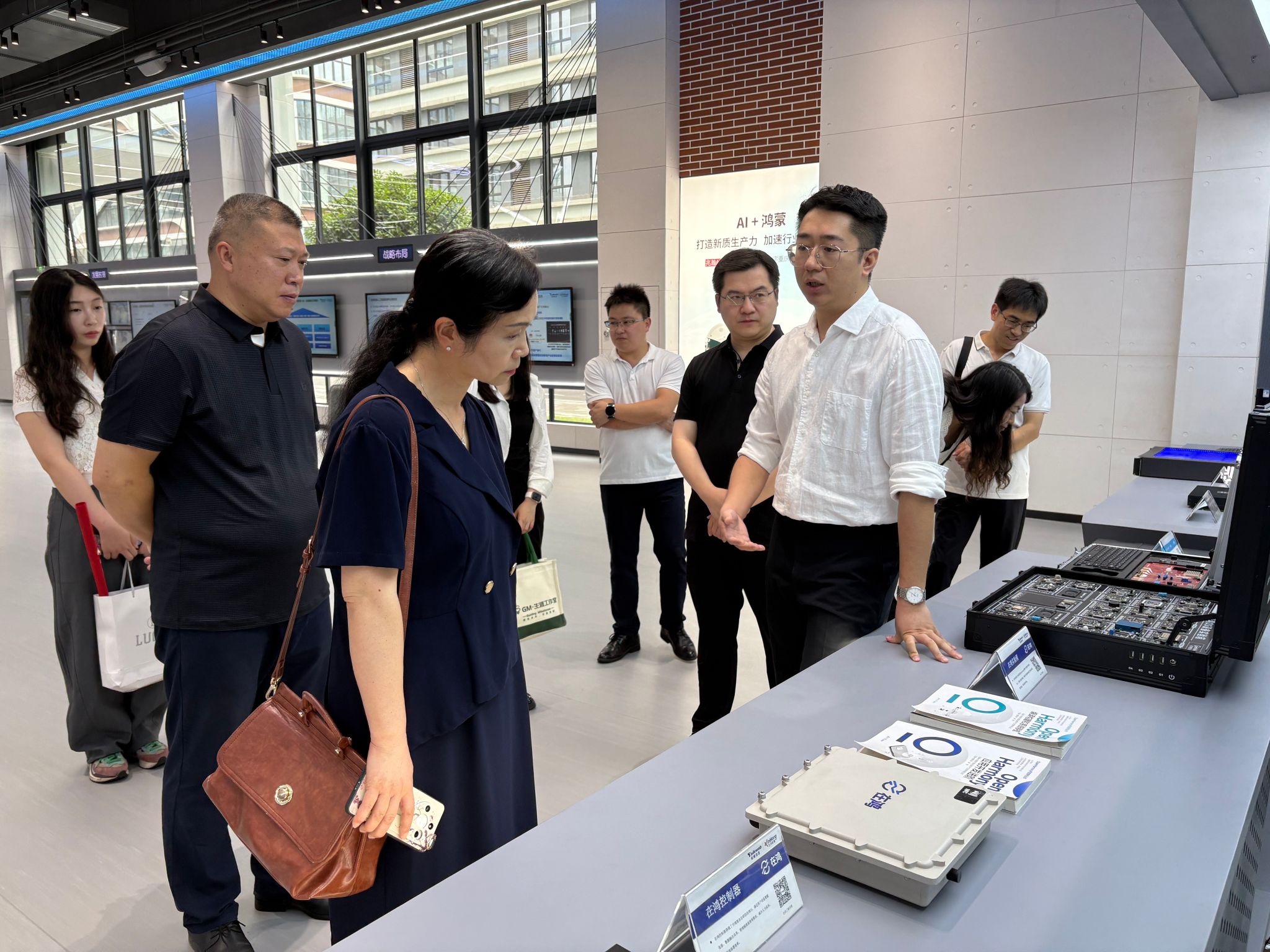 上午10时,走访团队抵达重庆科学城芯鸿数智科技有限公司。在公司副总经理付强等领导陪同下,校方代表首先参观了企业展厅,全面了解公司在数智技术领域的创新成果与应用案例;随后参观计算产线,近距离感受前沿技术的实际生产流程。在交流座谈环节,校企双方围绕行业人才需求、课程体系优化、实习就业联动等核心议题展开深入探讨。双方愿在课程共建、项目实践等方面展开深度合作,共同培养适应市场需求的高素质数智人才。