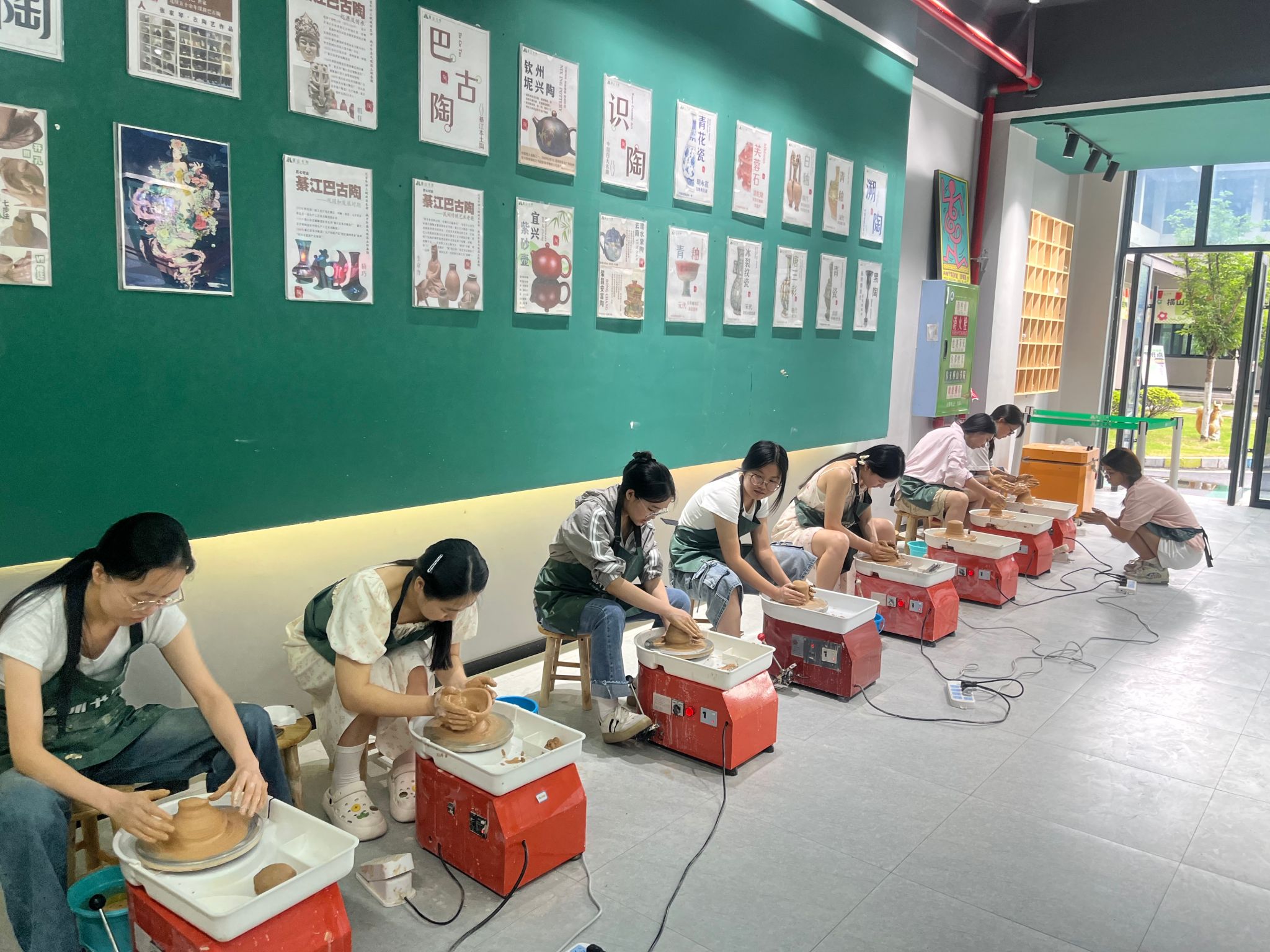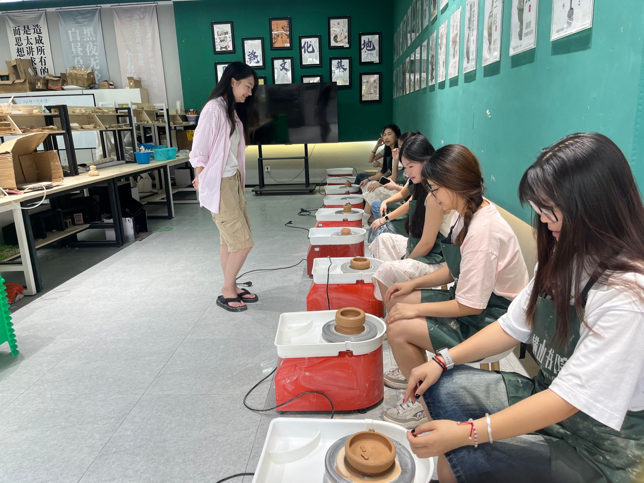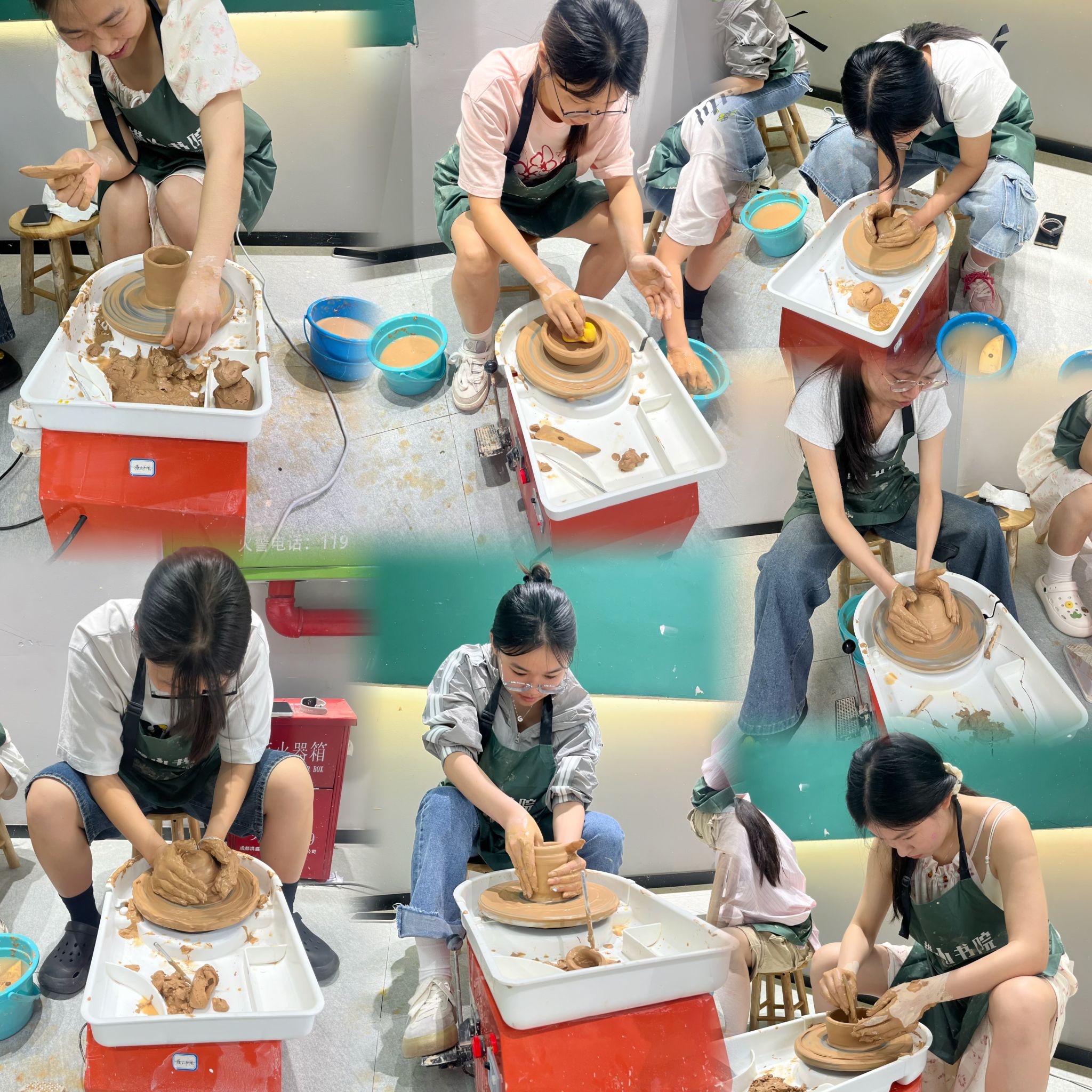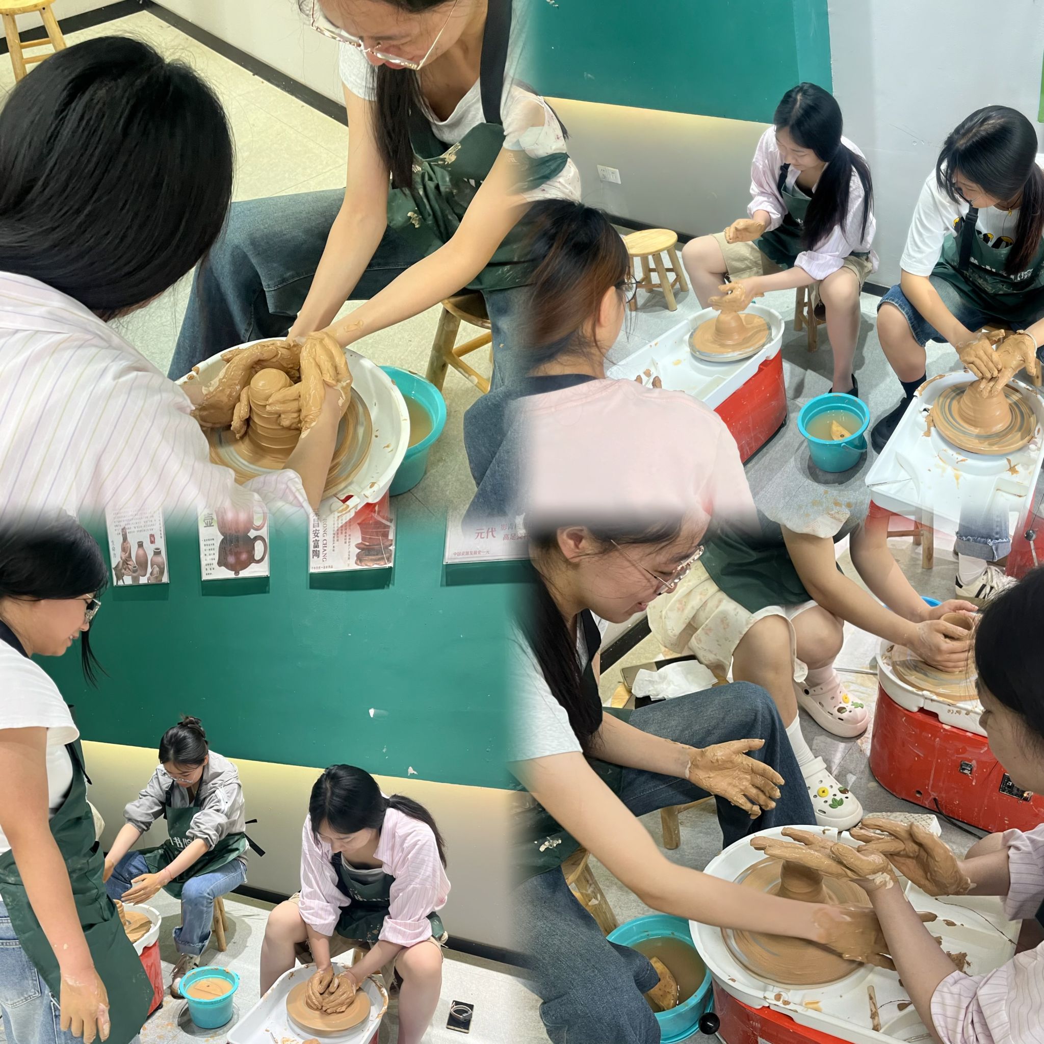 在实际操作过程中,张老师逐一指导,手把手帮助同学们掌握操作要领,特别强调了如何在转盘旋转中稳定双手、如何调控陶泥重心等核心技艺。通过反复练习与现场指导,同学们逐渐掌握了陶艺基本技法,并在泥与力的艺术中感受到专注与创造的乐趣。