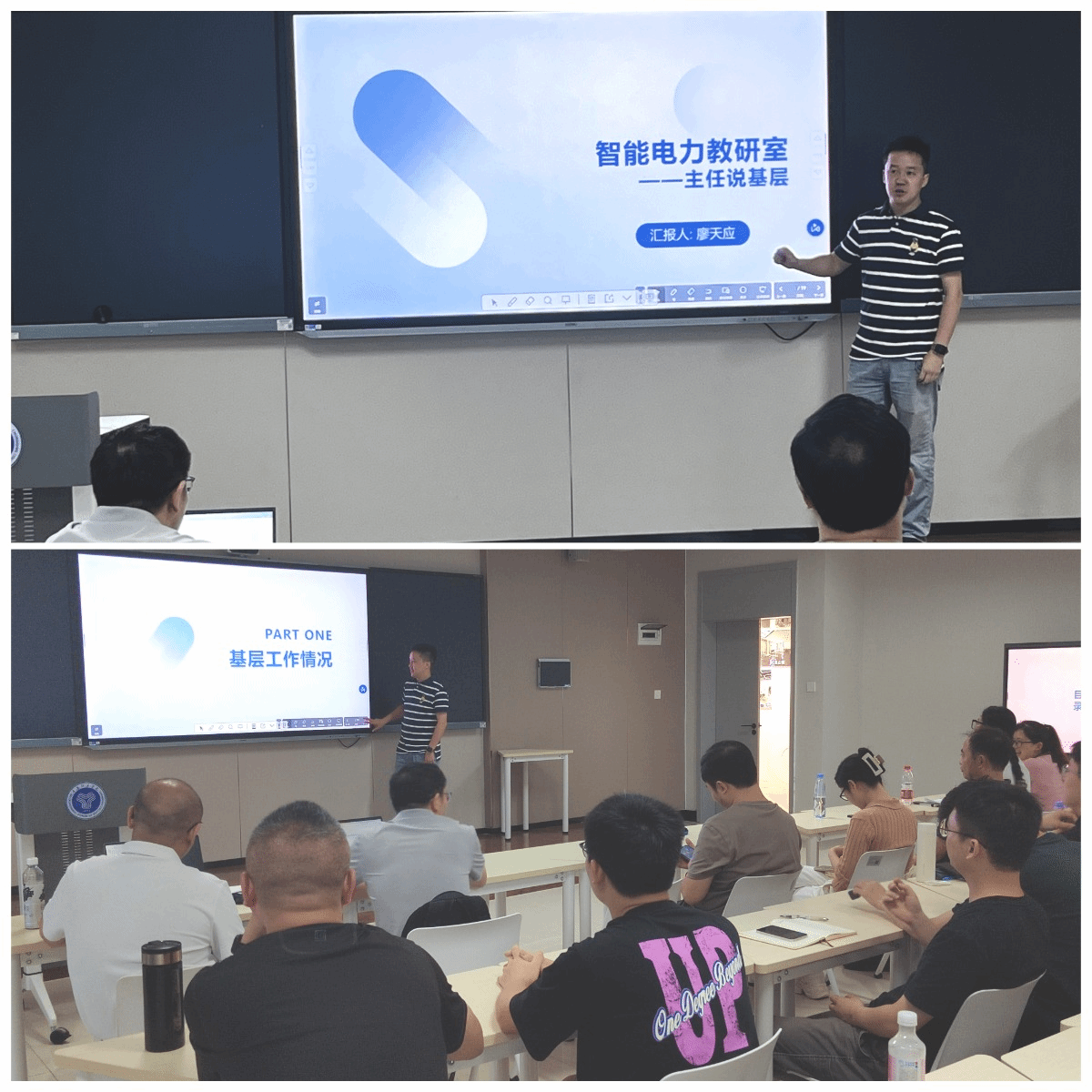 智能电力教研室廖主任着重汇报了基层组织的工作特点、教研室师资、电力课程的发展等方面,提出专业建设与人才培养模式上,要以电力行业实际需求为导向,深化校企合作,强调实践的重要性。两位主任的汇报全面展现了教研室在各维度的扎实工作与创新实践,也为教研室的进一步工作明确了方向。