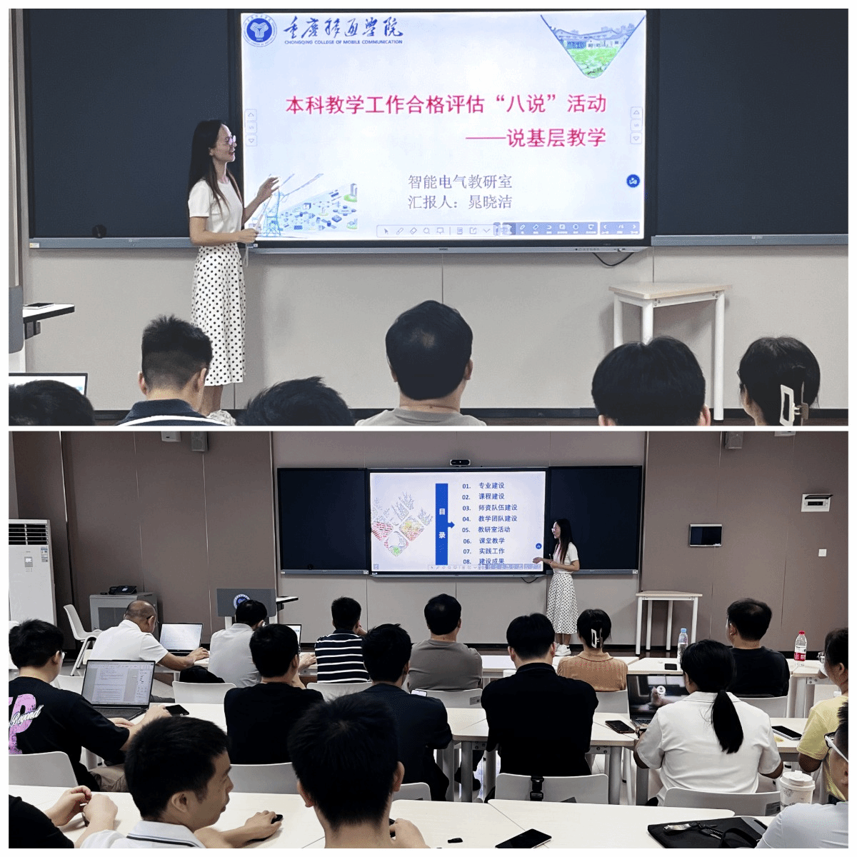 6月18日下午2点30分,智能电气教研室联合智能电力教研室在9114会议室开展本科教学工作合格评估第一轮“八说”中的“说基层”活动。智能电气教研室主任晁晓洁、智能电力教研室主任廖天应分别就教研室工作展开全面汇报。智能电气教研室晁主任从教学团队建设、教研室活动、专业建设与人才培养模式、教学质量保障体系等方面对教研室基层组织的工作进行阐述。在教学团队建设上,她提出通过定期开展教研培训、鼓励教师参与行业交流等方式,提升团队整体教学与科研能力;教研室活动围绕教学研讨、课程开发等内容有序开展,同时积极邀请企业专家入校分享前沿技术。在专业建设与人才培养模式上,结合行业发展趋势,优化课程体系,引入项目式教学,通过学科竞赛等培养学生实践能力;教学质量保障体系则通过学生评教、同行听课、教学督导等多维度评估,确保教学质量稳步提升。