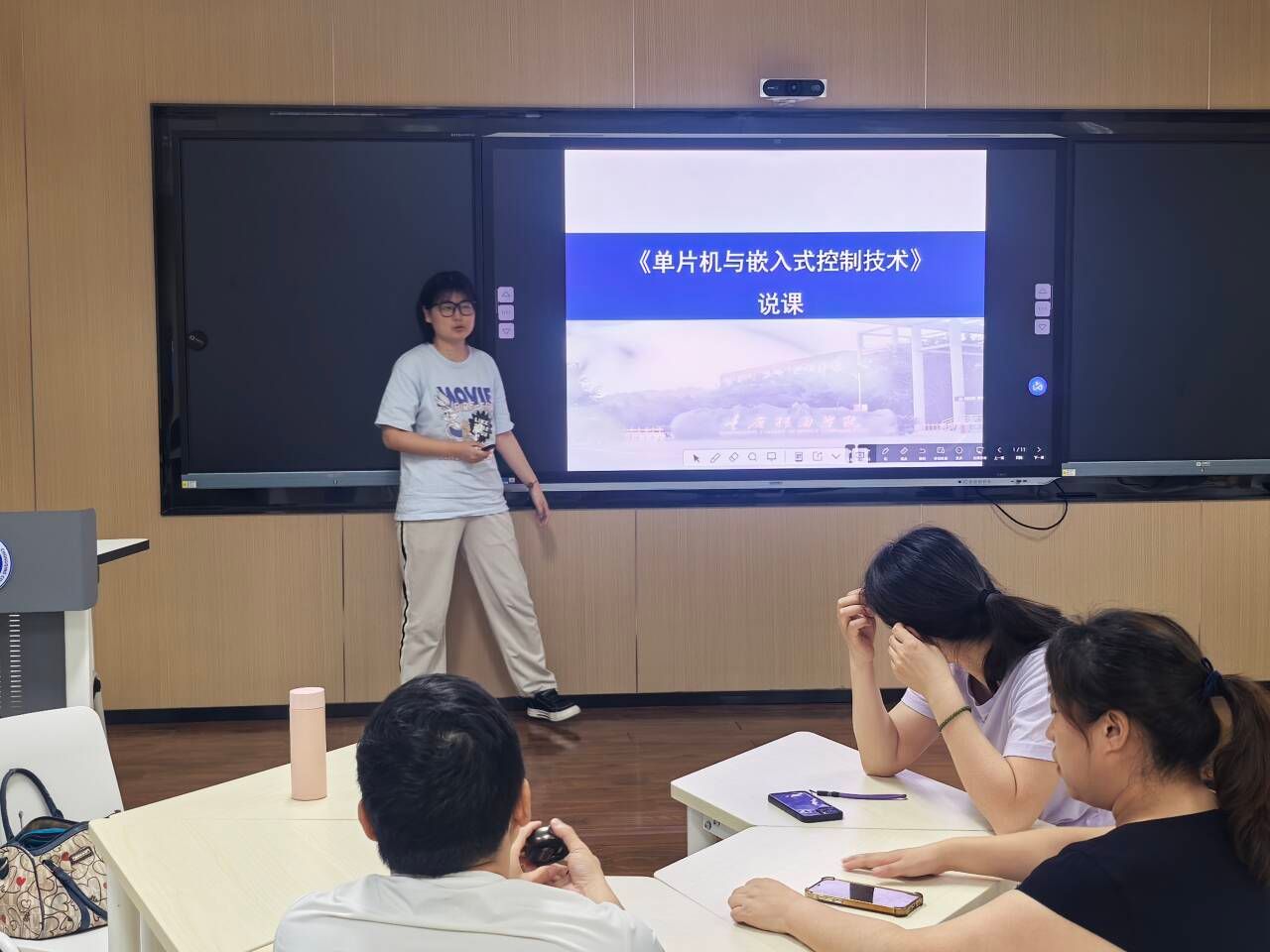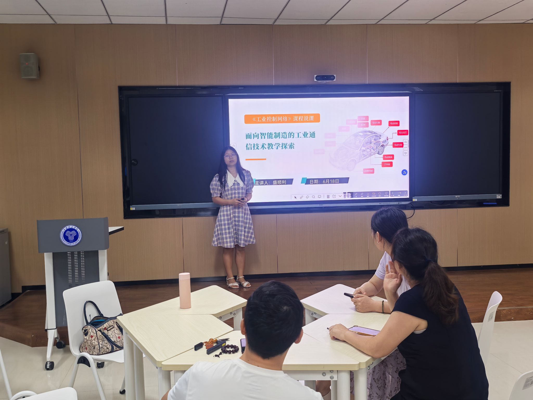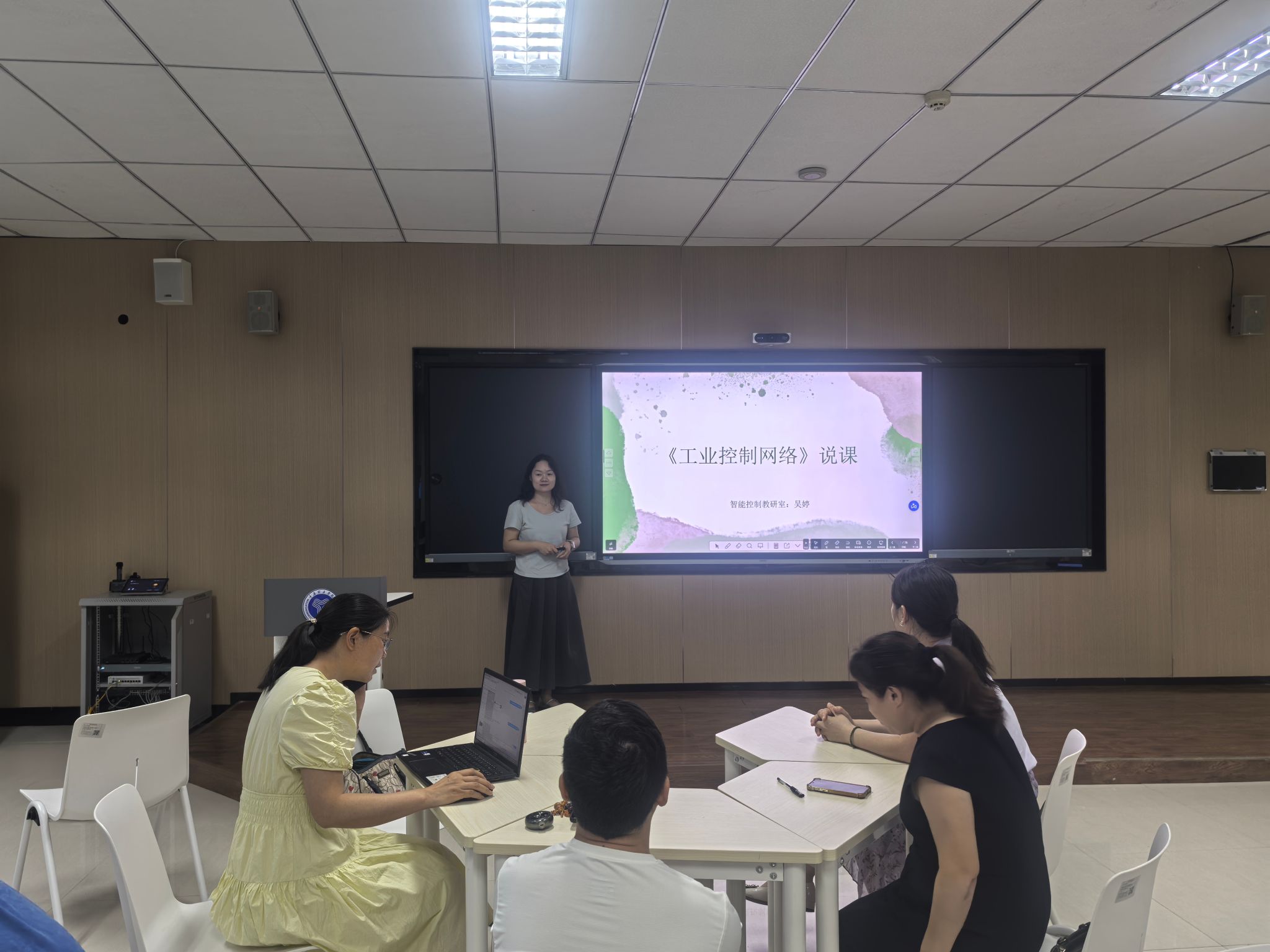 吴婷、盛顺利老师先后对《工业控制网络》展开说课,聚焦 CAN、PROFINET 等工业网络技术,呼应工业互联网前沿需求,培养系统分析与安全防护能力;谭红老师的《运动控制系统》与王瑞芳老师的《现代控制理论及应用》,分别通过直流调速系统设计、“理论 - 仿真 - 硬件” 三位一体模式,培养工程实践与复杂系统设计能力;王茜、于兵、昌广均老师均针对《自动控制原理》进行说课,作为专业核心课程,以“理论 + 实验”结合的方式,涵盖稳态误差分析、系统校正等内容,培养控制系统分析与设计能力。