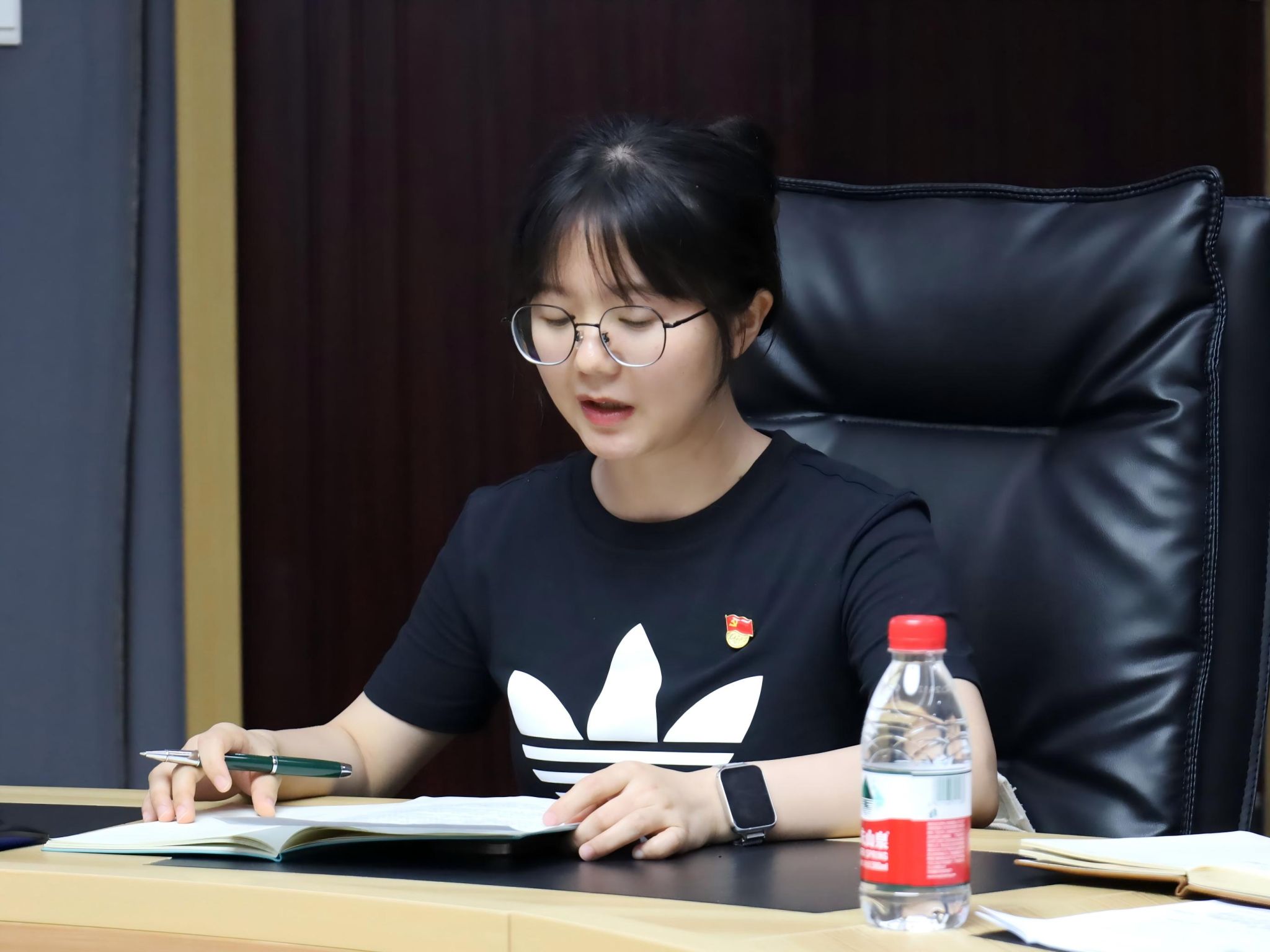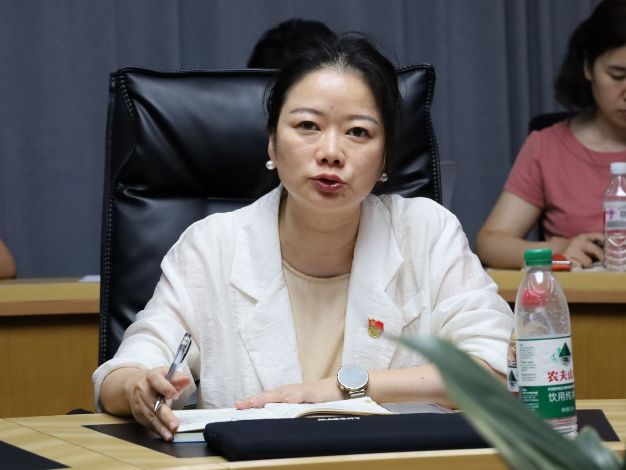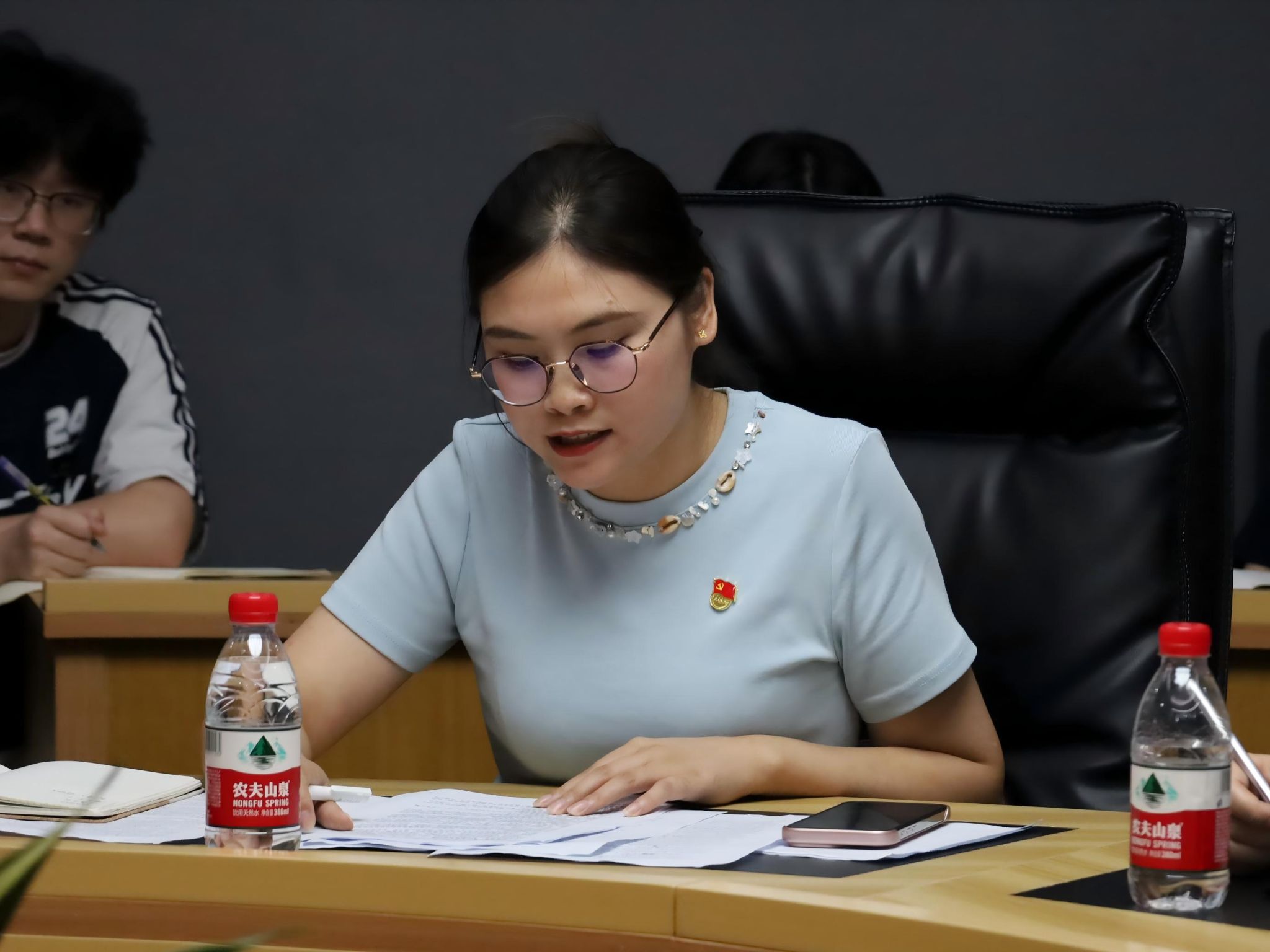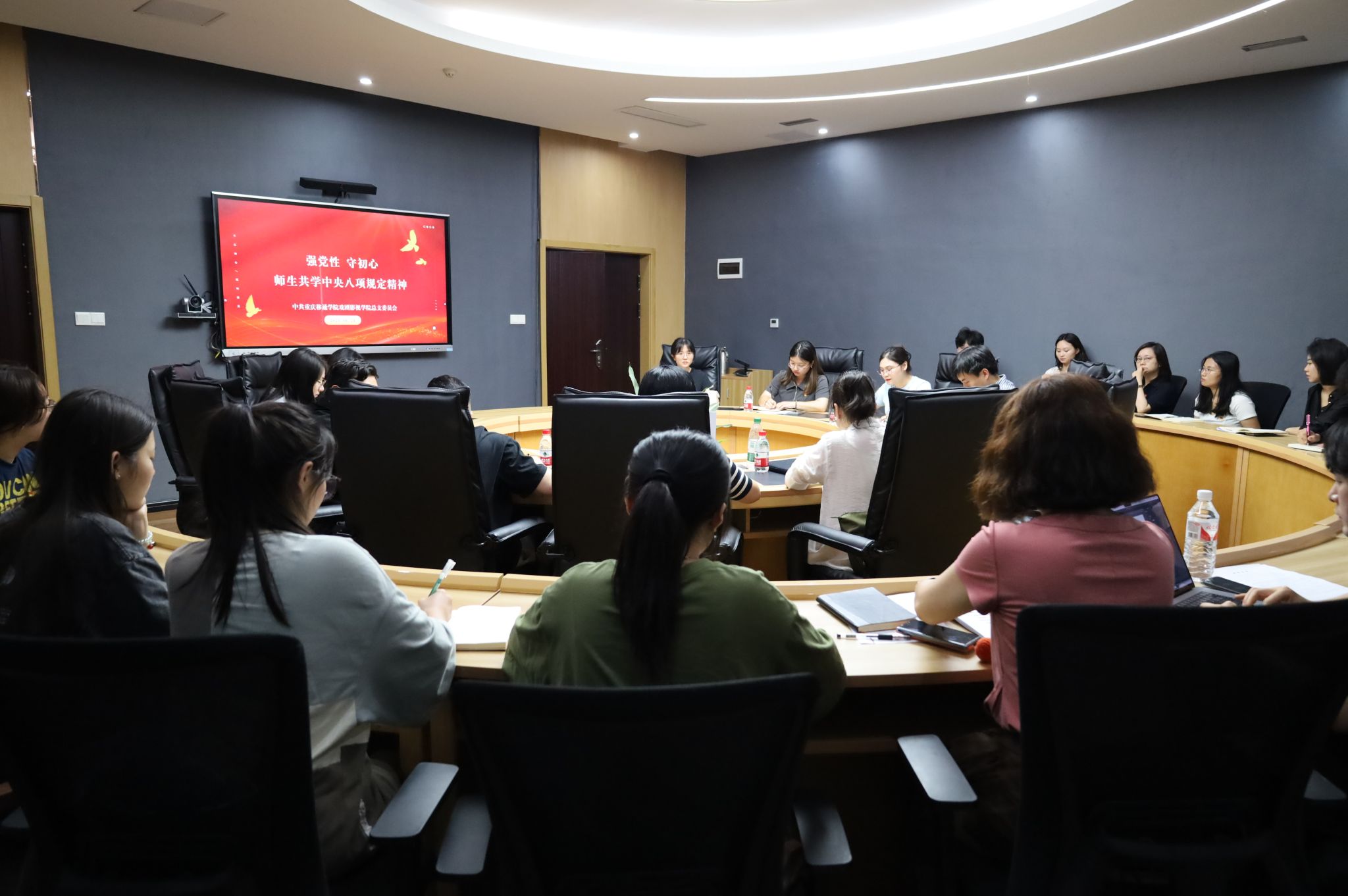 6月24日,重庆移通学院副校长李文豹、戏剧影视学院教师党支部及学生党支部全体党员、教研室主任及专业负责人齐聚瀛山图书馆417,开展“强党性·守初心——师生共学中央八项规定精神”主题教育会议,此会议由戏剧影视学生党支部书记曾玉娇主持。