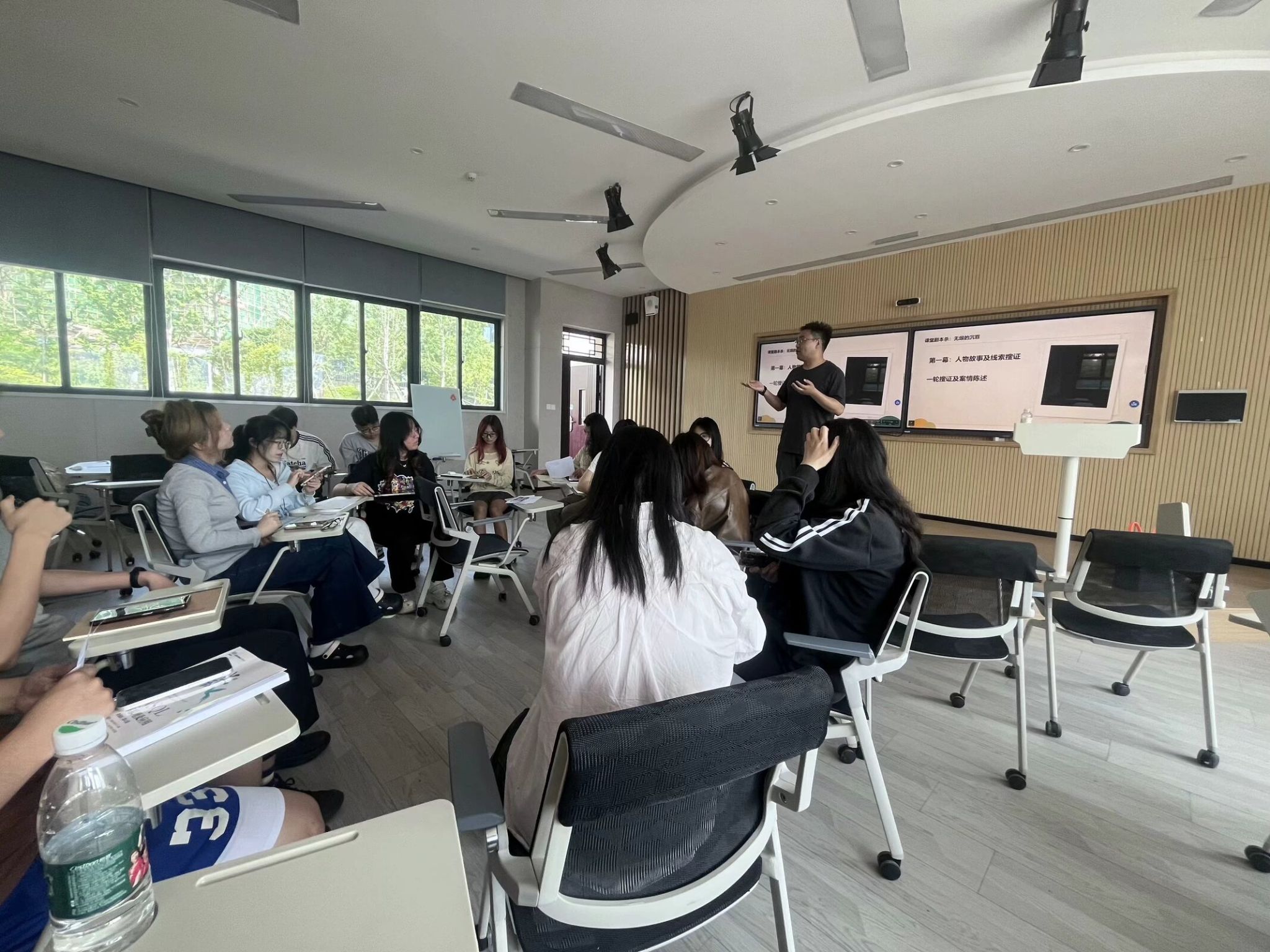 6月11日第四次集体备课成为成果展示的平台。杨文浩老师以“卡牌情境教学2.0版”为核心,汇报了教学革新实践:在第15教学周的课堂上,学生通过抽取“民国旅社密室”“太空站谜案”等跨时空情境卡,完成了平均字数超800字的故事创作。教研室现场观摩了教学视频后,一致认为该模式实现了“三大突破”——理论转化效率提升、学生课堂参与度升级、实践作品原创性显著提高。