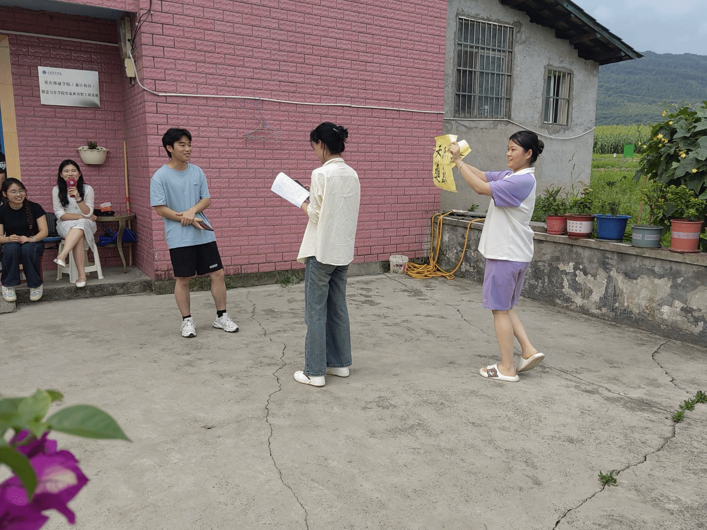 为深入落实重庆移通学院“教育教学三提三创”主题年活动方案,6月20日,綦江校区创意写作学院2024级作家班小说工坊迎来了本学年第六期暨结课之期的“田野工坊”特色教学活动。本次课程以写作中的“细节”为核心命题,由小说工坊导师苏瓷瓷和马静老师担纲主讲,带领学生深入登瀛小镇的乡野田间,在真实的泥土气息中捕捉细节肌理,于微观观察中唤醒情感共鸣,还对学生作品进行了深度研讨。