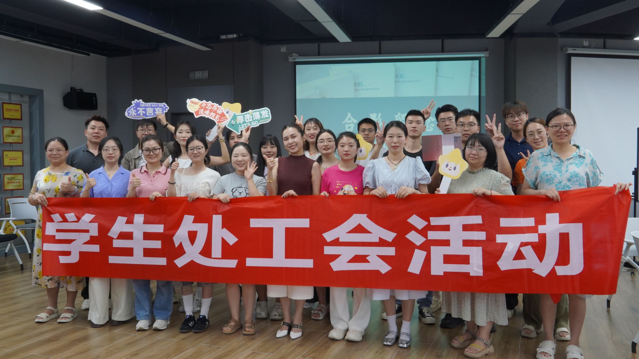 活动尾声,全体老师齐聚舞台合影留念,用镜头定格了这个充满知识、温暖、协作与激情的下午。本次工会文化建设活动,不仅是一次对学校核心理念的深度学习与内化,更是一次卓有成效的团队熔炼。未来,学生处全体教师将以更饱满的热情投身完满教育事业,将“梦想与实践”的精神内化于心、外化于行,为培养新时代一流应用型人才贡献坚实力量!