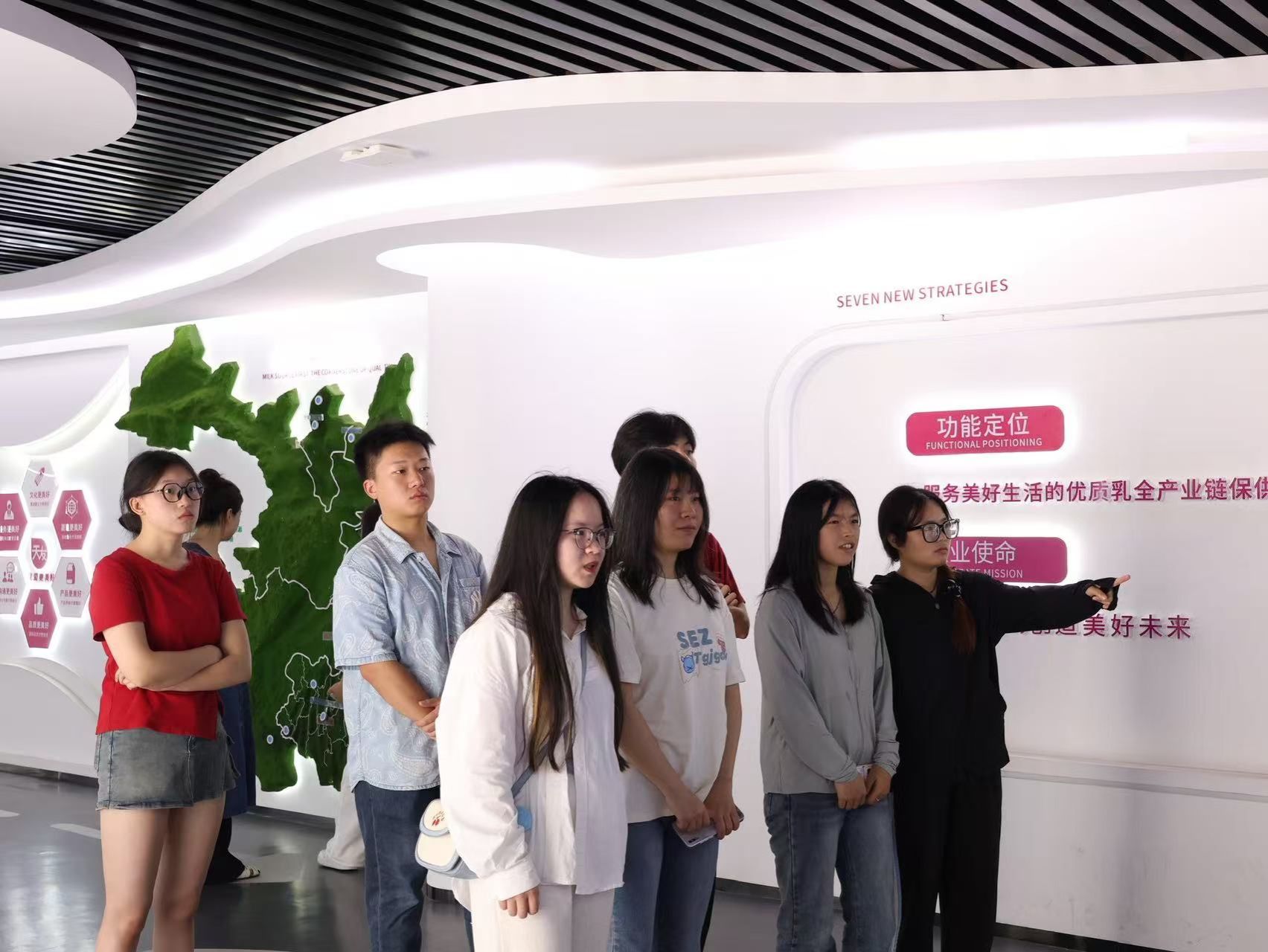 重庆市天友乳业股份有限公司始创于1931年,是一家有94年历史的全产业链专业乳企。当天上午,在天友乳业讲解员张倩的带领下,学院指导老师郝树静、杜公英,以及十余名新采学子,依次参观了天友品牌文化馆和智能化乳制品生产车间。在文化馆中,珍贵的历史影像和产品展示揭示了天友作为本土老字号如何深植市民记忆。步入现代化生产车间,全自动灌装、包装流水线高效运转的景象,为学子们呈现了传统食品工业拥抱智能化的鲜活样本,是课本之外关于品牌塑造与现代生产的生动一课。