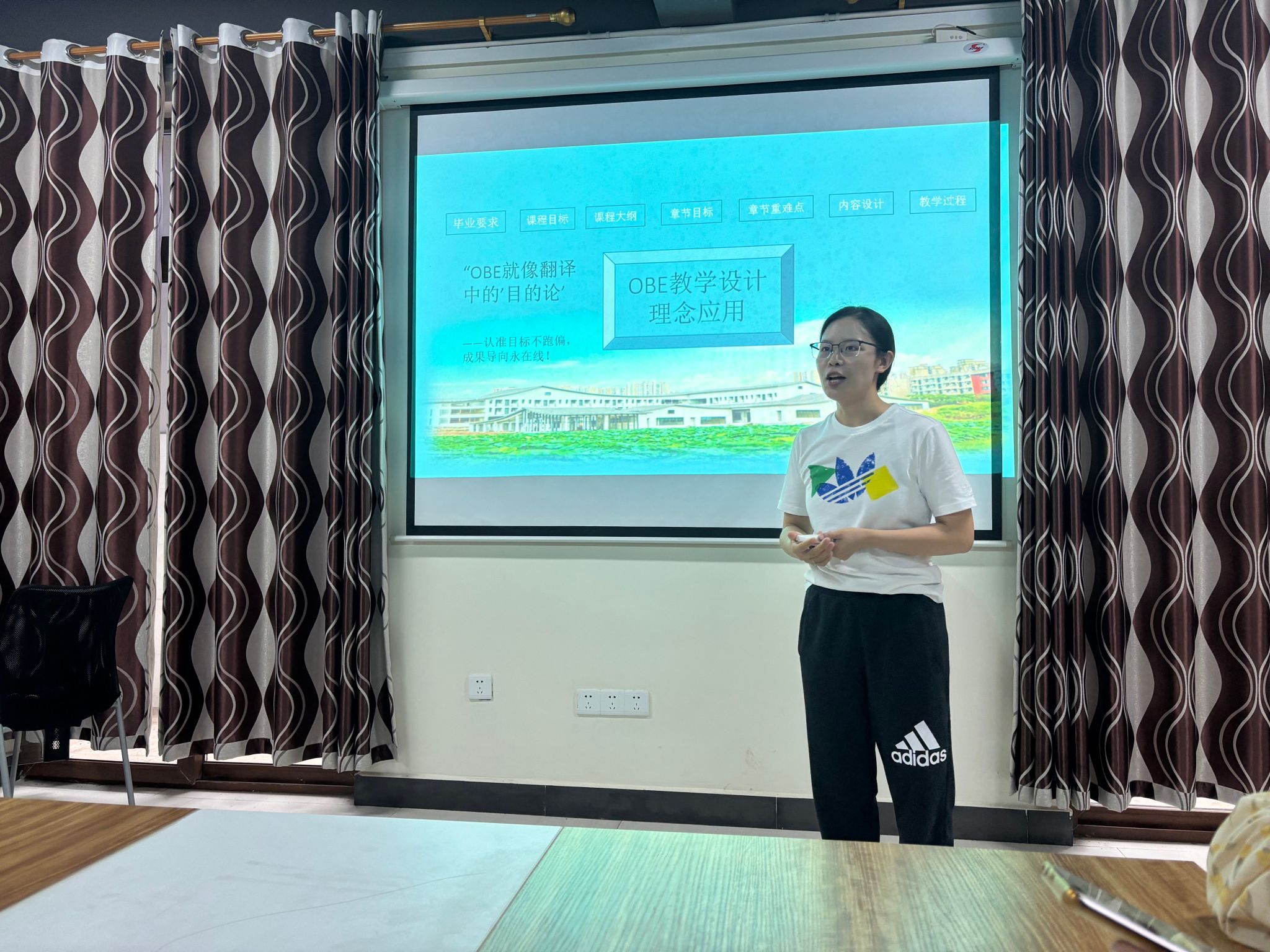 在教师代表案例展示分享环节,曾梦凡老师以《翻译理论与实践》课程为例,系统阐述了“翻译原则”教学模块的设计思路。她通过真实翻译案例的分析与实操,帮助学生深入理解翻译原则的应用价值,其清晰的逻辑架构和贴合实际的教学安排获得在场教师的认可。