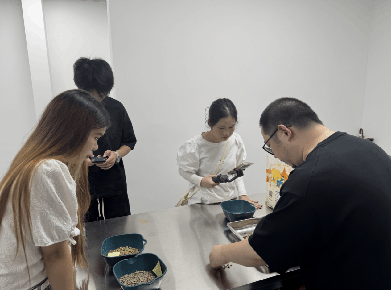 在罗青老师的带领下,采写团队首站来到大竹林街道295 Coffee Beans。85后青年店长程层向师生们分享了自己的经营理念。程层表示,咖啡行业涵盖寻豆、烘焙、冲煮等多个环节,作为一名烘焙师,其核心业务是烘培全球各地严选咖啡熟豆。他打破“咖啡店必选闹市”的常规,将店面选址首要条件设为满足24小时烘焙需求,通过精准把控咖啡豆产地、处理工艺与烘焙度,构建差异化产品体系。据程层介绍,年轻消费者对品质的追求催生了自主烘焙的市场空间,而持续参与行业赛事、精进技术则是其立足市场的底气。这种“以专业能力驱动商业”的模式,为采写团队提供了新兴消费领域的鲜活案例。