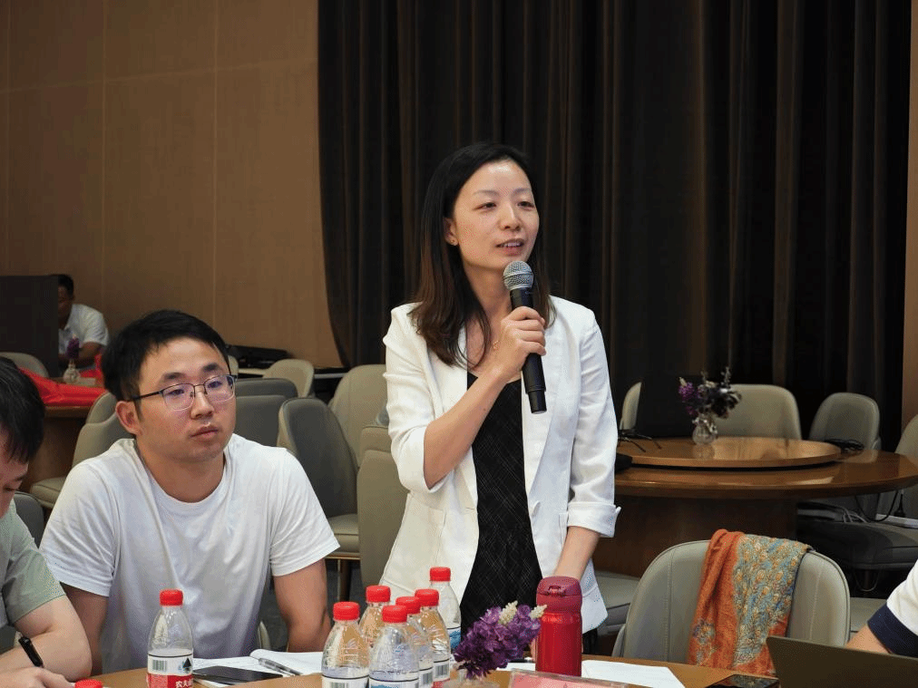 在小组总结汇报环节,由信息安全学院物联网教研室主任郑慧娟主持,各小组结合专题讲座与《梦想与实践》一书,深入探讨了未来教学方法的创新和人才培养的新模式。信息安全学院何哲老师代表一组分享了他们小组培训期间的学习感悟,作为教育工作者,既要怀揣育人初心,也要勇于突破传统,将理念转化为课堂实践。支枫然老师代表二组围绕“数智化时代面向未来的教学创新”这个主题,从教育的本质到教师的自我修养等方面分享了小组成员对学校教育教学理念的深刻领悟。双体软件精英产业学院张胜利老师代表第三小组分享了他们对于完满教育的理解,让学生发现自己特长并让其发光发亮。秦攀老师代表四组分享了"四位一体双院制"培养模式的前瞻性以及在职场中重要性,学校培养了社会需要的人,关注人的全面发展。