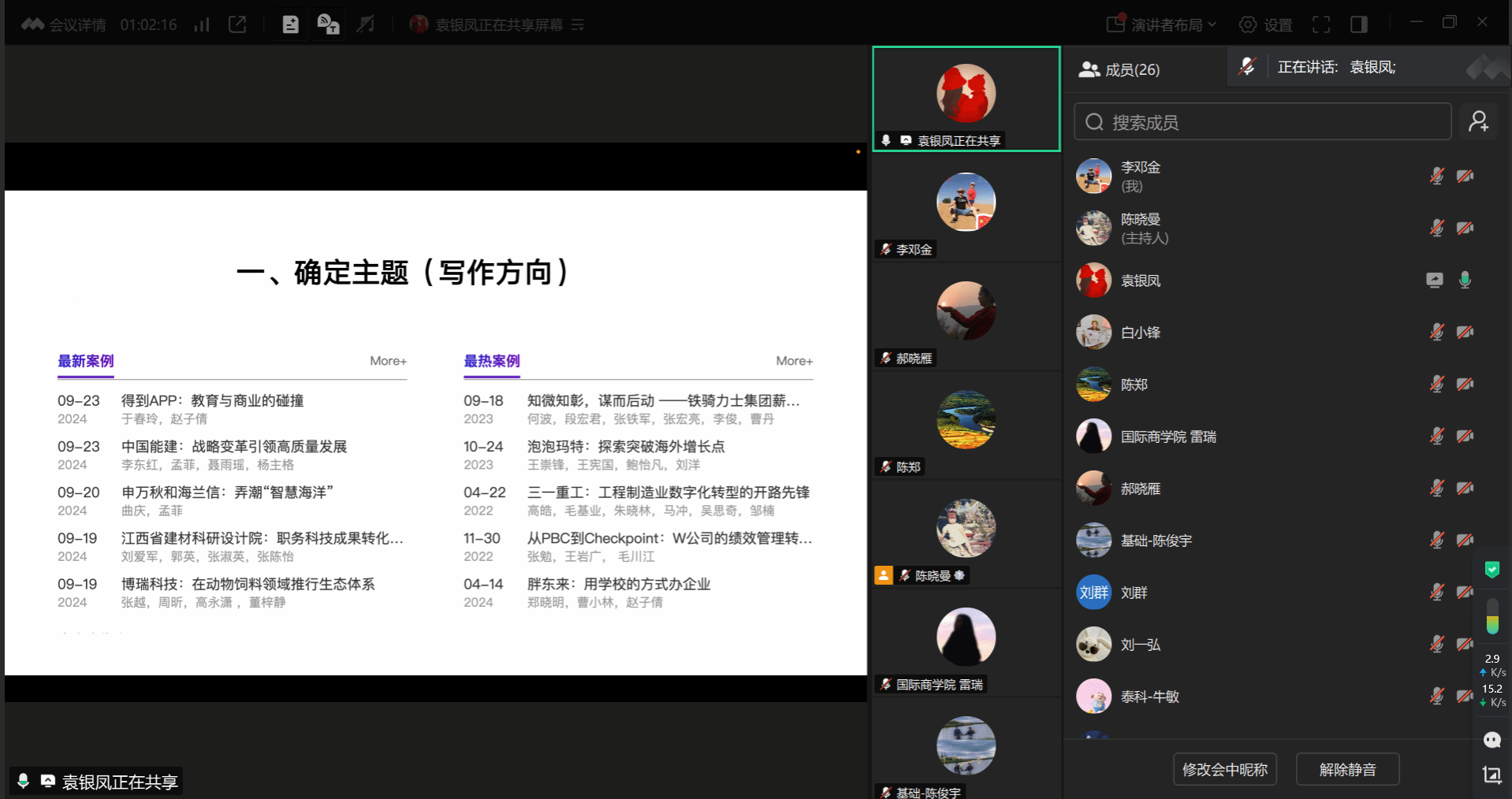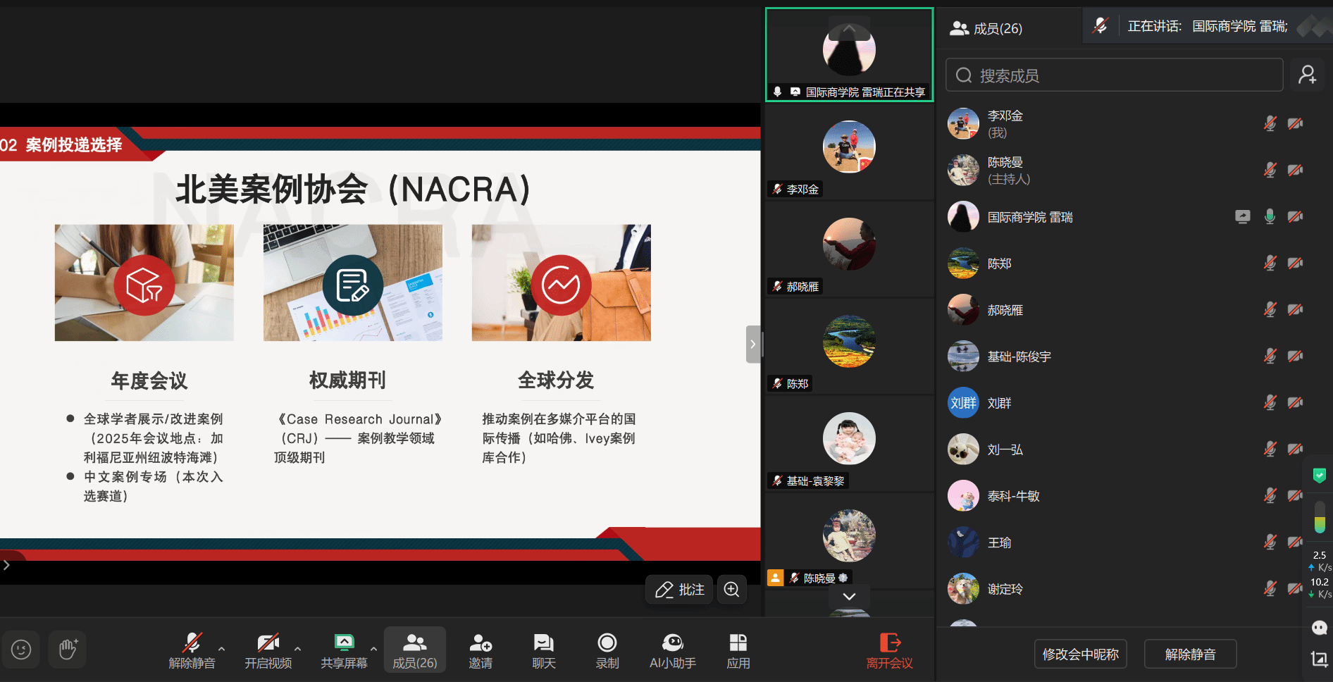 重庆移通学院国际商学院雷瑞老师分享合川同德福桃片案例入库北美案例协会的经验,强调选择典型企业、解决写作过程中的问题以及选择合适案例库的重要性。新商科教学部袁银凤老师详细介绍天府可乐案例入库清华大学工商管理案例库的时间安排、过程和心得,指出案例建设离不开与企业传承人、高管的多次沟通,案例开发应实现企业、老师和学生三方受益。