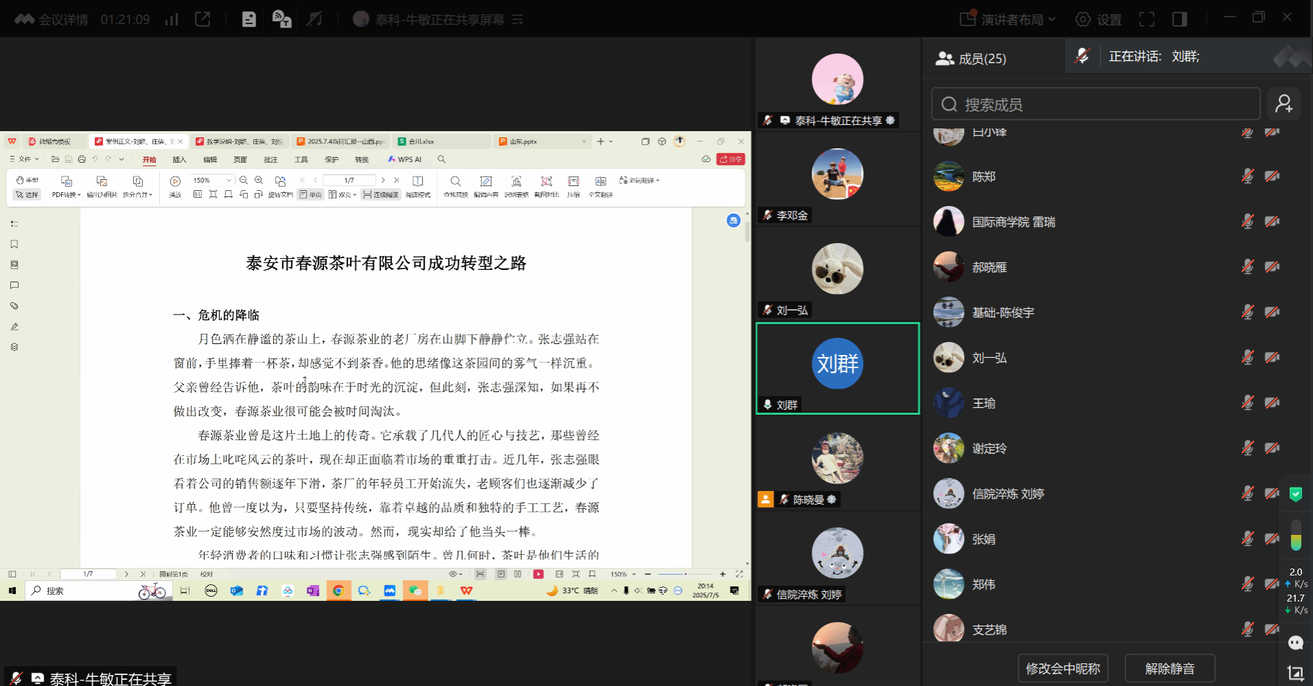 泰山科技学院淬炼商学院刘群老师分享了她撰写“泰安市春源茶叶有限公司成功转型之路”商业故事案例的经历,从描述调研、素材收集、叙事逻辑设计、理论融入及故事性与专业性平衡等案例写作过程,探讨成功者偏差、普适性及细节与简洁平衡等难点,强调通过讨论和辩论方式将案例用于教学以激发学生思考,表示将继续改进案例写作并与各方共同进步。