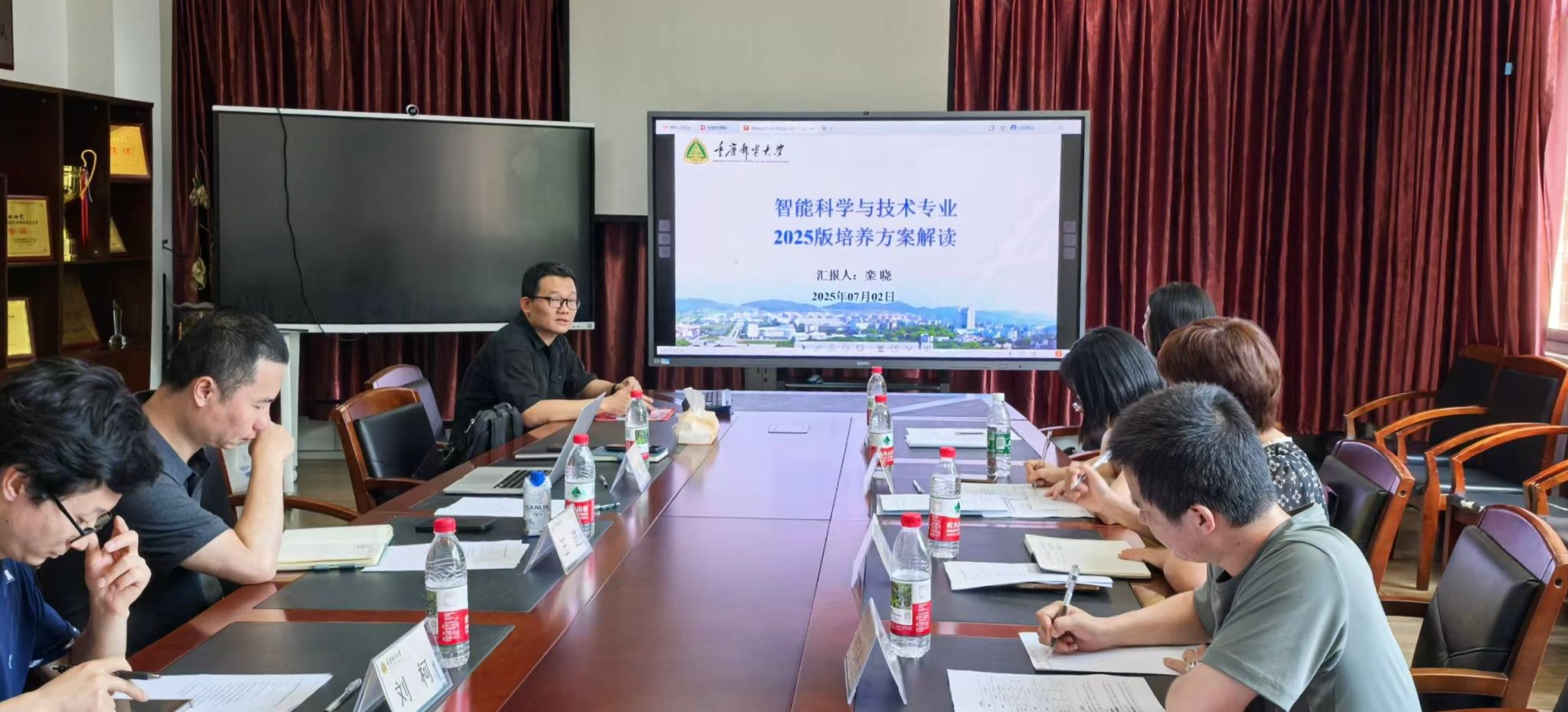 会议伊始,重庆邮电大学人工智能学院栾晓主任介绍了重邮智能科学与技术专业的专业概况。该专业作为国家级一流本科专业建设点、重庆市大数据智能化类特色专业,依托计算机科学与技术与智能科学与技术一级学科博士点,拥有大数据智能计算示范型国际科技合作基地、计算智能重庆市重点实验室等优势科研平台,师资力量雄厚。栾晓主任还详细阐述了课程体系培养方案,强调了专业在数据智能分析与处理和智能系统设计与开发方面的特色培养方向。