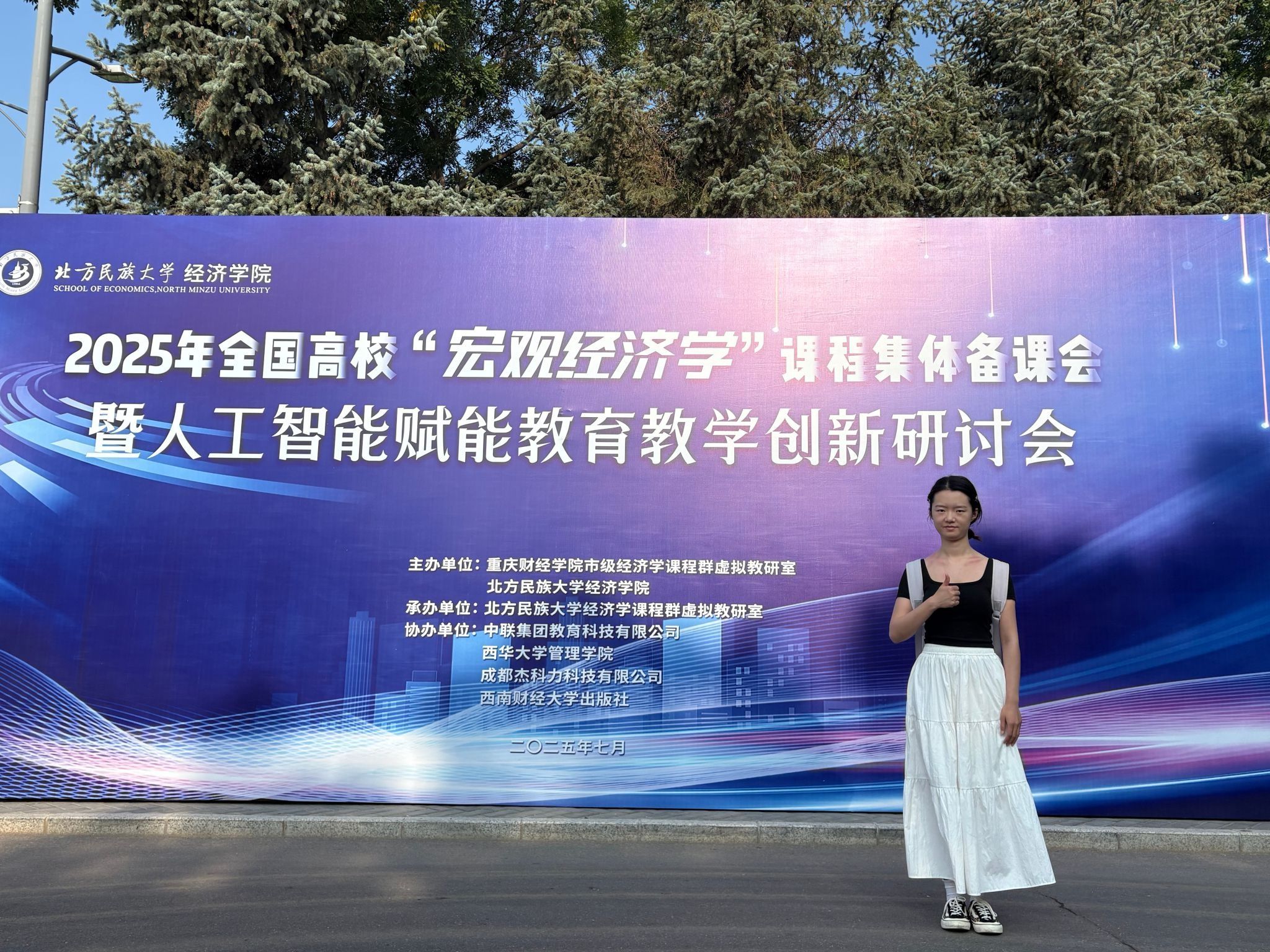 为深化高等教育教学改革,帮助教师进一步讲好用好马工程《西方经济学》教材及其配套用书,提升教师的教学创新与教学设计等教育教学能力,基础教研室教师陈俊宇于7月12日至15日在银川参加了“2025年全国高校宏观经济学课程集体备课会暨人工智能赋能教育教学创新研讨会”,本次研讨会由重庆财经学院市级“经济学课程群虚拟教研室”联合北方民族大学经济学院、北方民族大学经济学课程群虚拟教研室共同举办。