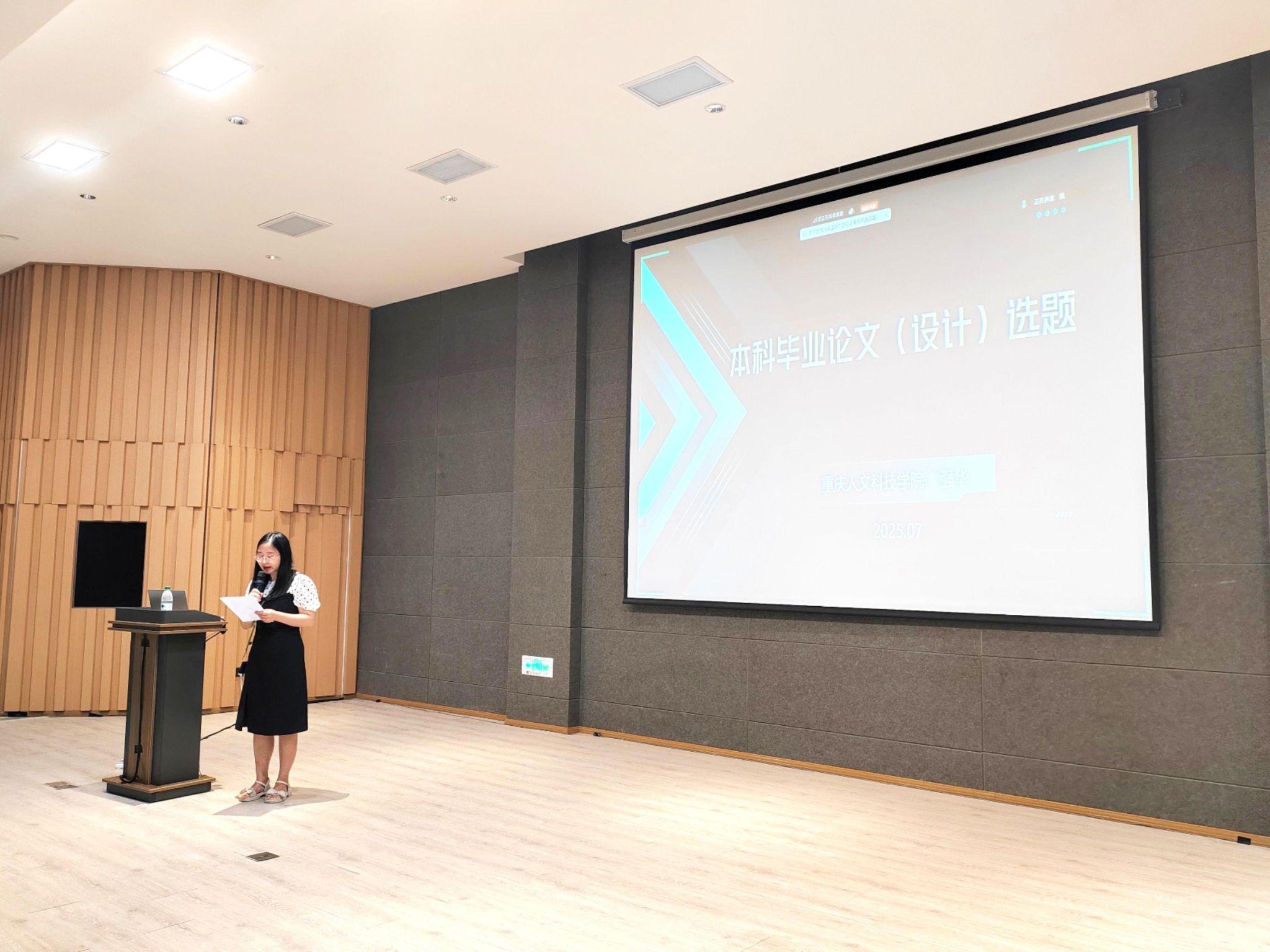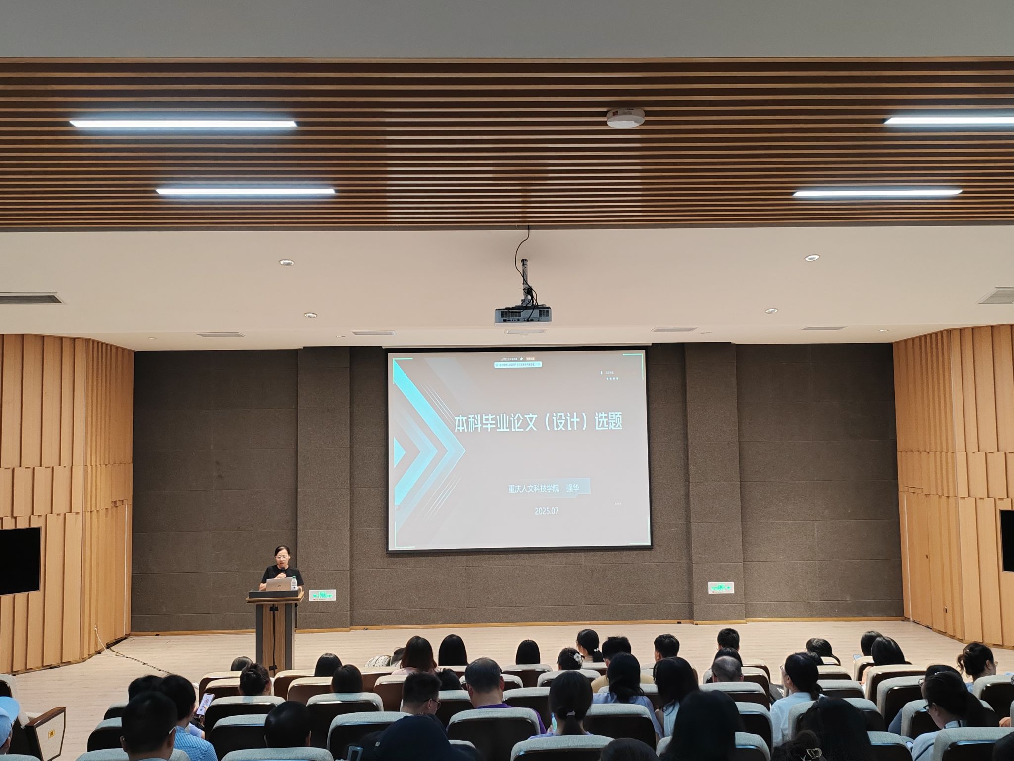 为全面提升毕业设计选题质量,强化实践创新能力培养,7月24日上午11点,智能工程学院在六度空间无限多功能厅召开2026届毕业设计选题专题培训会。本次培训会由智能工程学院副院长李洁主持,智能工程学院院长党晓圆及全体教师参会,此次会议特邀重庆人文科技学院机电与信息工程学院院长强华教授担任主讲。