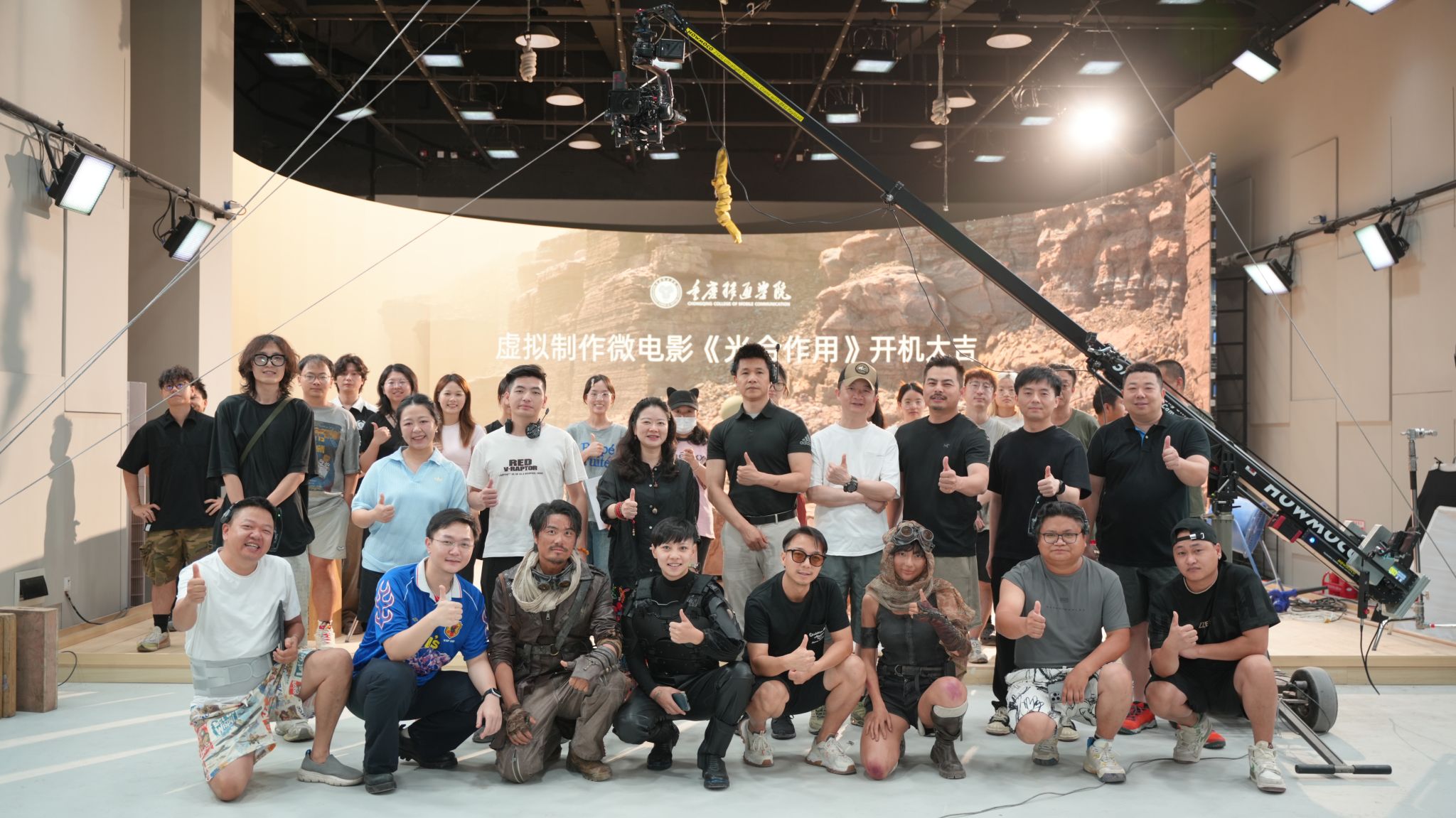 7月21日,重庆移通学院綦江校区戏剧影视学院虚拟制作影视项目——全国首部虚拟拍摄科幻动作电影《光合作用》开机仪式在戏剧影视学院虚拟拍摄全媒体演播厅圆满举行。戏剧影视学院院长王芳、副院长秦琦琅携手诺华视创电影科技(江苏)有限公司合作团队,与戏影师生代表共同见证了这一“光影育人”实践教学里程碑的诞生。