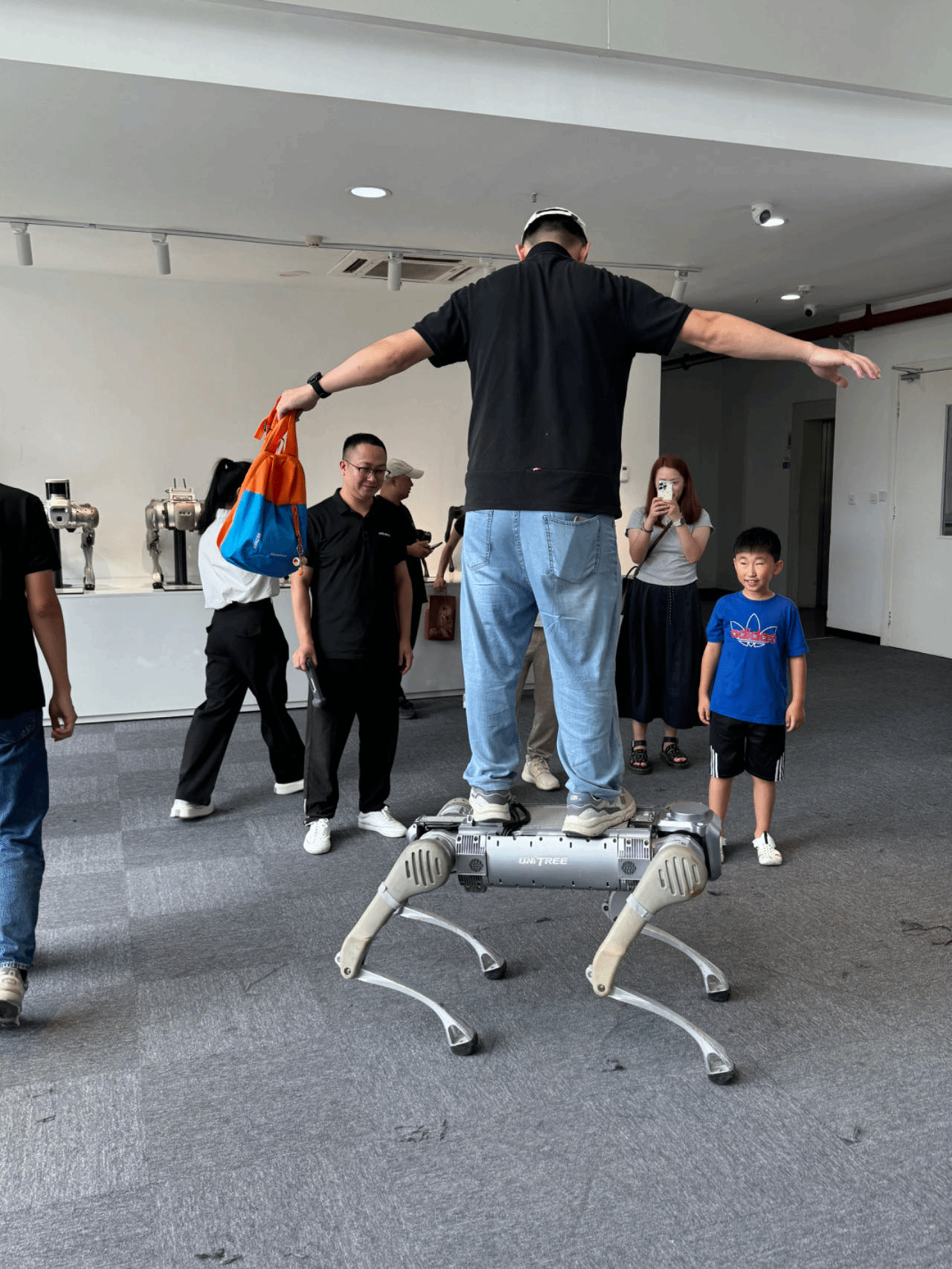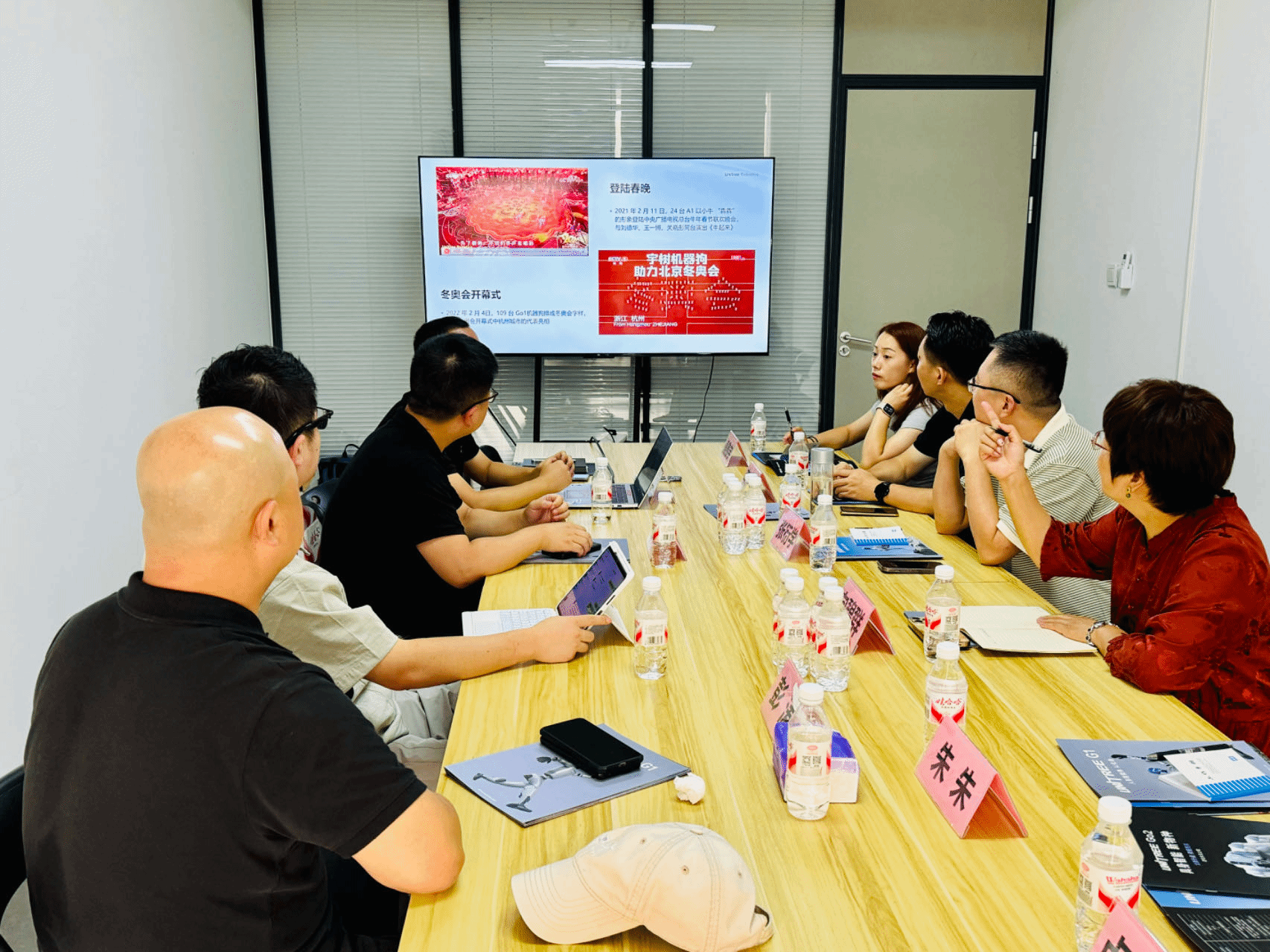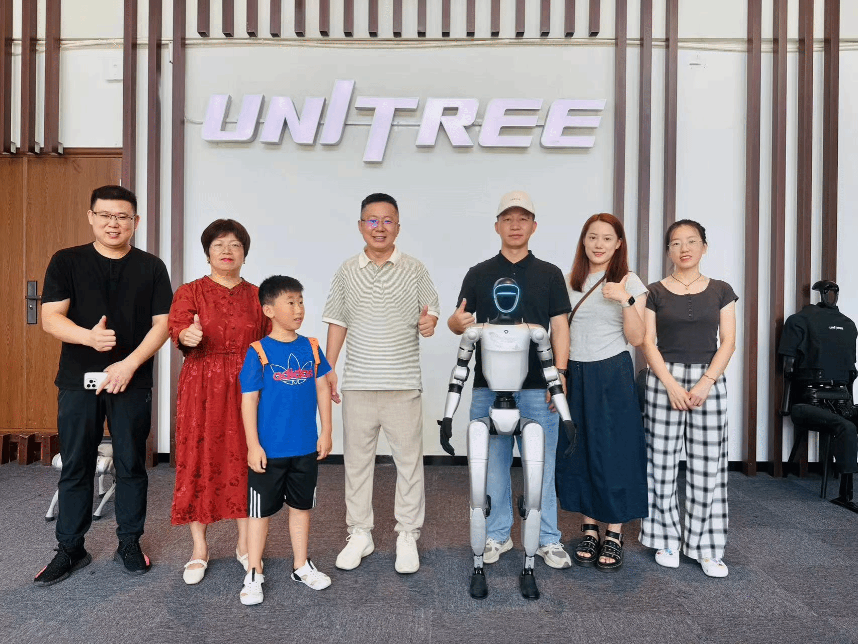 为推进 “智能交互机器人综合应用实验室” 高水平建设,深化产教融合,8 月 6 日,重庆移通学院副校长张衍学率计算机学院、资产处专项调研组,赴杭州宇树科技股份有限公司(以下简称 “宇树科技”)开展实地调研。计算机学院院长向碧群,资产处处长李克伟、傅鑫宇科长、朱朱老师,以及计科教研室主任卢星儒参与调研,重点考察宇树科技机器狗、G1 人形机器人等核心产品的技术性能、成本效益及教学适配性。宇树科技联合创始人及董事陈立、教育生态合作负责人吴秉昊、产品总监詹建忠、西南区域销售总监彭涛热情接待并深入交流。