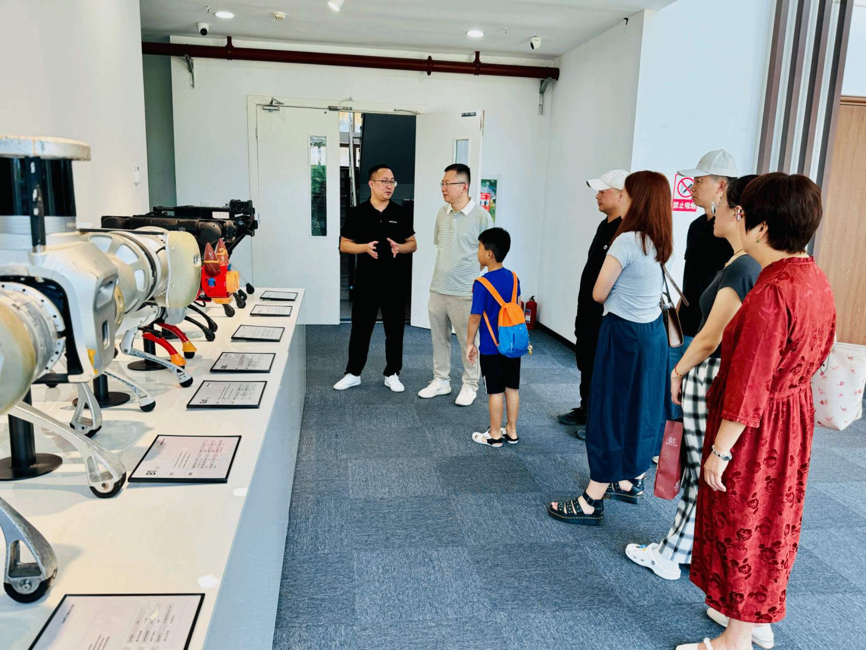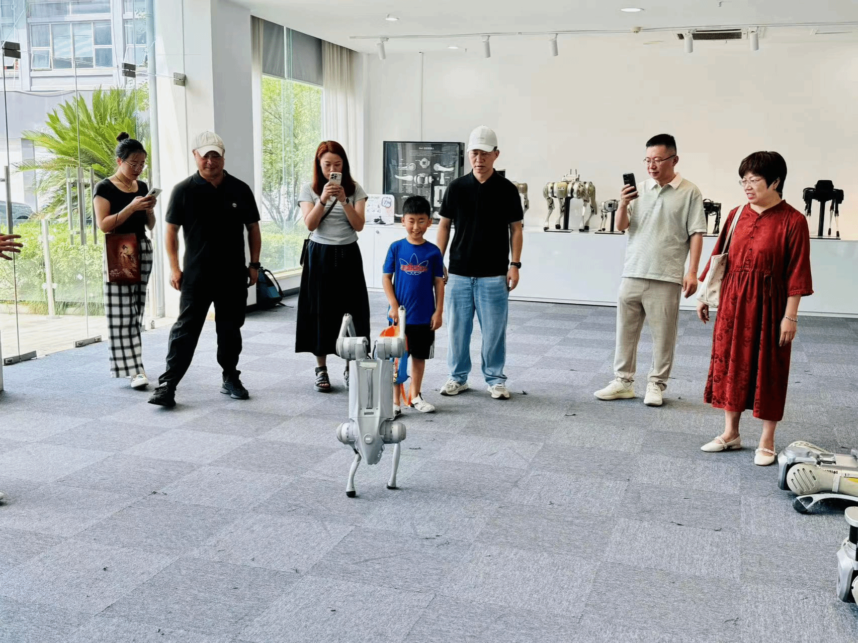 调研首站,调研组走进宇树科技机器人展厅。展厅内,宇树 Go2 edu 标准版四足机器狗与 G1edu-U1 人形机器人成为焦点。在产品总监詹建忠的带领下,调研组现场体验了机器人实操 —— 机器狗以精准算法驱动,优雅完成后空翻动作,流畅姿态中尽显技术精度;人形机器人则主动挥手致意,拟人化交互让在场者感受到科技的 “温度”。