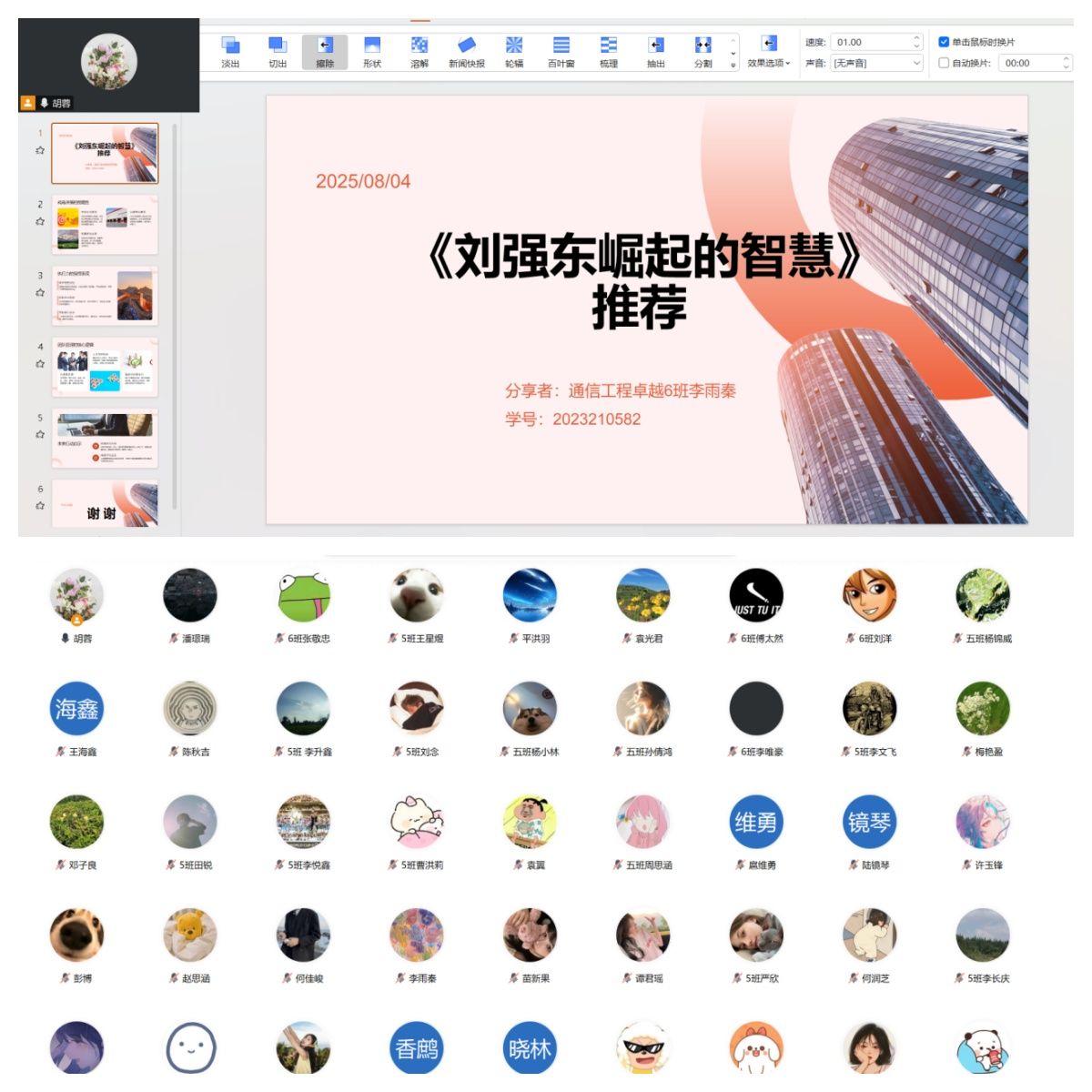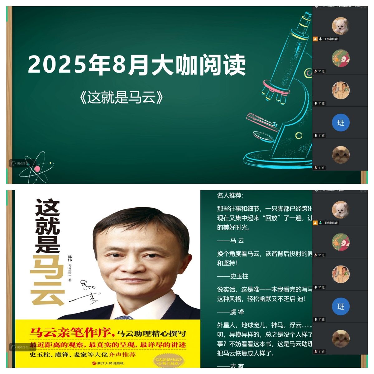 8月22日,通信工程学院2022级通信工程卓越11班全体学生与学业导师熊莉娅相约腾讯会议平台,以“云端相聚”的形式举办“大咖阅读·思行致远”主题读书分享会。本次活动聚焦企业家精神与成长智慧,通过对《这就是马云》一书的深度解读与跨书联谈,为大家带来了一场“精神盛宴”。