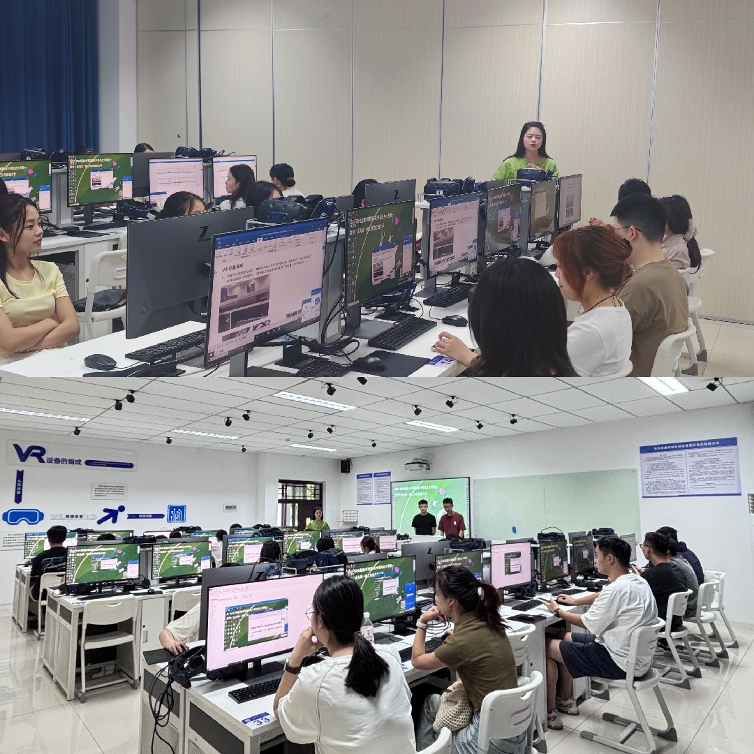 8月29日上午10:00,实验教学管理中心的向春红老师和陈正茂老师就实训楼各实验室的上下课运转模式、教学管理软件的使用、投影仪的使用以及音箱麦克风的使用进行了全方面的讲解。实验教学管理中心的刘俊伯老师、何泰鋆老师就VR数字媒体图形训练中心的VR眼镜的开关机、如何进行设备校准、如何实现定位进行了讲解,各位老师结合培训讲解和VR案例进行了佩戴体验。
