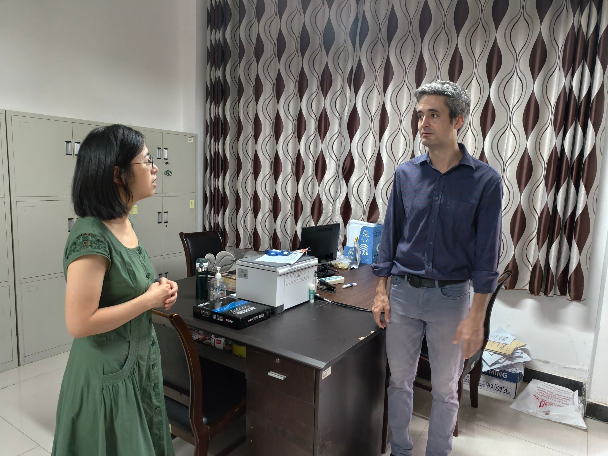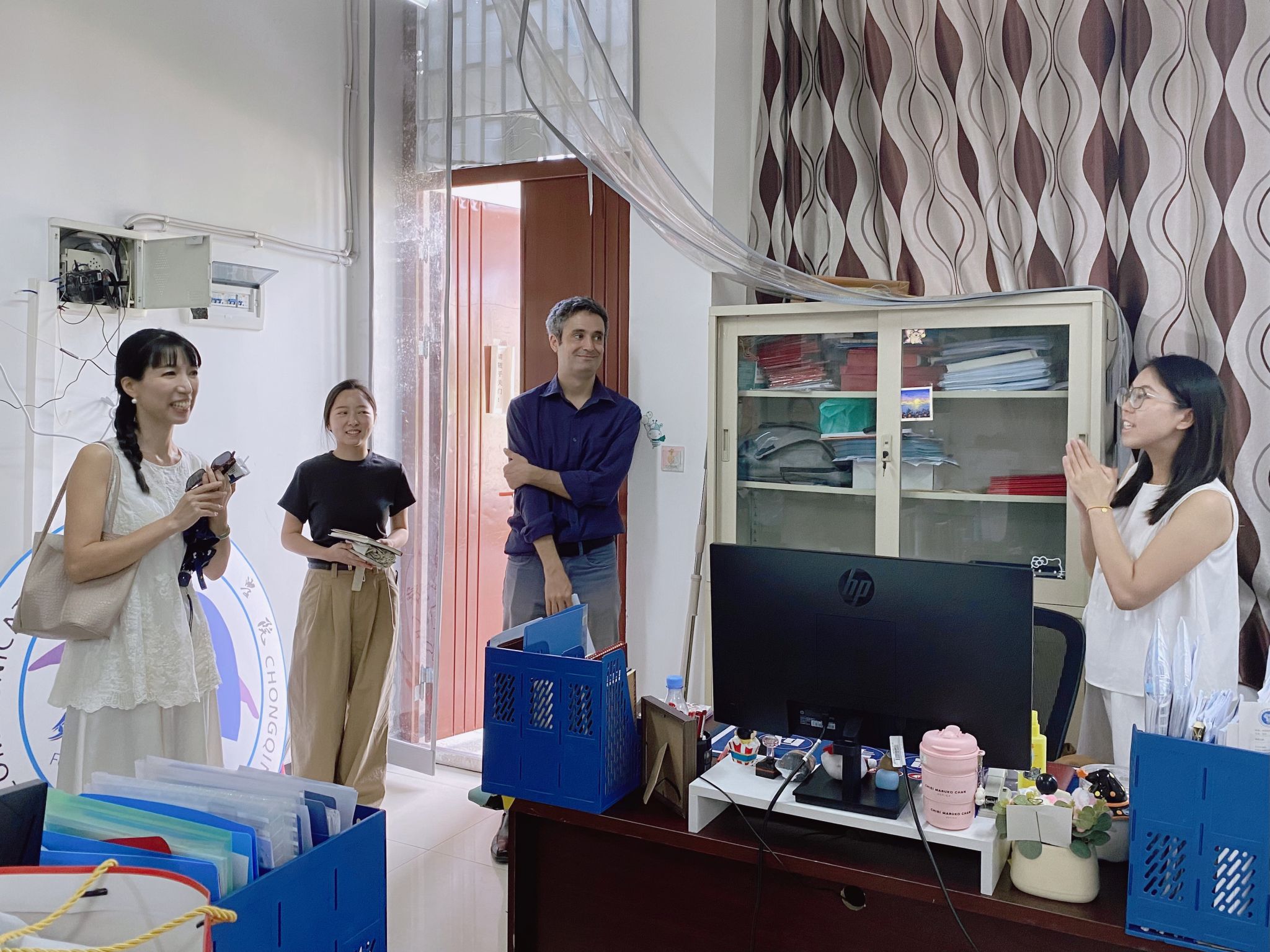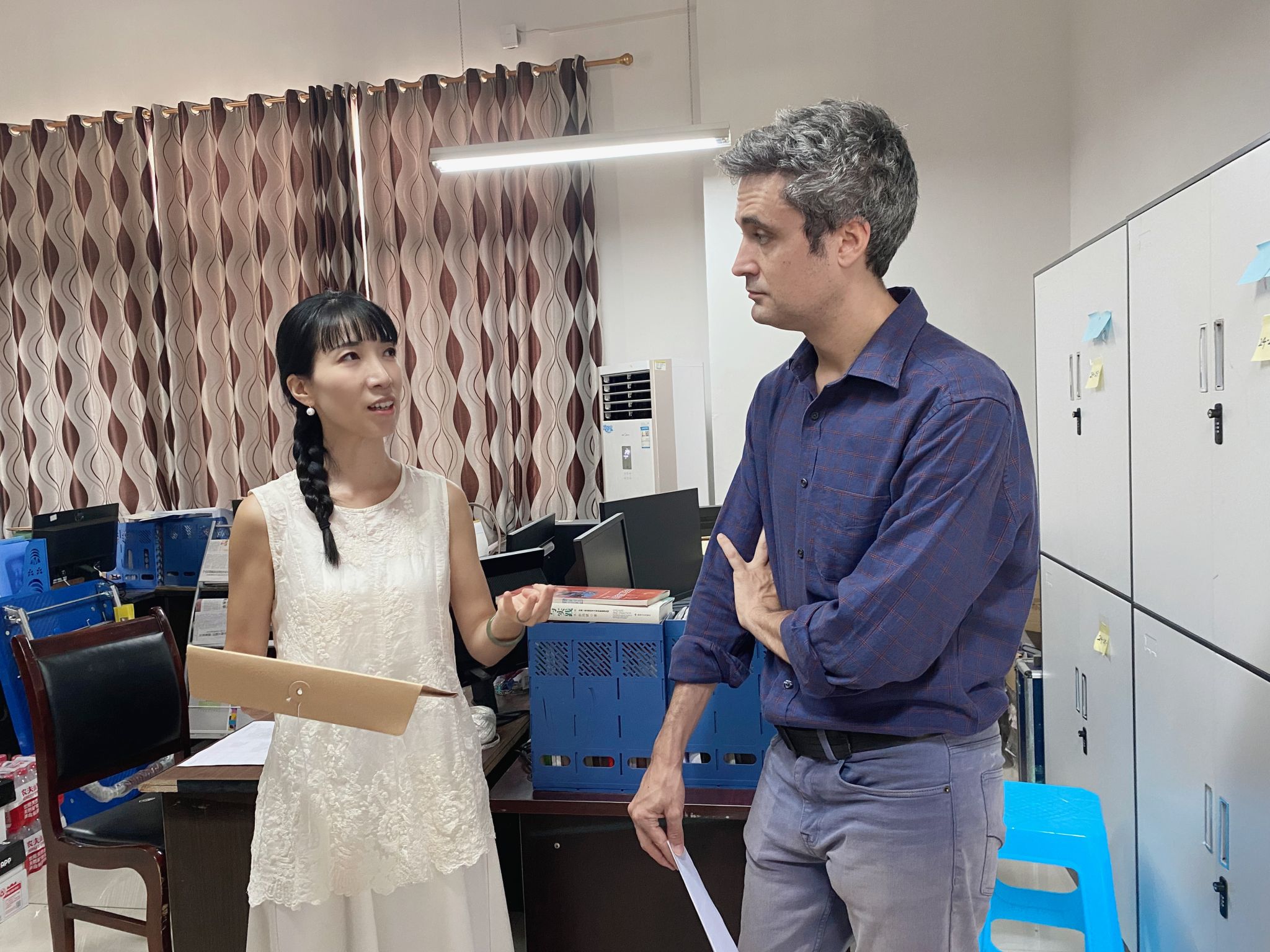 8月29日上午9点,外国语学院吴世银院长和罗琳副院长在荷悦书院院长办公室与新进外籍教师William亲切见面。两位院长热情欢迎 William 加入外国语学院教师团队,表示期待他为学院发展贡献力量。他们详细询问 William 在合川的生活情况,关心他的居住、饮食是否习惯,让 William 感到温暖,William表示他对在外国语学院的工作和生活充满期待。