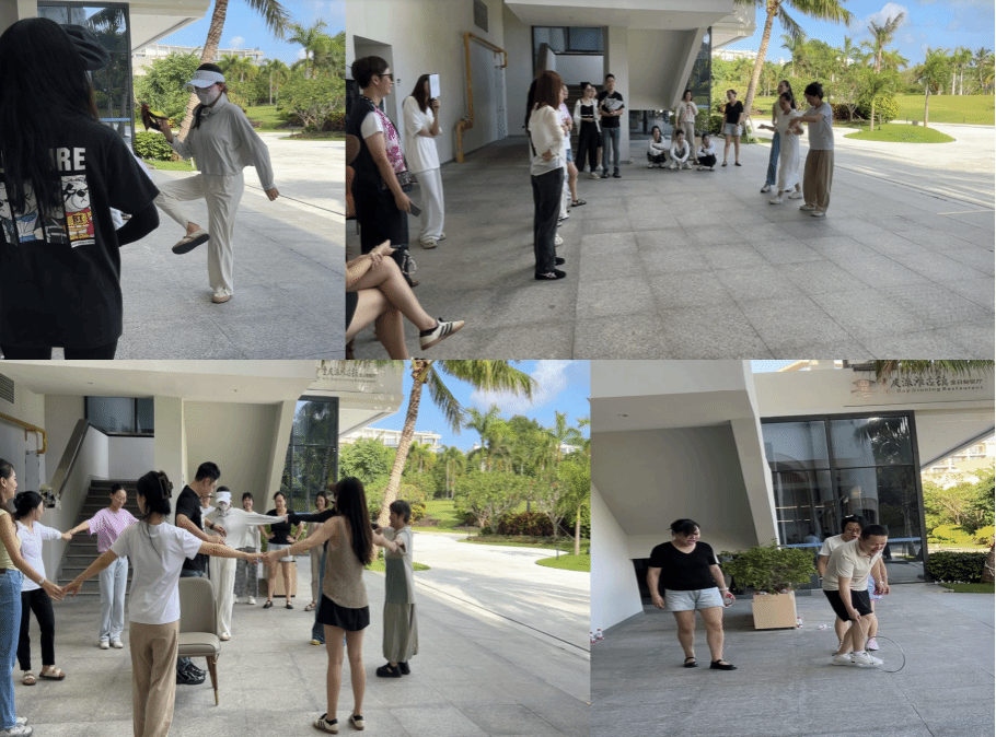 8月20日清晨七点教师们准时从学校集合出发,并于当日下午2点顺利抵达风光旖旎的三亚。经过简短的休整,教师们立刻全身心地投入到了“椰风迎宾·卓越启航”的团建活动中。该活动由工商管理教研室教师策划,陶羽老师主持,他凭借幽默风趣的开场白迅速点燃了现场的热情氛围。参训教师们通过随机抽签的形式分为四个小组,参与了“踢毽子、你画我猜、抢凳子、滚铁环”等一系列趣味盎然的环节。活动中,教师们完全沉浸于轻松愉悦的氛围之中,尽情享受着游戏带来的欢乐与释放。这一系列活动不仅极大地增强了教师们之间的相互了解与默契,更显著提升了他们参与培训的积极性与热情。