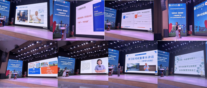 此次培训为期四天三晚,除核心环节外,8月23日还以《中小企业商业故事案例集》的 AI 再设计和《梦想与实践》的读书共创为重要切入点,创新开展 “创意风暴·探新悟道” 小组成果汇报与 “梦想与实践” 读书感悟活动。在 “创意风暴·探新悟道” 研讨中,陈佳奇、田雨仟、李海燕、袁黎黎老师围绕《中小企业商业故事案例集》 AI 再设计的思路、教学设计、读书过程中的感悟展开热烈交流,分享独特见解;大家通过现场演示、汇报讲解等形式,呈现 AI 辅助教学设计、校企协同项目方案等成果,进一步促进经验共享与思维碰撞,实现智慧持续沉淀。紧接着,李欧洋、钟雪、程楠、贺静老师分别以“新商科教育中的责任与温度”、“商战是没有硝烟的战斗”、“学习彭鸿斌董事长讲话”、“用行动点燃彼此的光”等几个方面展开汇报和研讨,以书香赋能教育初心,以思考推动育人实践。