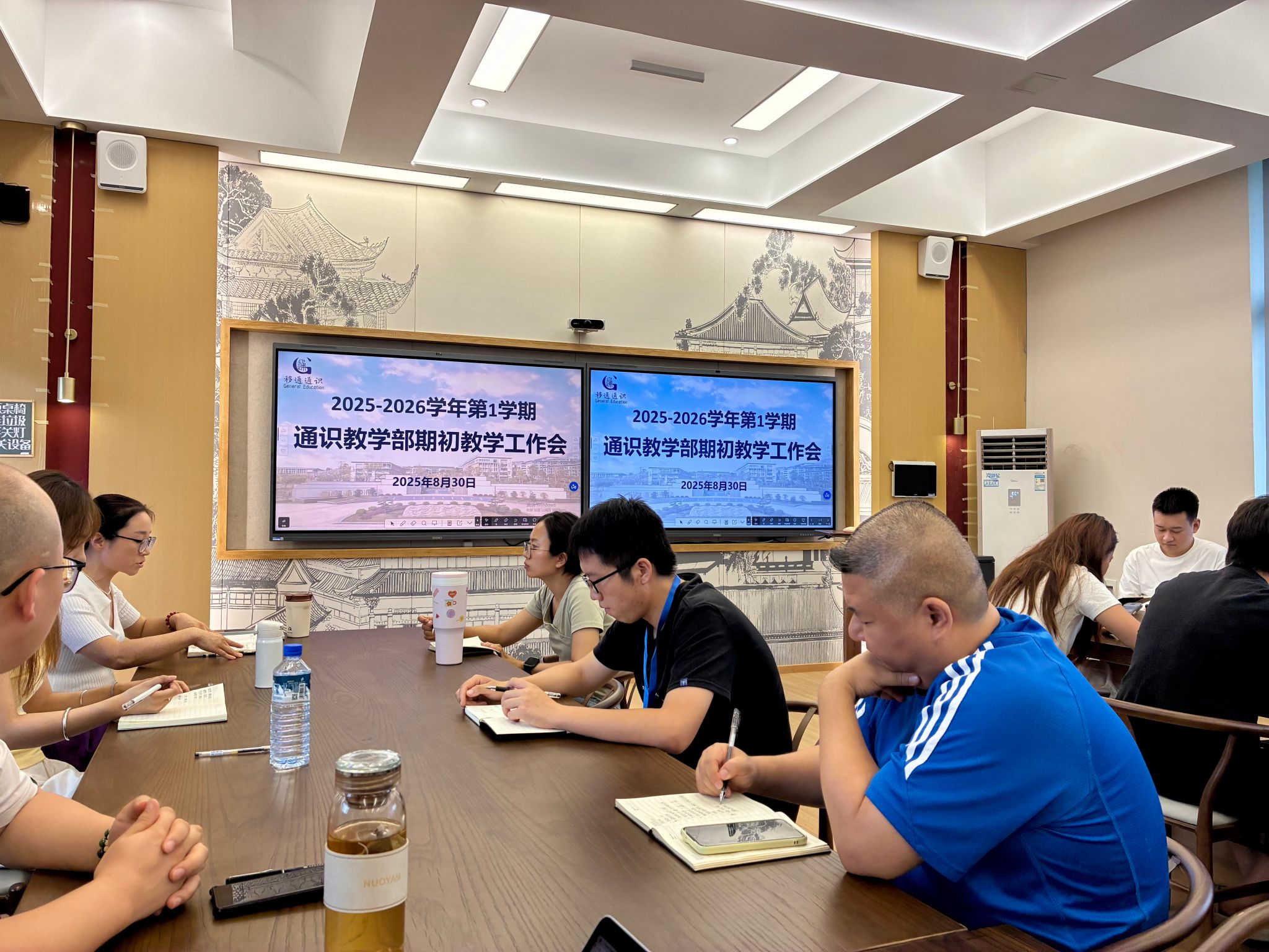 2025年8月30日下午,通识教学部全体教师在智者楼402教室召开期初教学工作会,通识教学部副主任张艳主持。本次会议聚焦新学期注意事项的明确,并对新学年部门工作重心进行规划部署。