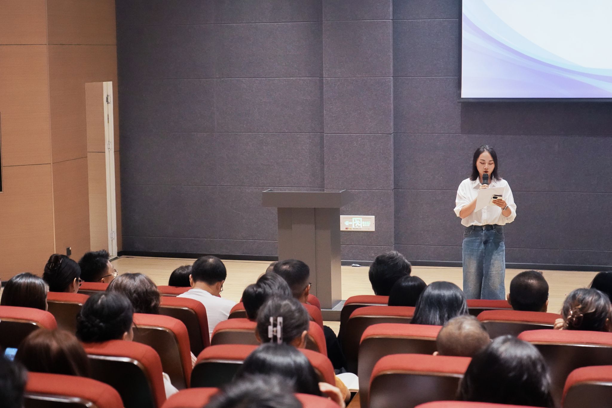 在新教师自我介绍环节,来自三个教研室的新进教师依次登台,用简洁而富有个性的语言分享了毕业院校、研究方向与职业期许。他们纷纷表示,将尽快完成从“学生”到“教师”的身份转变,在教学与科研的道路上虚心学习、快速成长。