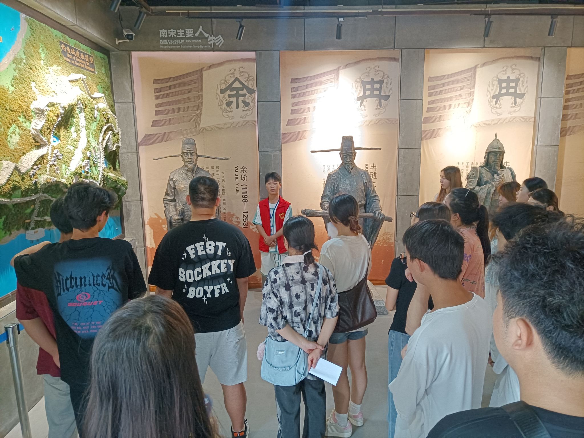 走进博物馆,首个展区“鱼城雄魂”便以震撼的场景图将师生们带回南宋抗击蒙古军队的烽火岁月。战争图景配合沙盘展示的“钓鱼城之战”,生动再现了以少胜多、坚守36年的钓鱼城悲壮历史。讲解员详细讲述了王坚、张珏等南宋将领率领军民坚守孤城、宁死不屈的英雄事迹,让师生们深刻体会到先辈们“誓与城池共存亡”的家国担当。