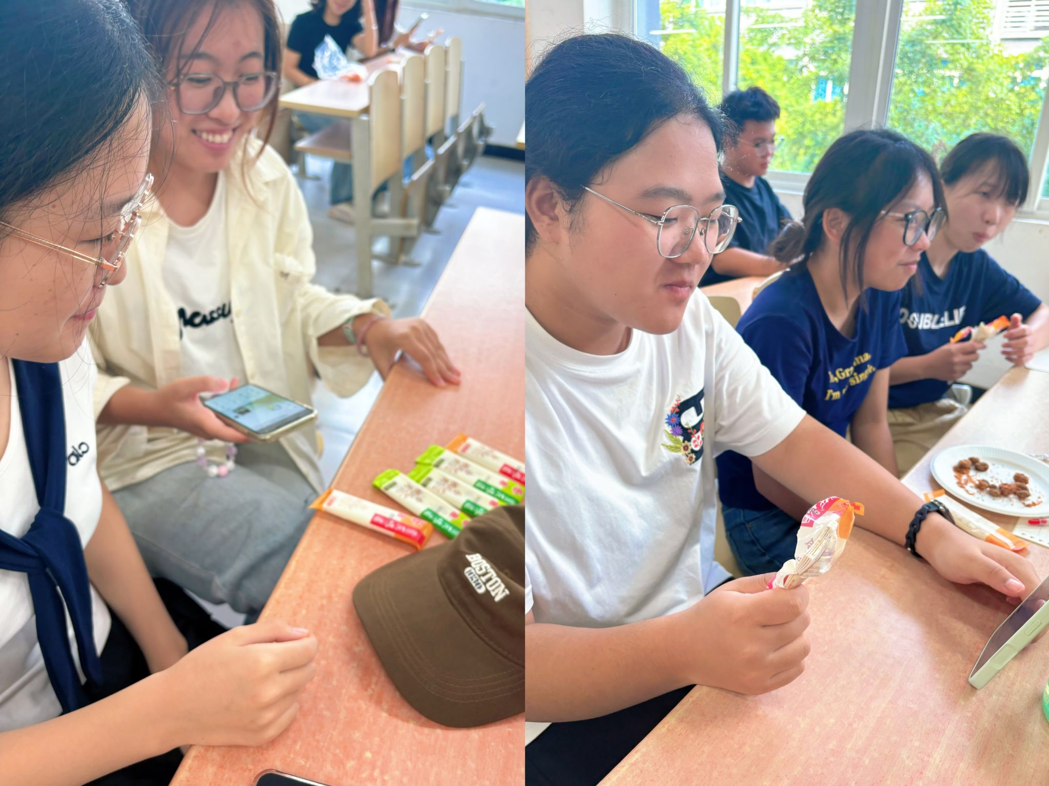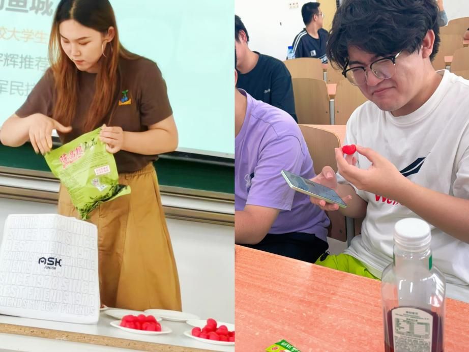 “解放碑、洪崖洞、来福士怎么游览最省时省力?”、“烤苕皮烤豆干最地道的吃法是放泡萝卜还是酸豇豆?”、“轨道交通怎样换乘最省时?”——课堂上,一个个实用问题被抛出,瞬间点燃了学生热情。不仅揭秘了多个小众打卡点和隐藏玩法,还分享了错峰出行、学生证优惠使用等实用技巧,将消费理性与旅行体验巧妙结合。既然是体验课,那么现场体验消费必不可少。张颖老师带来了重庆特产陈麻花、怪味胡豆、合川桃片,让同学们现场品尝感受重庆味道。同时,为了提高学生的金钱管理能力、减少盲目消费,还让同学们现场品尝了一些华而不实的产品,提醒同学们理性消费。