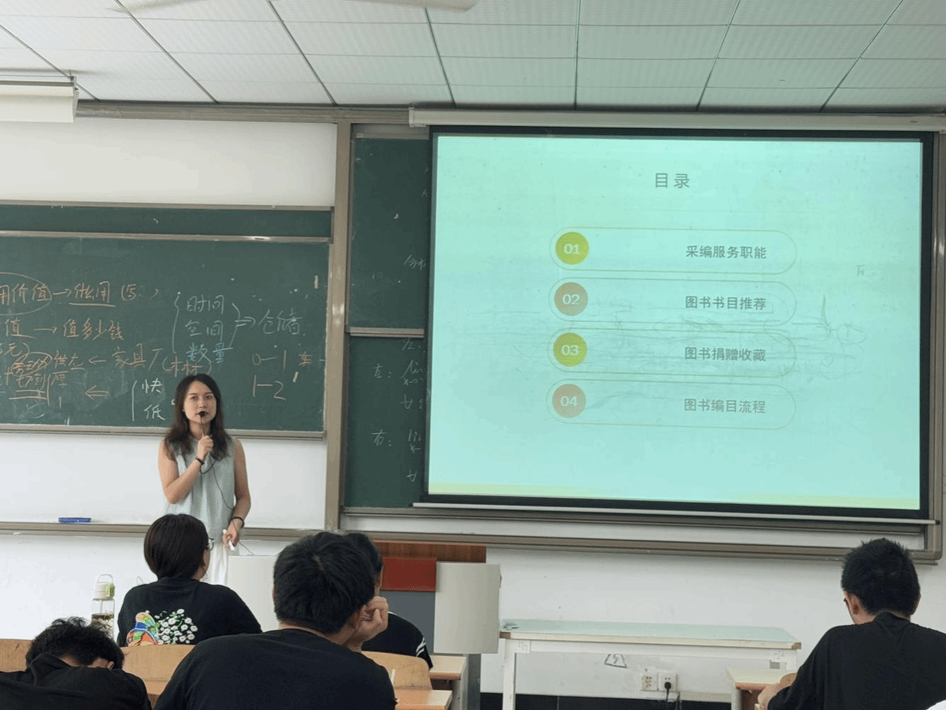 随后,在“从采编到上架的奥秘之旅”讲座中,采编部吕淑艳老师带领同学们揭开了图书馆图书“诞生”与“归位”的神秘面纱。她细致入微地讲解了图书从推荐书目到采购、分类编目,再到编目加工、最终上架的完整流程,同学们感叹道:“原来每一本可供借阅的图书背后,都凝聚着图书馆工作人员的专业努力和辛勤付出。”