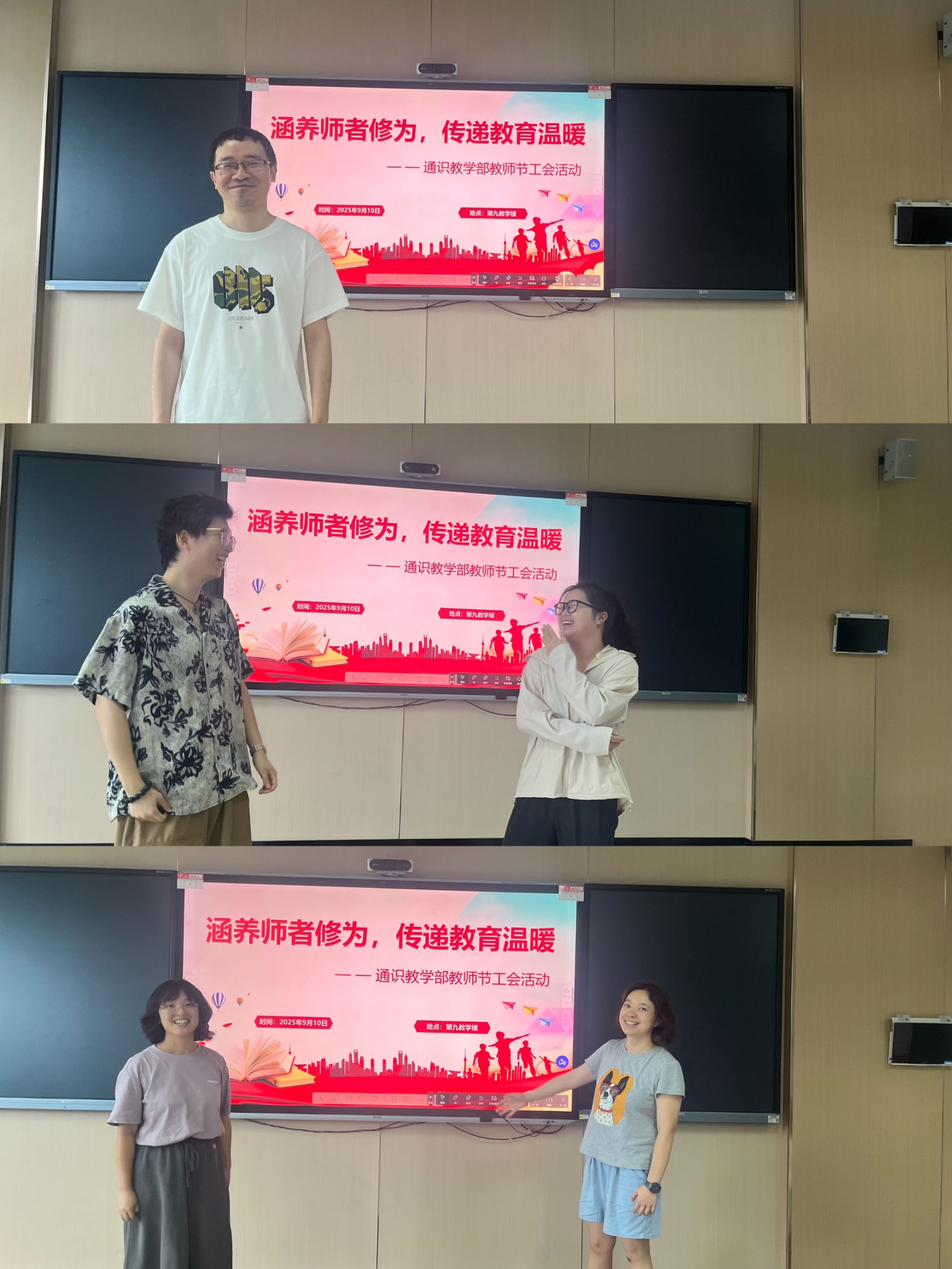 在第41个教师节来临之际,第十六工会小组通识教学部以 “涵养师者修为,传递教育温暖”为主题,开展了特色工会活动。活动现场笑声阵阵、暖意融融,部门教师齐聚一堂,在轻松氛围中共话师德、共享温情,为教育初心注入蓬勃活力。