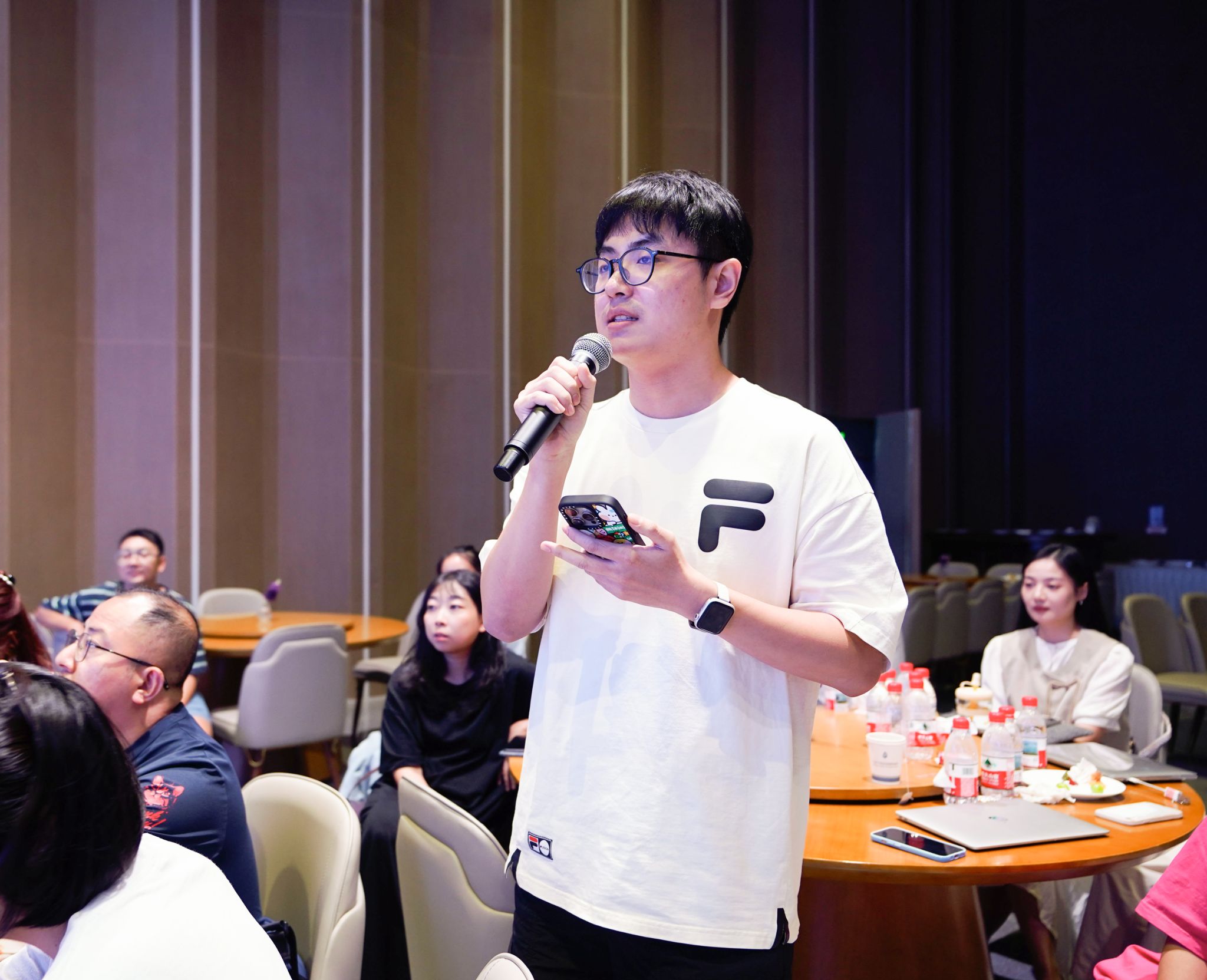 培训进入“琼岛夜话・共绘未来”环节,教师们围绕教研痛点、科研困惑展开热烈讨论,新老教师轮番提问,专家耐心解答,现场氛围热烈而真挚。教师潘倩云提出“跨学科研究的边界如何建立”的疑问,教师曲恺琳困惑“跨学科研究应以个人为主还是团队为主”,教师闫公博则担忧“AI对传统教研教学的冲击该如何应对”。李明德教授针对这些问题逐一回应,他建议跨学科边界需“以本学科为导向”,个人研究与团队协作依研究需求而定的模式,同时鼓励教师“主动拥抱AI工具,将其转化为教研助力而非阻力”。此外,他还为新教师送上“利用时间,赋能教育”的建议,提醒大家平衡教学与科研的关系。随后,张梅副院长分享培训感悟,她以“返璞归真,日积月累”八个字寄语新教师,鼓励大家在教研道路上脚踏实地、厚积薄发。