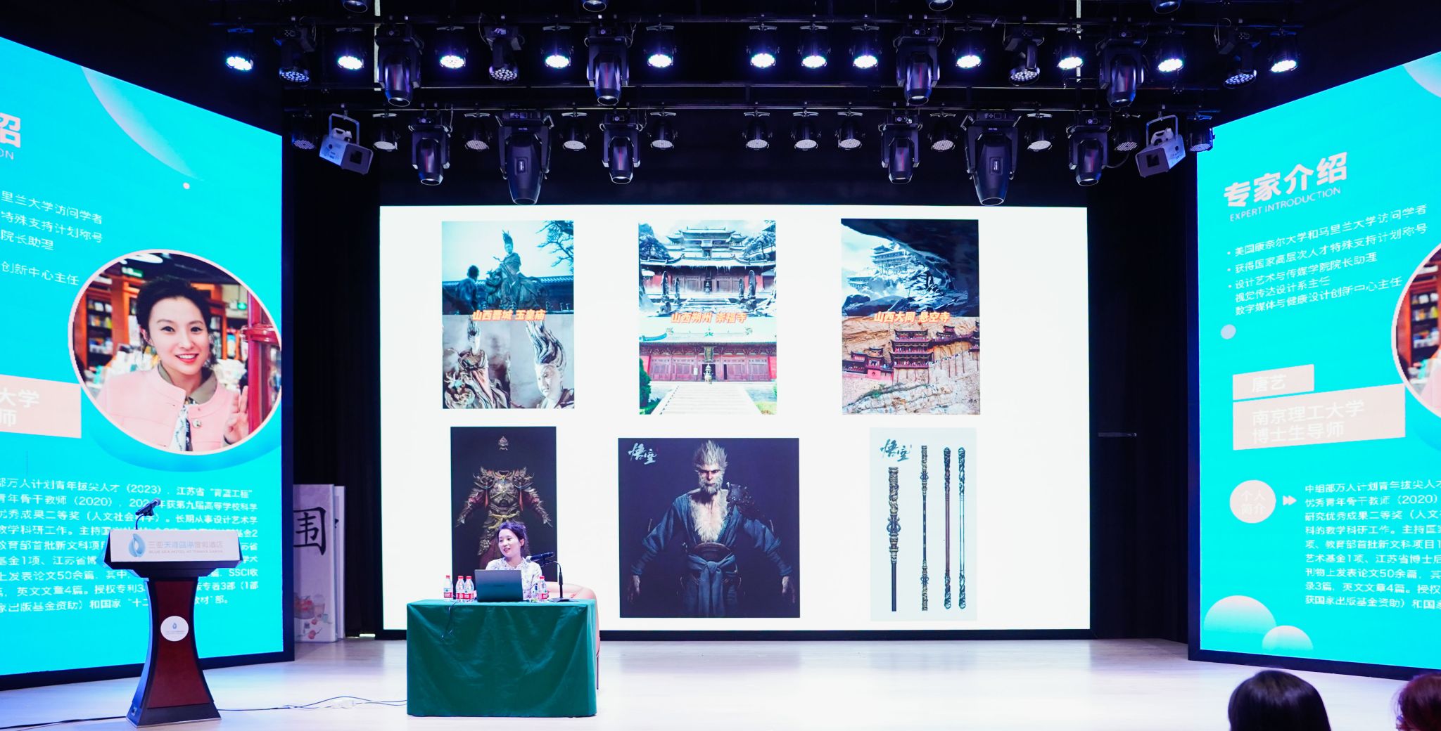 唐艺教授围绕“新时代艺术学科专业发展改革的突破与融合”“交叉发展视域下艺术学科教学设计的破界创新”的主题,通过分析近年国家社科基金申报数据,从背景概况、撰写流程、选题策略、撰写方法四个维度,构建起完整的申报知识体系,并特别指出“选题需紧扣数字经济发展趋势,关注学科交叉创新点”。在文化设计整合创新部分,她梳理了技术、文化与设计的关系演变,引用约翰・拉塞特“艺术挑战技术,技术启发艺术”的观点,提出“AI向善”的核心主张——强调人工智能时代,艺术设计需以技术为工具、以文化为内核,坚守人文价值底线。