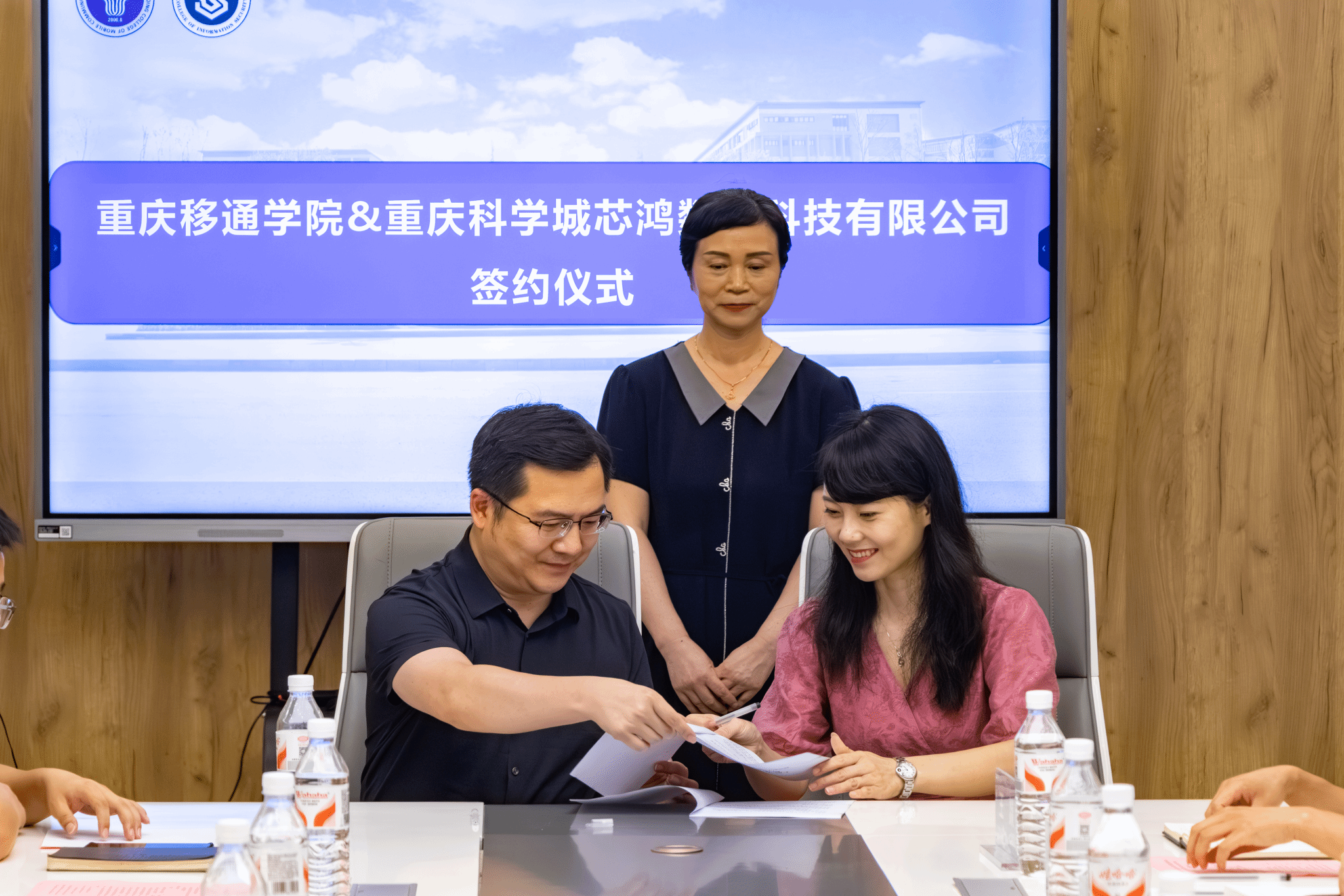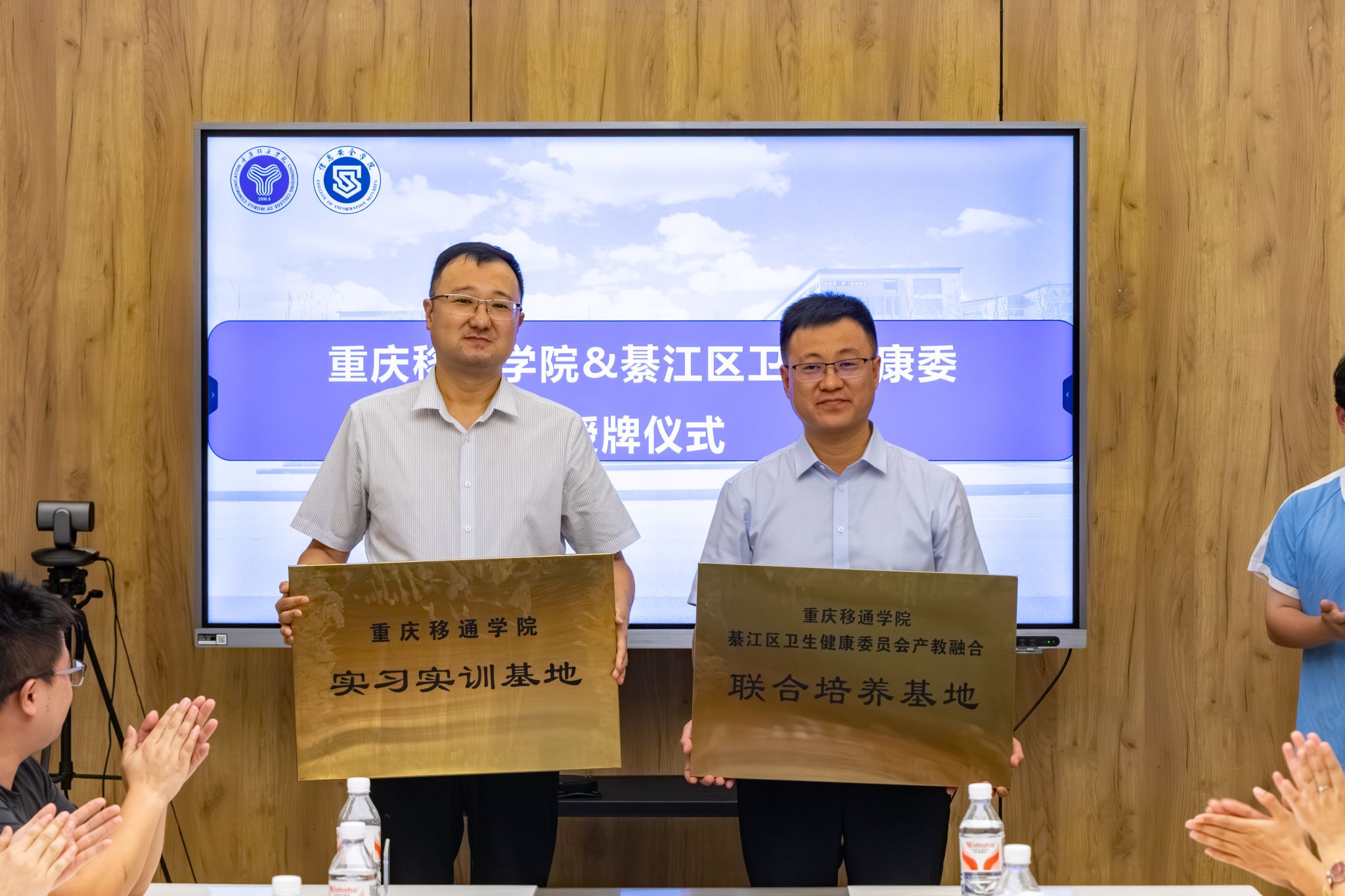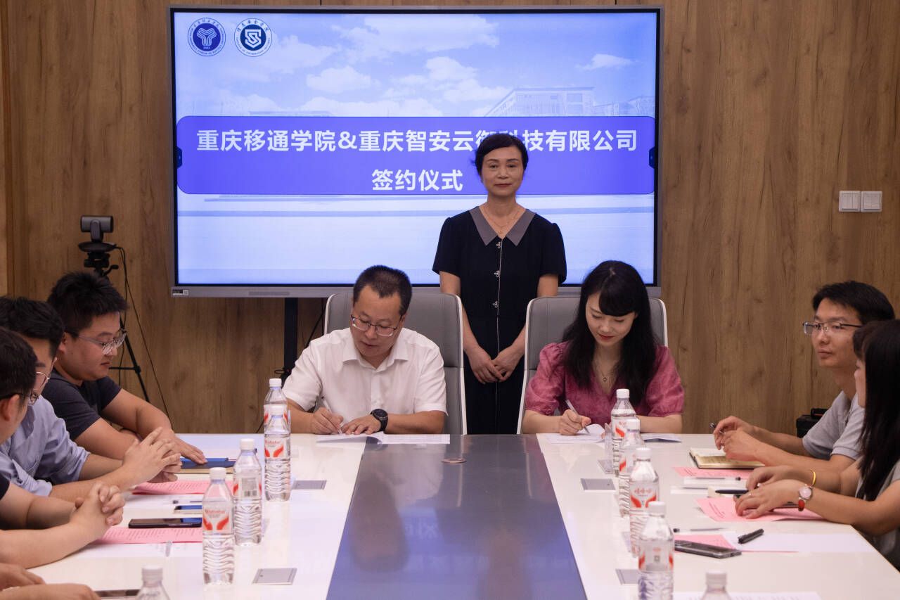 2025年9月17日15:00,重庆移通学院与綦江区卫生健康委、重庆智安云御科技有限公司、重庆信息通信研究院、重庆科学城芯鸿数智科技有限公司四家单位,于贤者楼双体224会议室隆重举行“校企合作集体签约授牌仪式”,重庆移通学院副校长孙玺,校长助理梁少锋,信息安全学院院长王宁等人员出席签约仪式。本次活动作为2025年重庆市网络安全宣传周的重要子活动,旨在深化产教融合,推进校企协同育人,助力新时代网络安全人才培养与区域产业创新发展。会议由重庆移通学院信息安全学院党总支副书记尹金维主持。