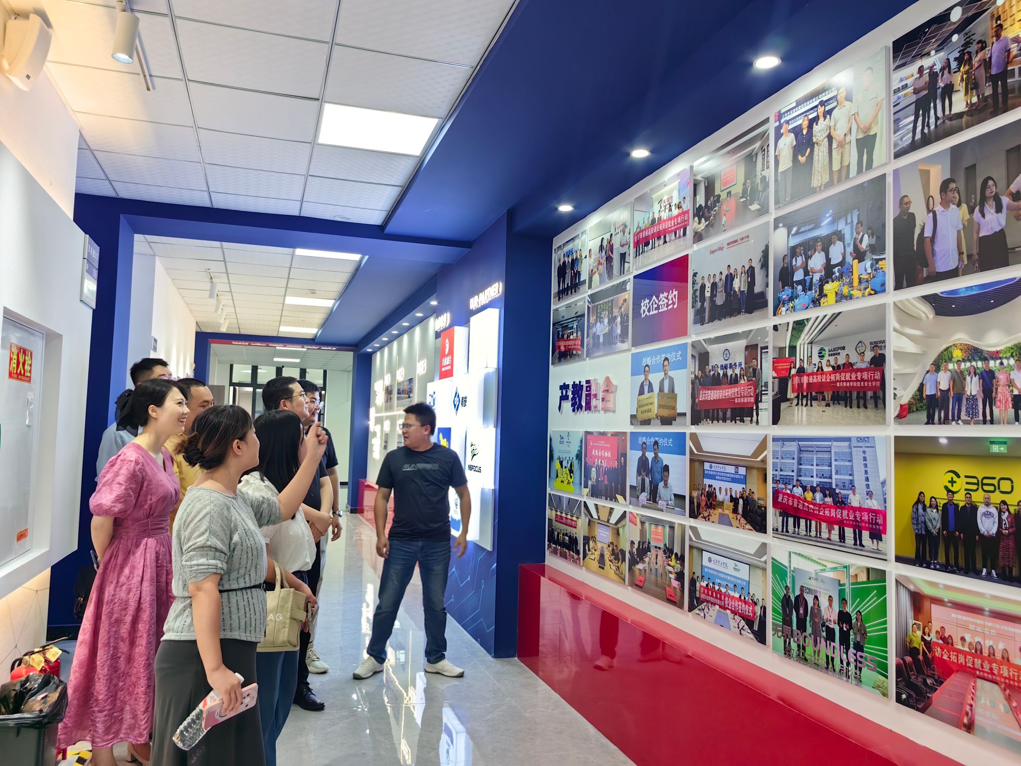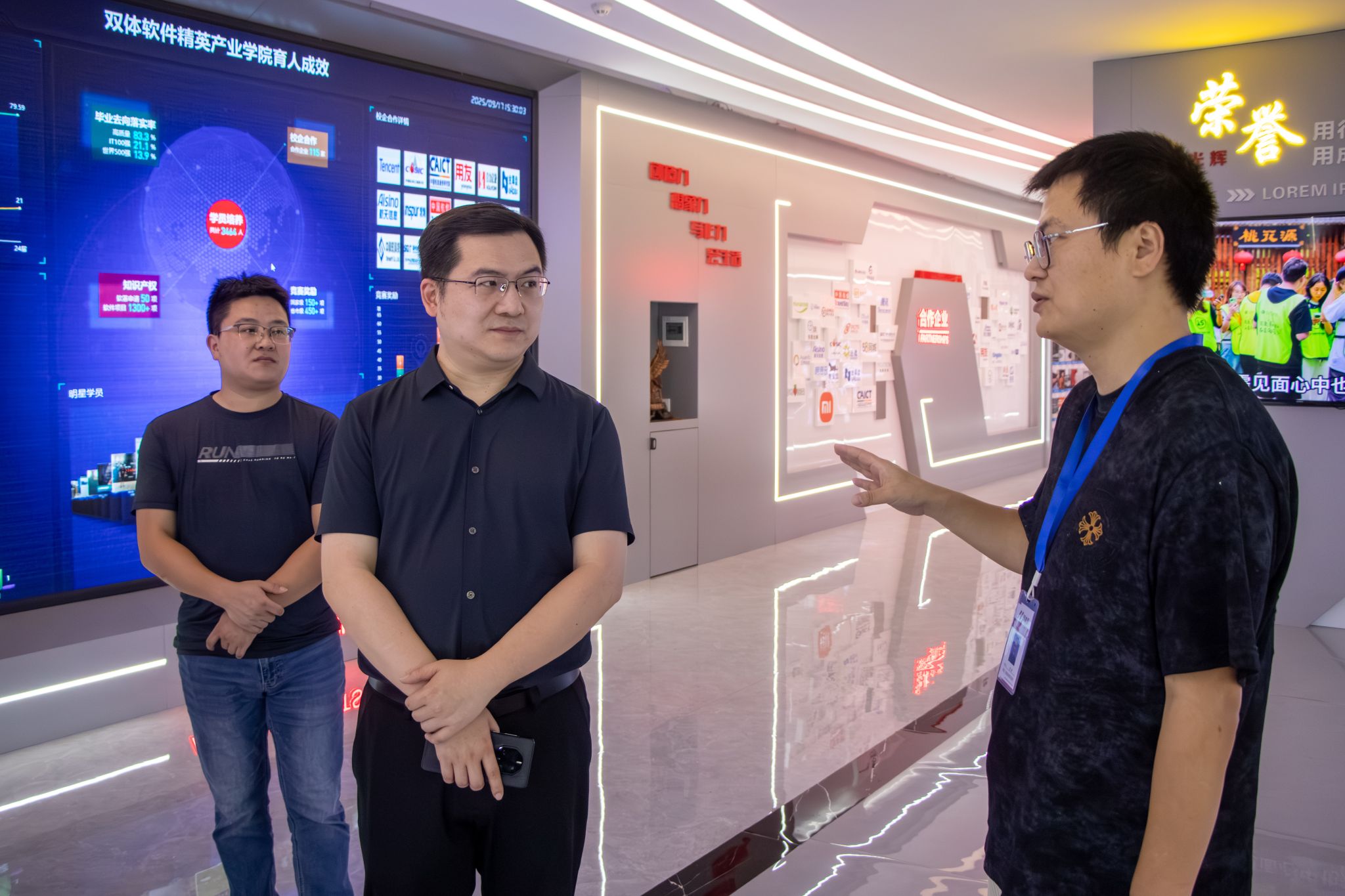 仪式结束后,信息安全学院领导陪同企业代表参观校园,感受学校独特的校园文化与先进的办学条件,并就学校的育人理念与特色优势进行了简要介绍。