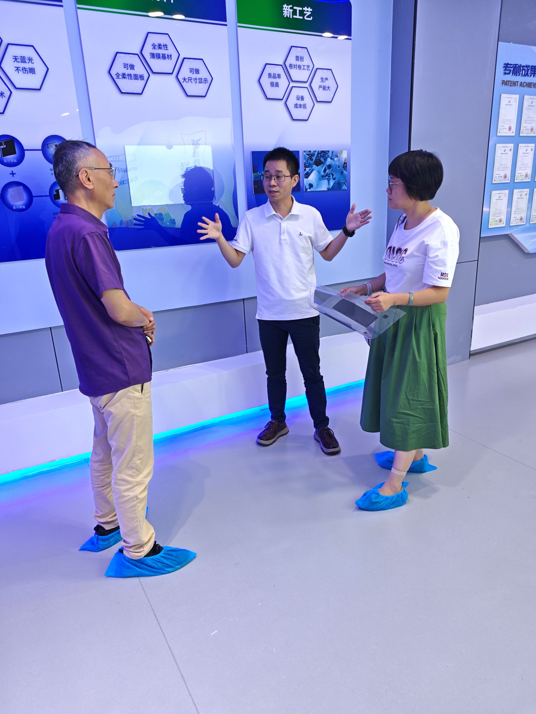 当天,重庆致微科技有限公司总经理杨云等人热情地接待了来访团队。首先,在杨总带领下参观了公司的陈列室,他详细地介绍了公司的历史和主营产品,特别是公司ECD电致变色显示屏。该产品是一种利用电致变色材料在电场作用下发生颜色或透明度变化的显示技术,此项创新技术填补了国内空白,目前处于世界领先地位。
