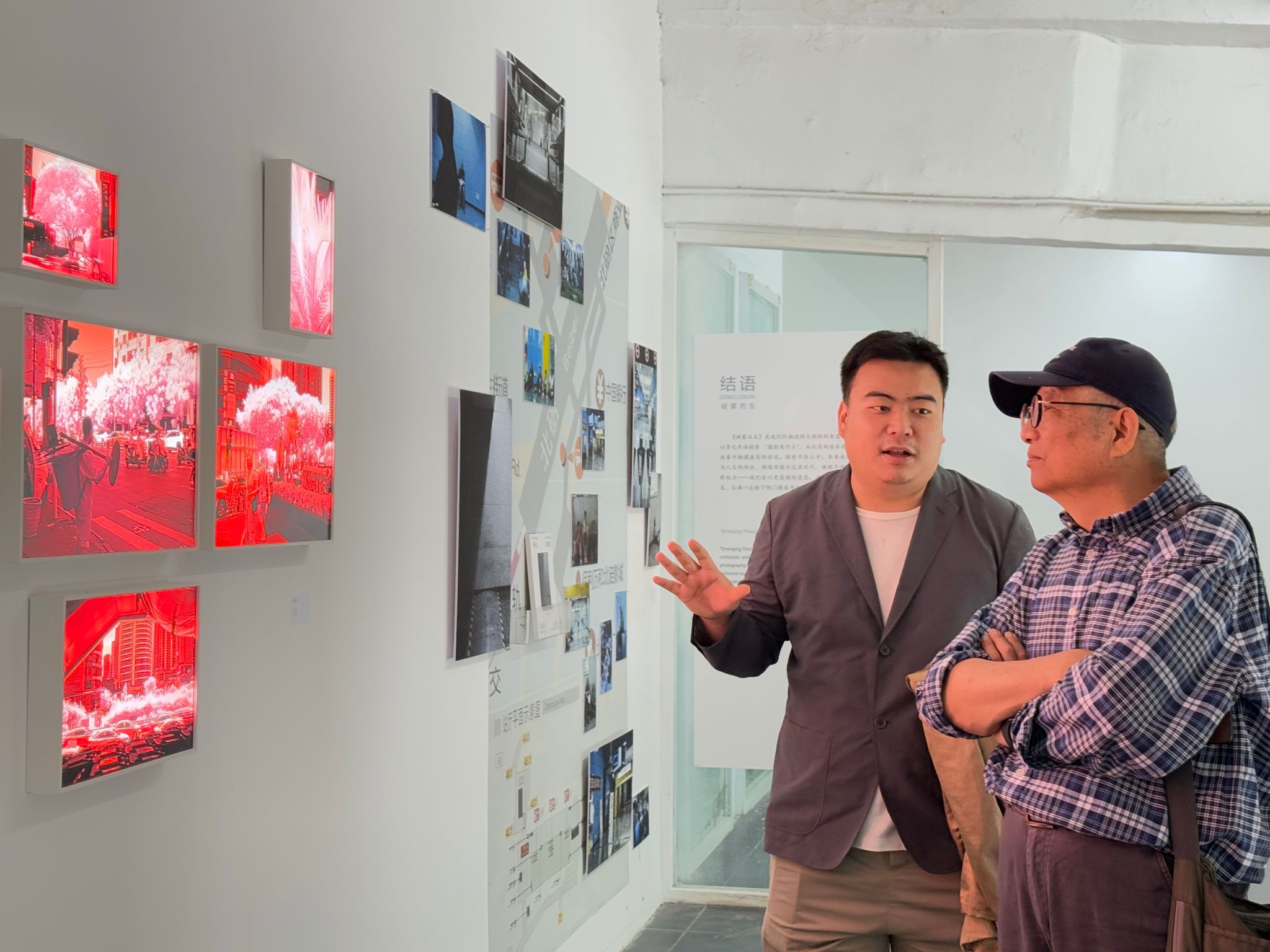 著名策展人、摄影评论家、学者,北京电影学院影像传媒学院朱炯教授对同学的作品进行了点评。朱炯教授对《红热态》作品中的借红外摄影的红色来展示酷热下的重庆街头,并使用灯光装置加强色彩视觉表现的手法予以了认同。