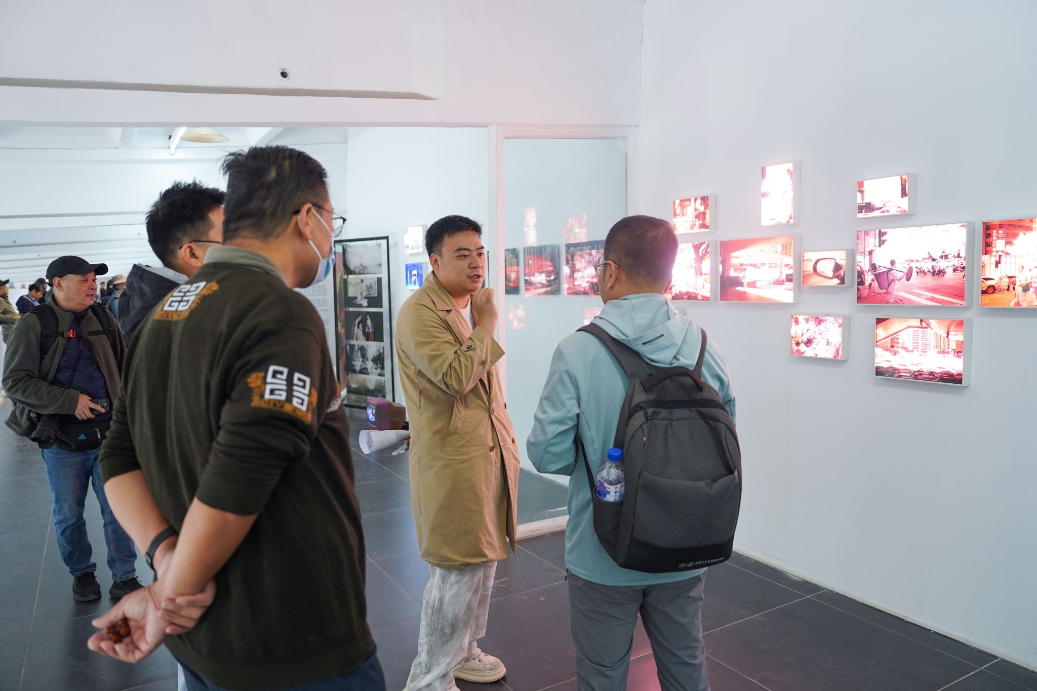 平遥国际摄影大展优秀指导教师、浙江传媒学院孙家迅副教授在布展现场对学生的作品表示肯定。他就目前摄影专业、影像专业的教学内容与现场教师们进行了探讨,并对财务管理专业的同学的跨界创作表示鼓励。