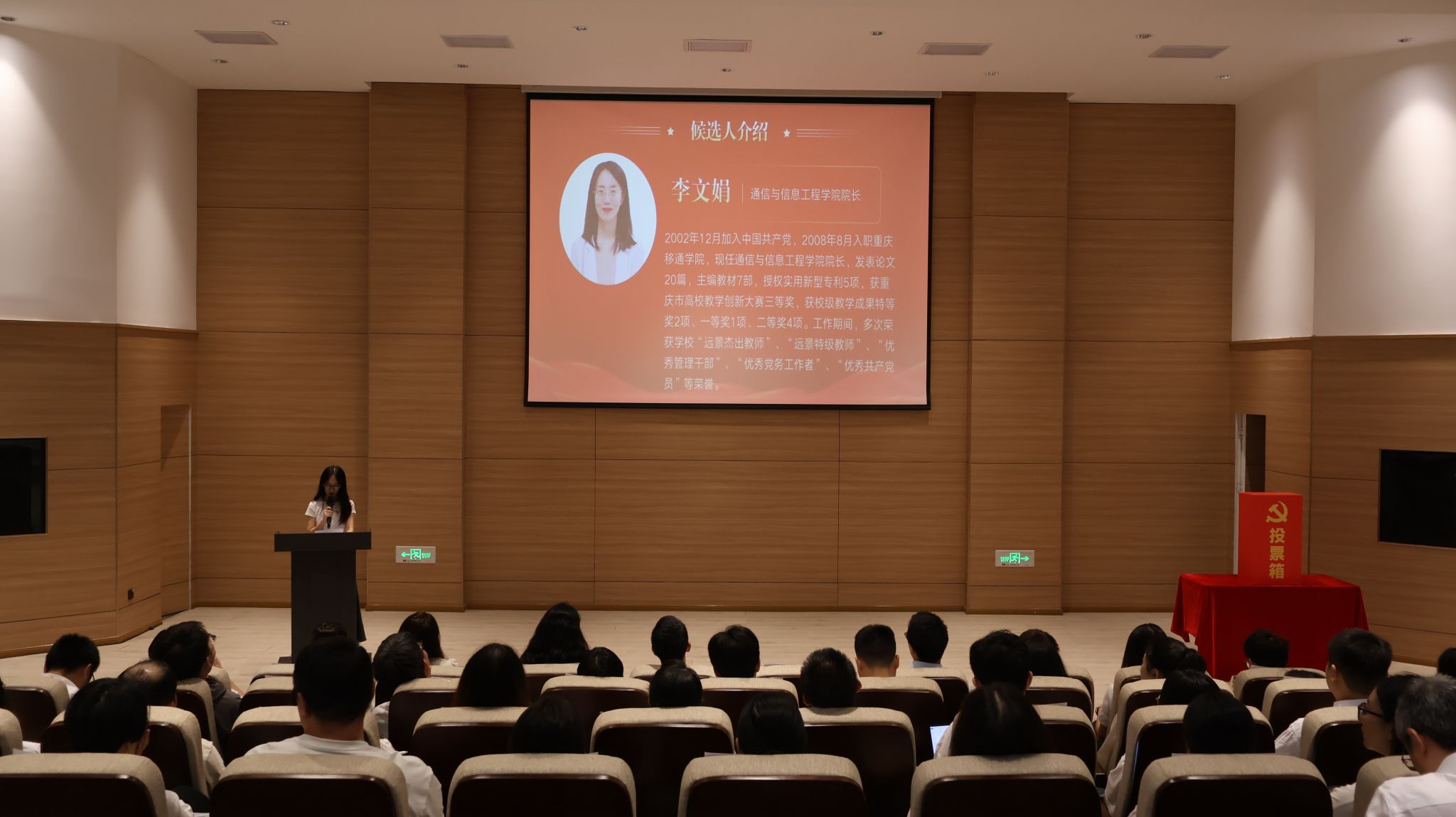 9月19日,中共重庆移通学院通信与信息工程学院党总支委员会换届选举大会在六度空间创梦空间隆重召开。本次大会以“凝聚共识・砥砺前行,共筑学院发展新征程”为主题,严格按照《中国共产党章程》《中国共产党基层组织选举工作条例》等有关规定和学校党委相关指导意见进行,圆满完成各项议程,成功选举产生新一届党总支委员会委员。